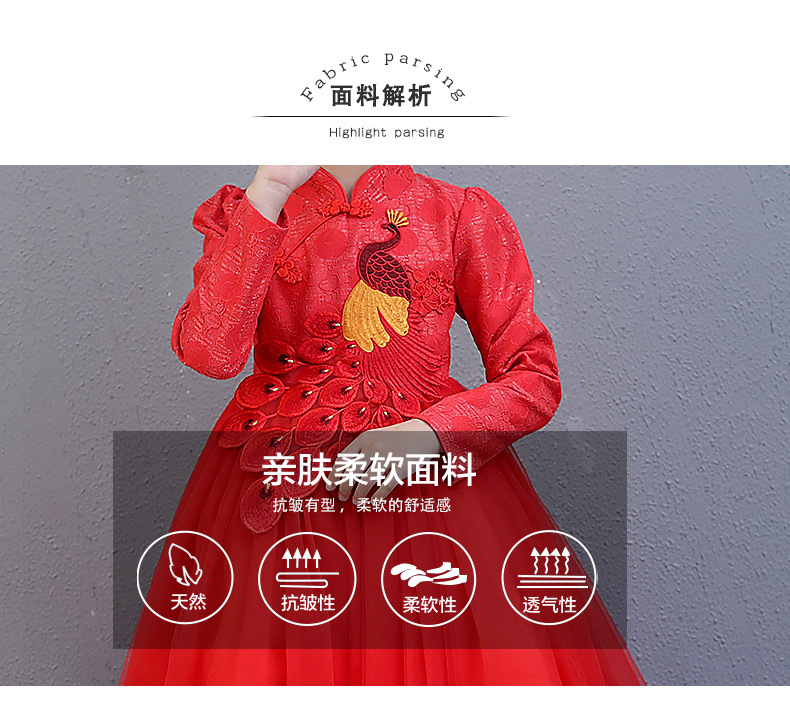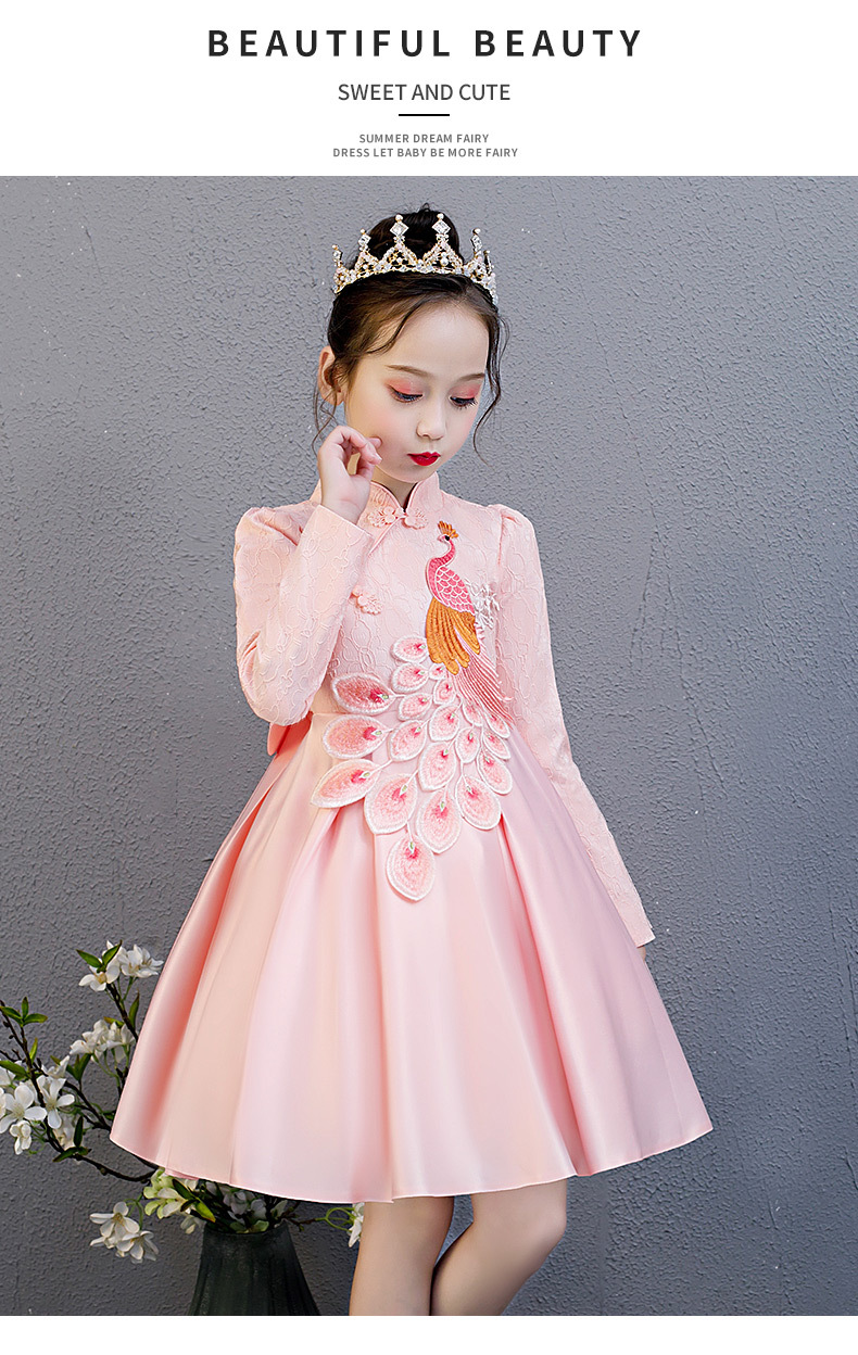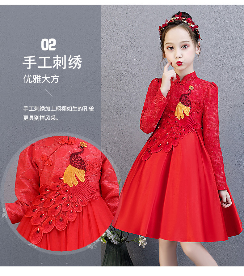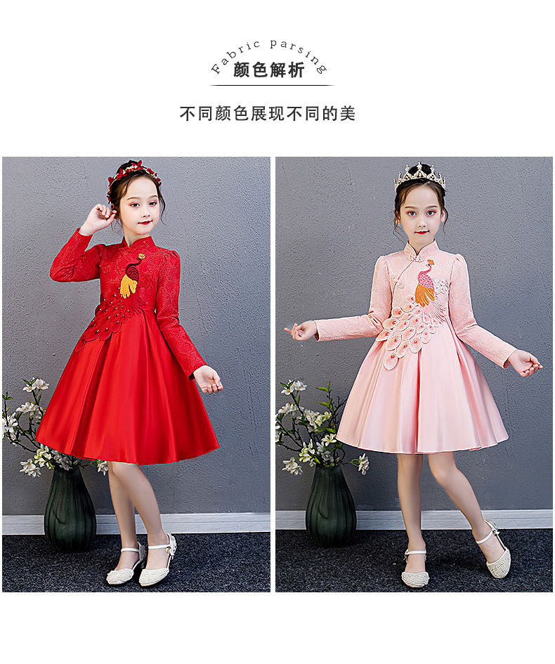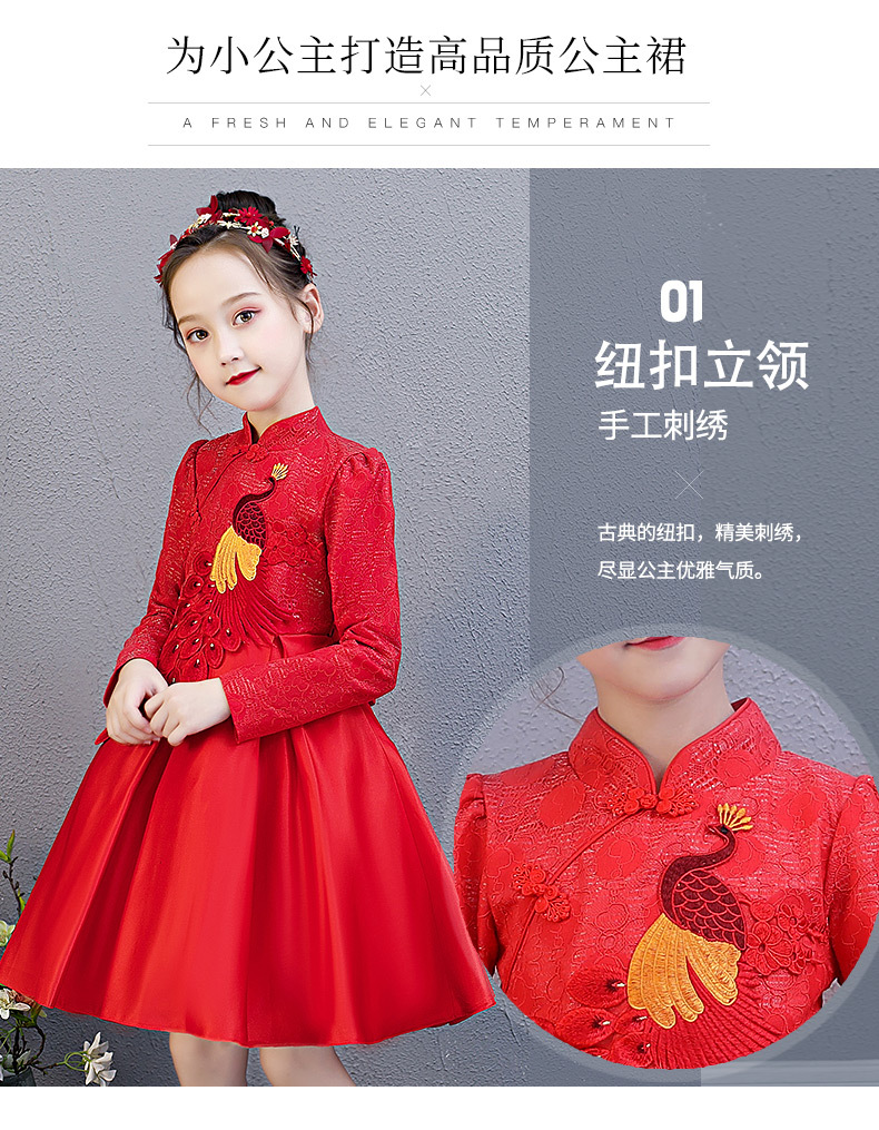 AM-秋季刺绣孔雀新款中国风儿童公主裙宝宝裙子