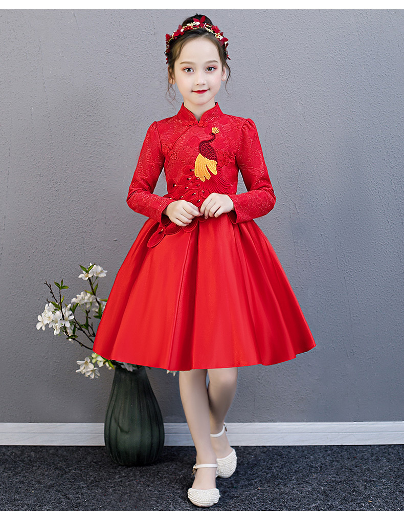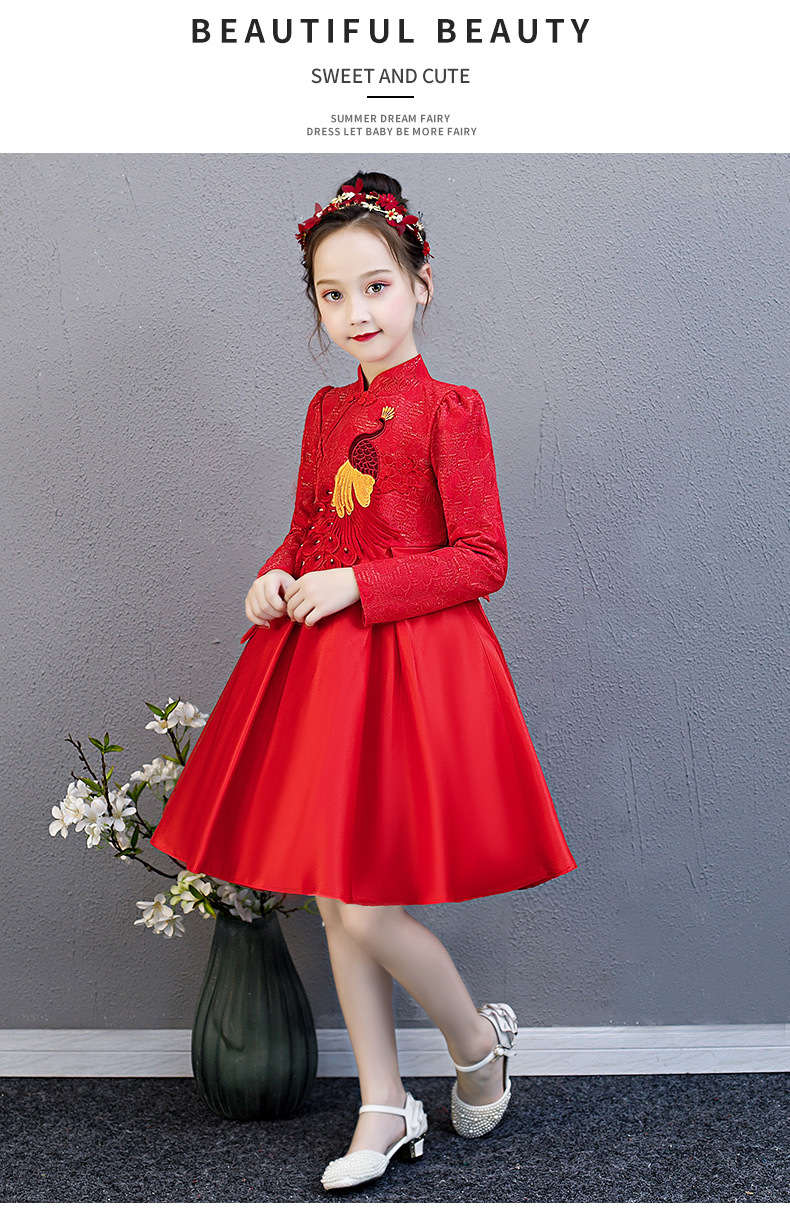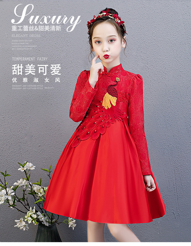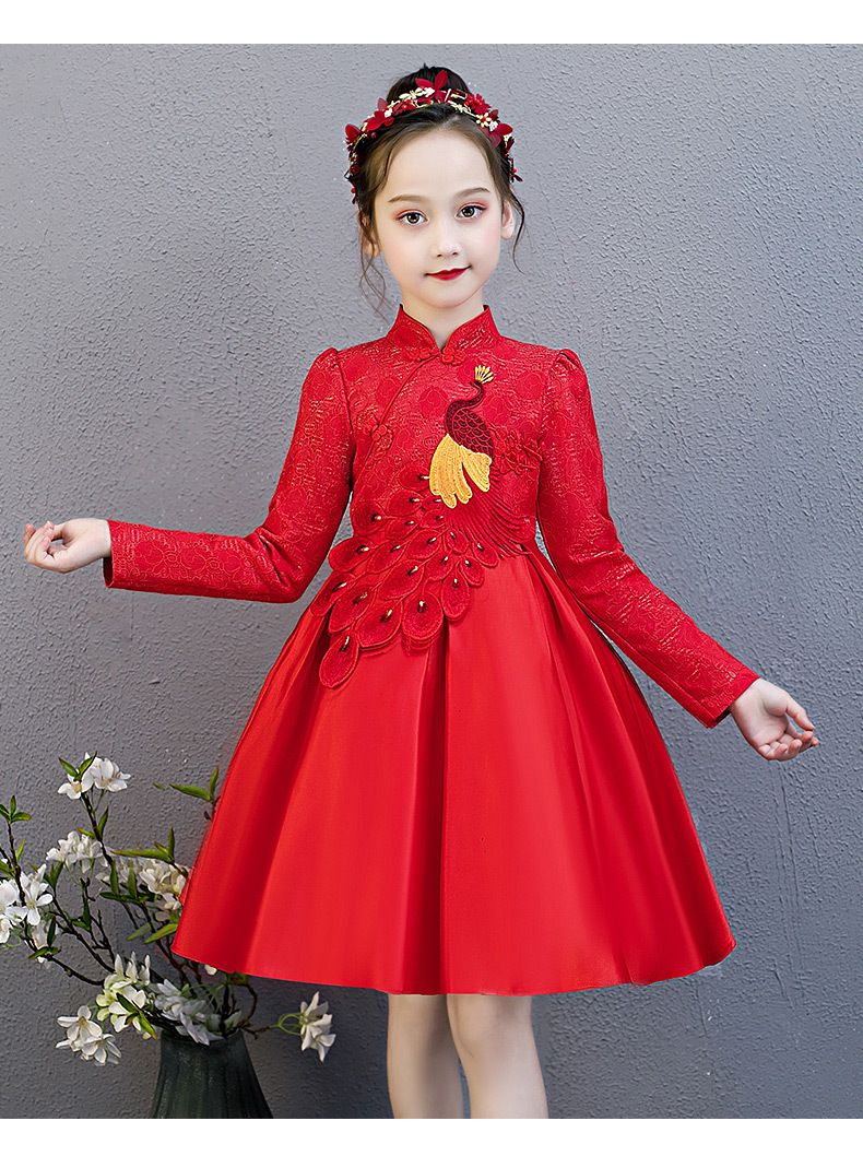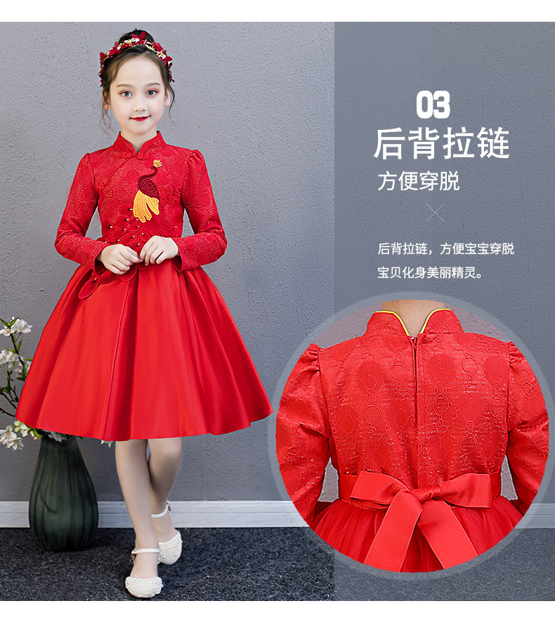 AM-秋季刺绣孔雀新款中国风儿童公主裙宝宝裙子