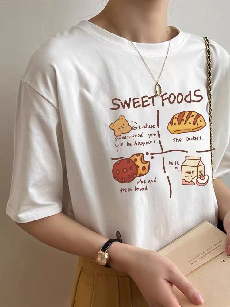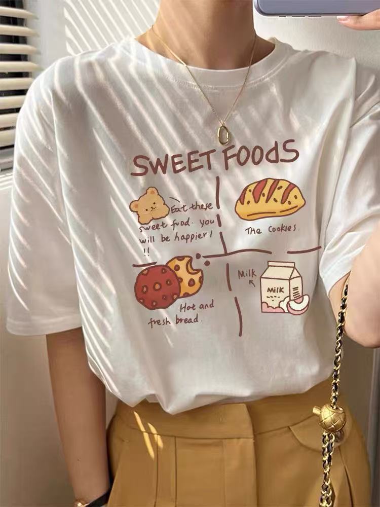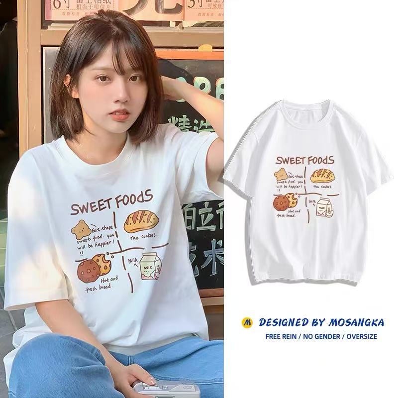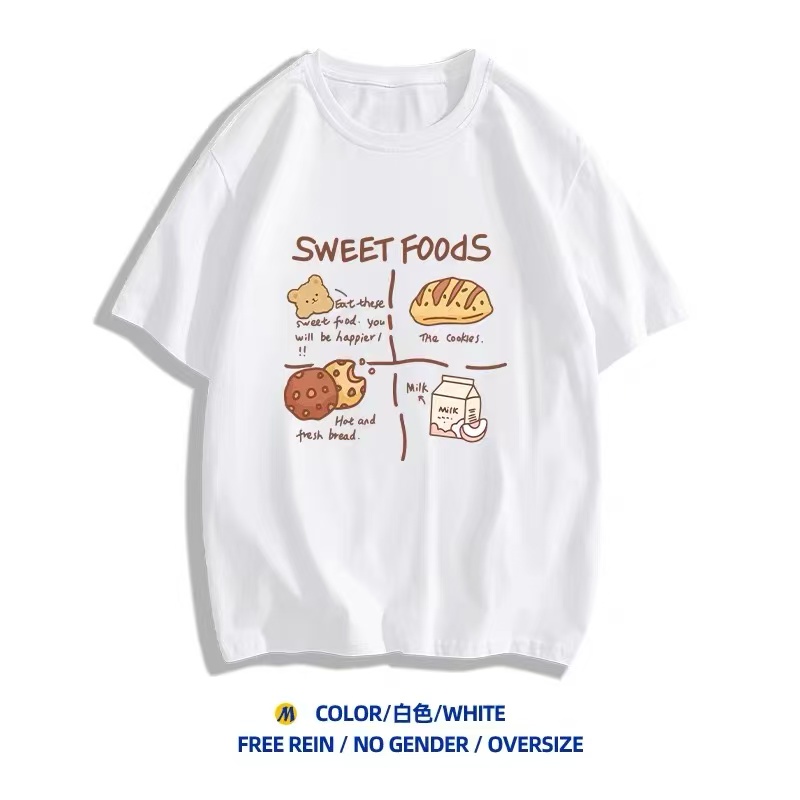 工厂直促价【100%棉】情侣(美式面包-大标)柯式印花短袖T恤-喜出