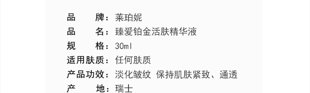 瑞士 莱珀妮(La prairie)臻爱铂金活肤精华液 精华水 淡纹精华液 30ml/瓶【香港直邮】