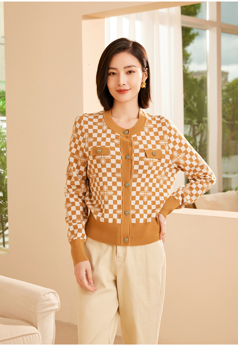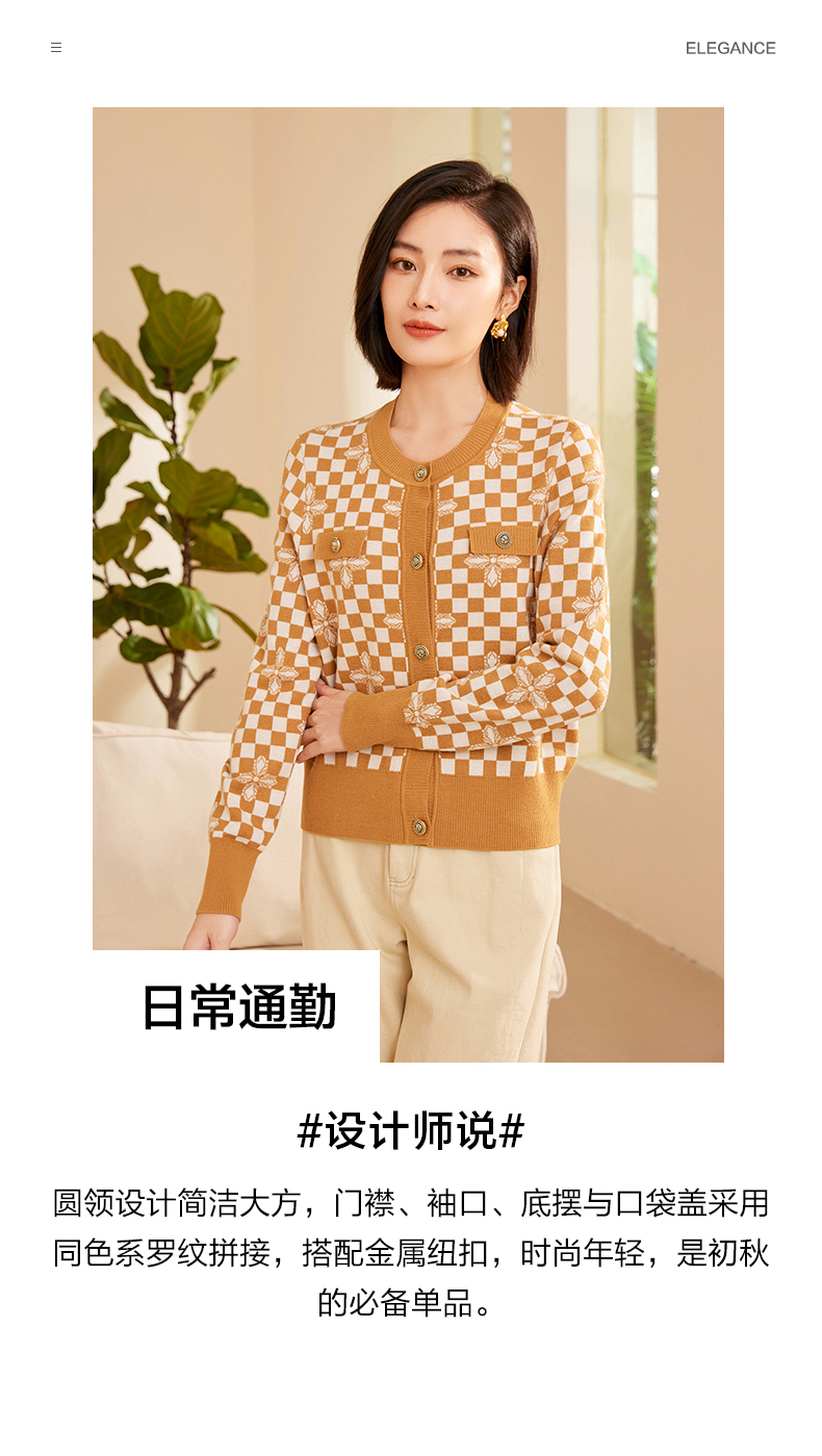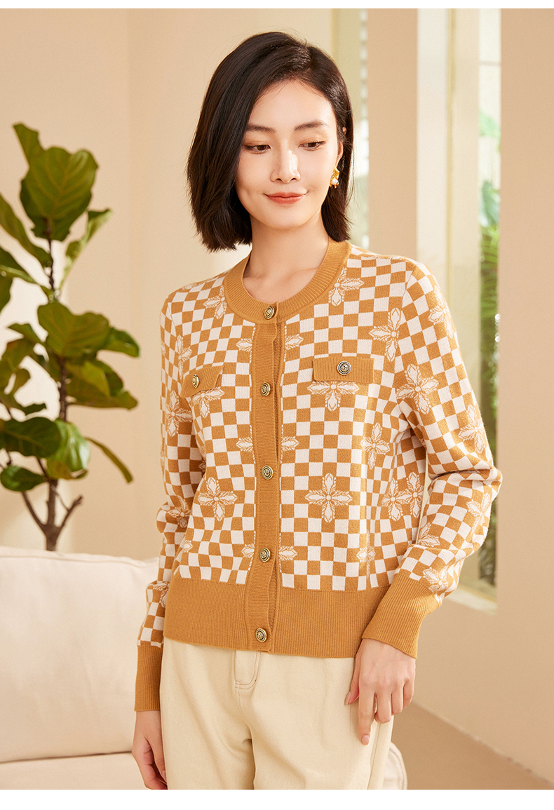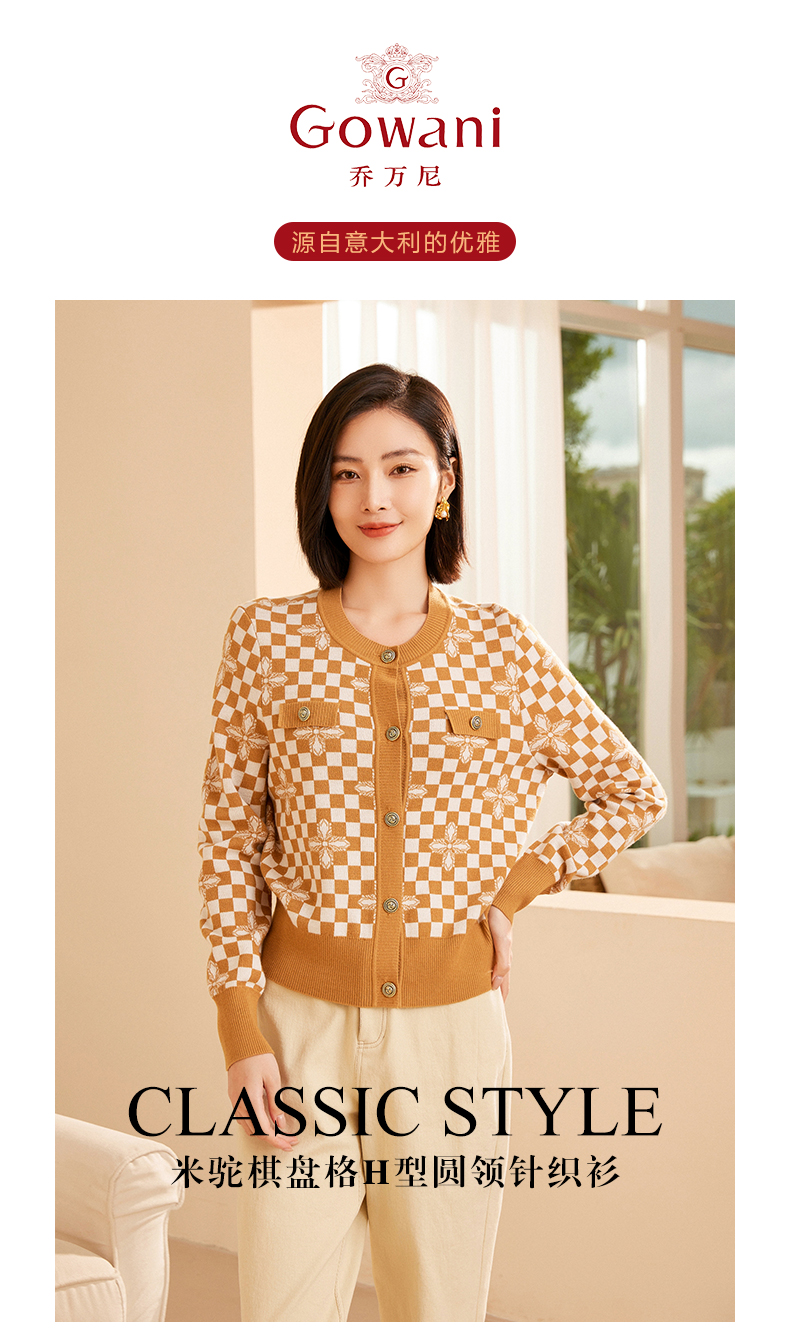 乔万尼针织衫上衣女新款秋季小香风棋盘格羊毛开衫ET3M760