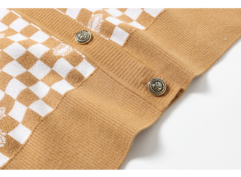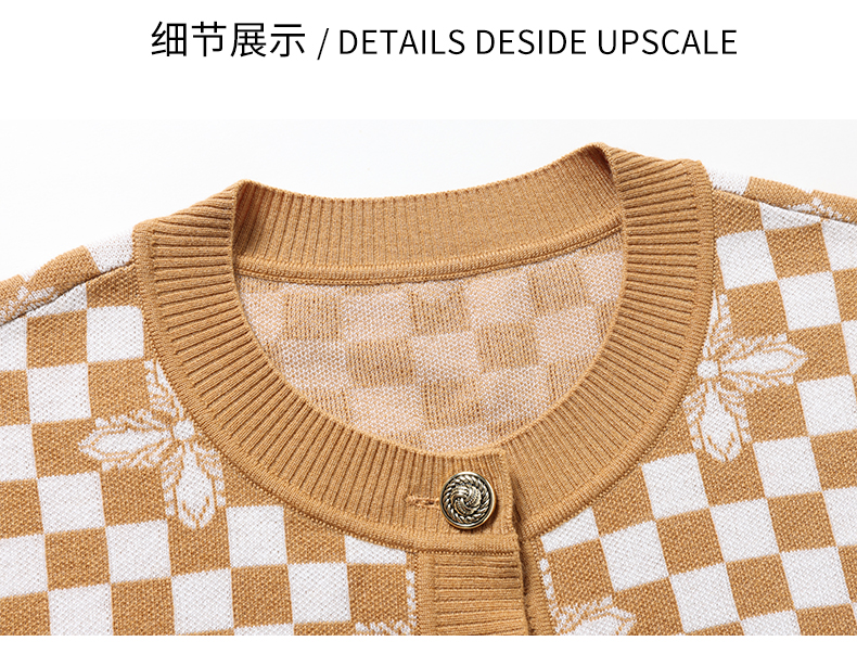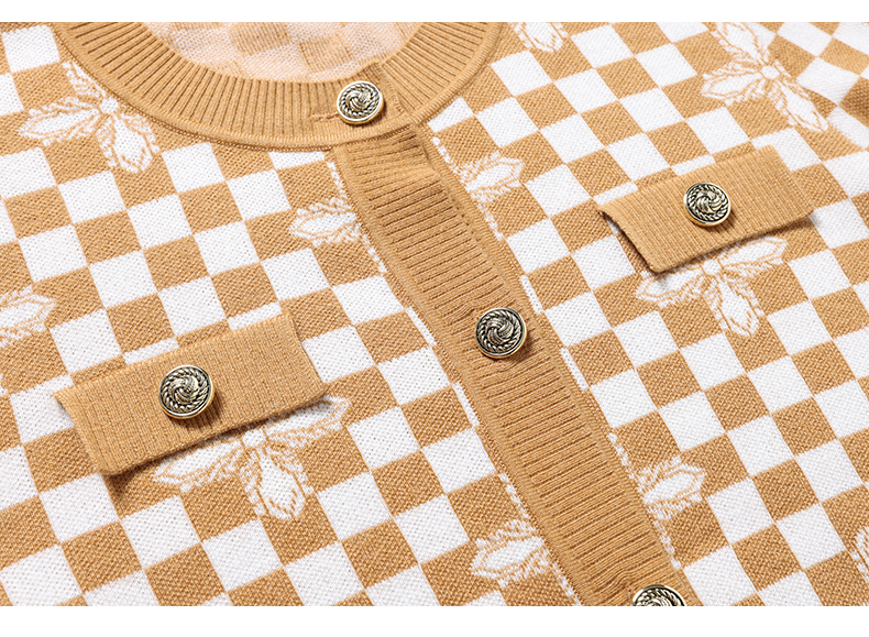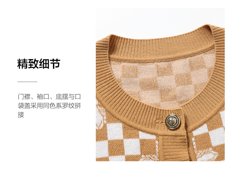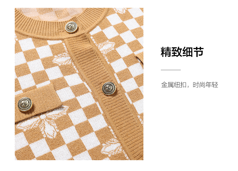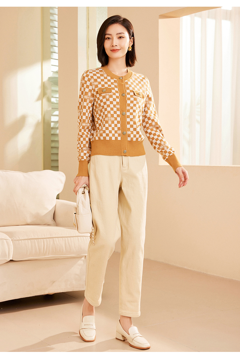 乔万尼针织衫上衣女新款秋季小香风棋盘格羊毛开衫ET3M760