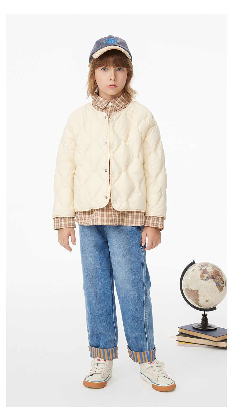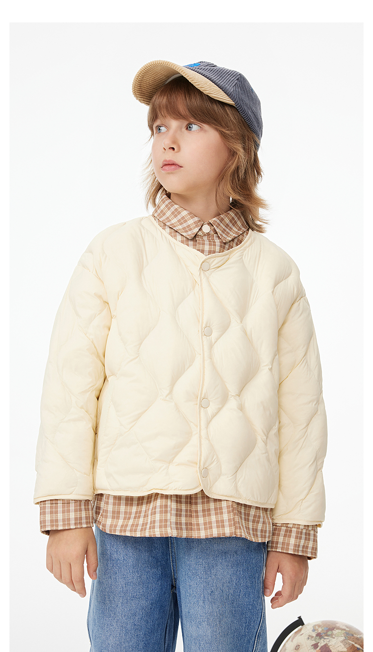 【MQD】童装儿童羽绒服假两件冬装衬衫内里短款米白色早春羽绒