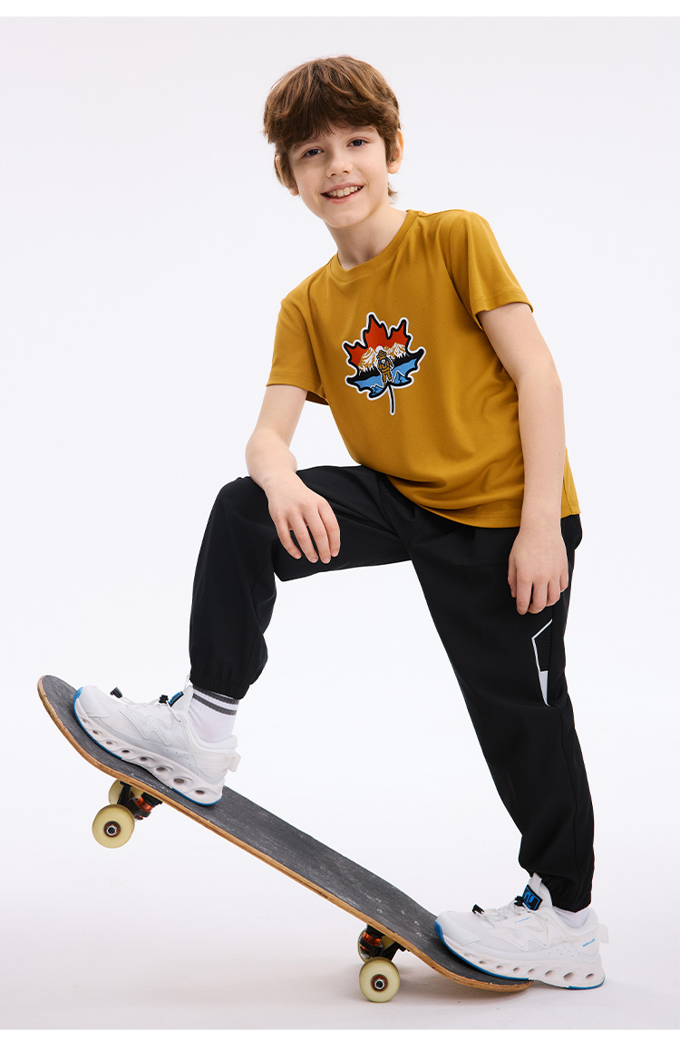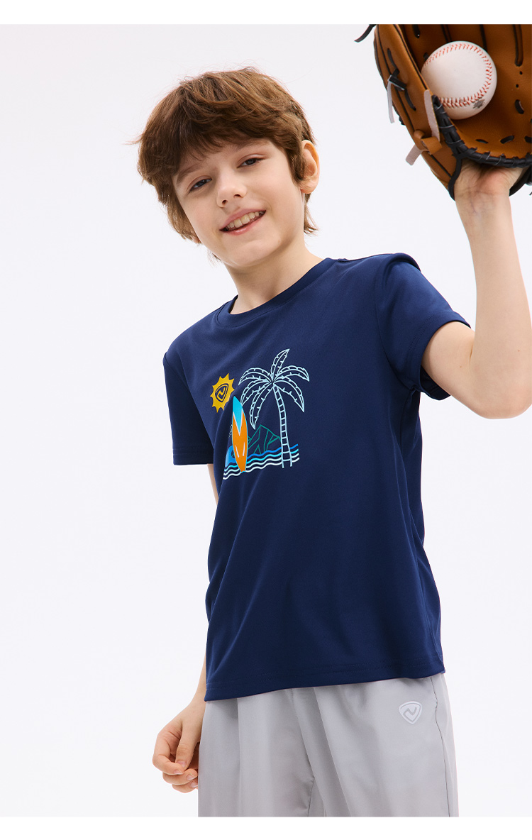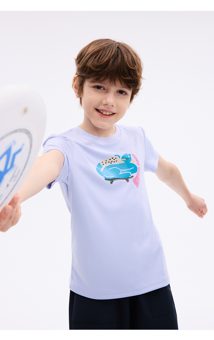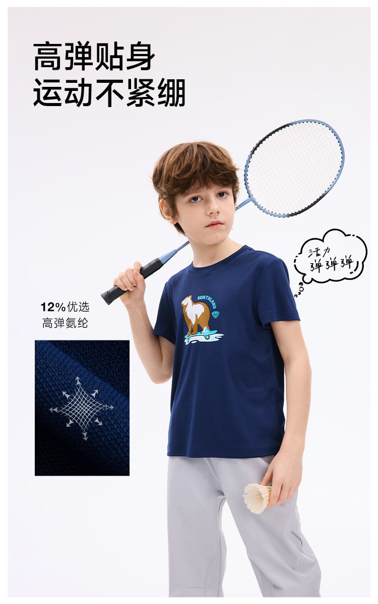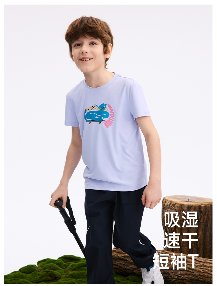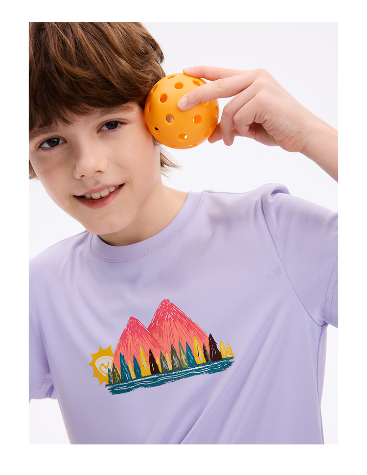 诺诗兰童装 短袖T恤 采用7A级高效抗菌技术,有效防护多种常见细菌,耐高温水洗,持久抑菌更安心,面料吸湿速干性能优越,汗水吸收扩散迅速,穿着清爽不黏身,适合户外活动与日常穿着。 CO140211