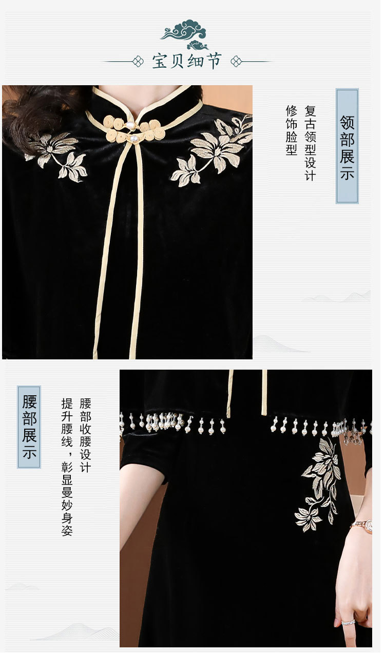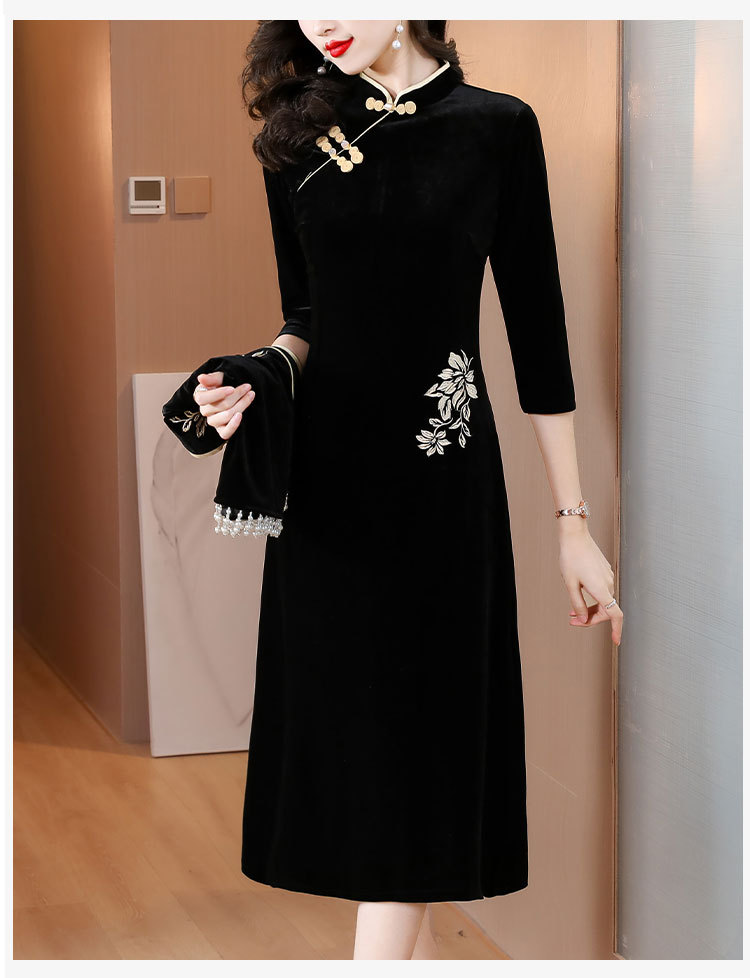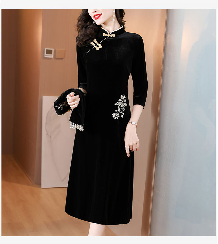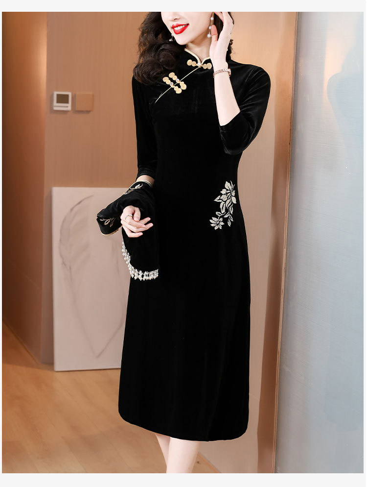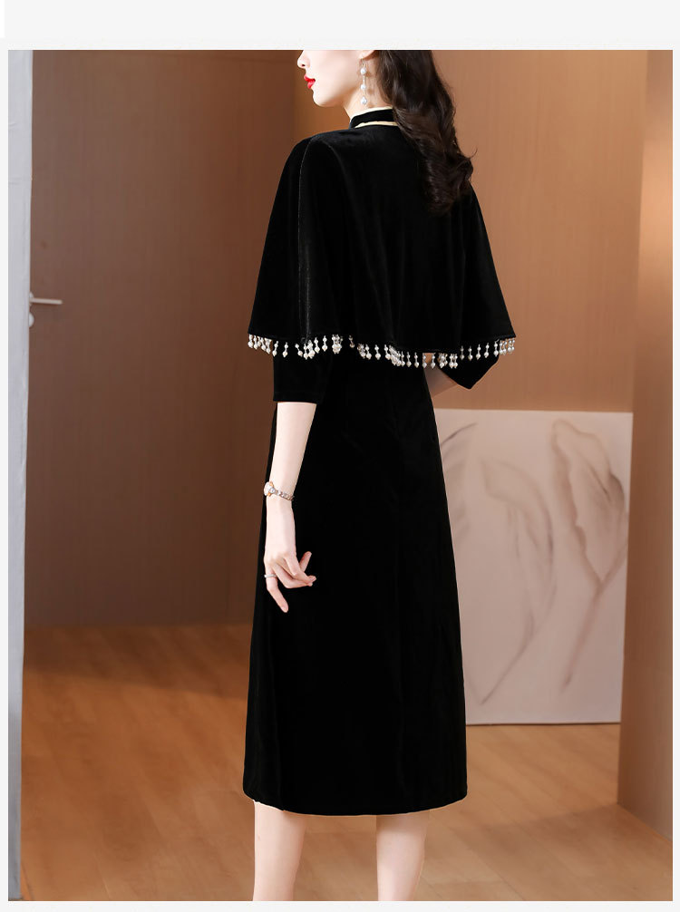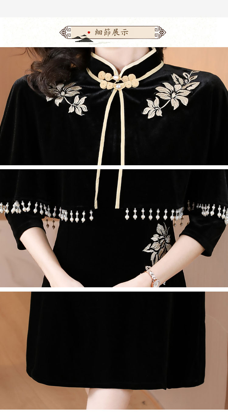 DD-金丝绒刺绣改良旗袍披肩连衣裙女2023秋冬新款时尚洋气减龄中长裙