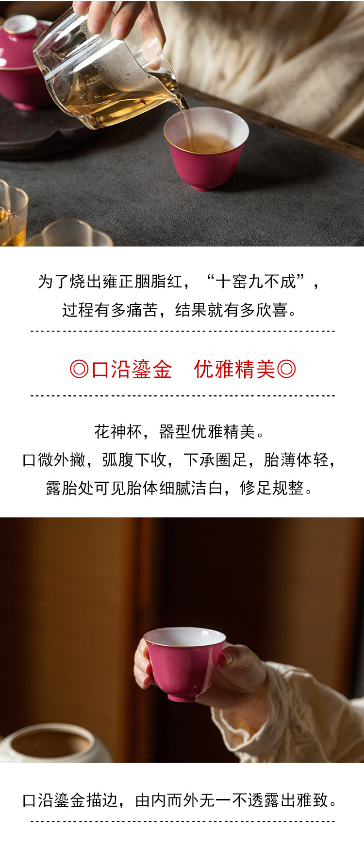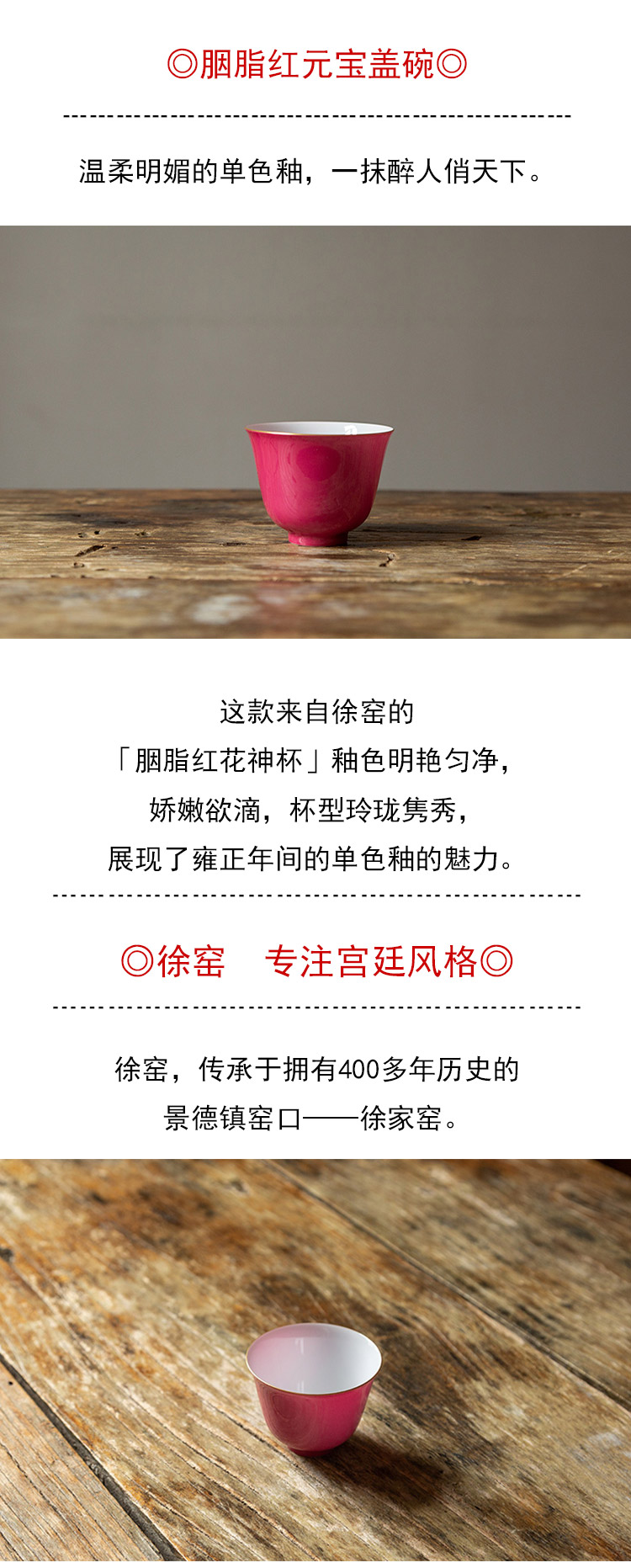 茶香记 徐窑 胭脂红花神杯 品茗杯 釉色娇艳 玲珑隽秀