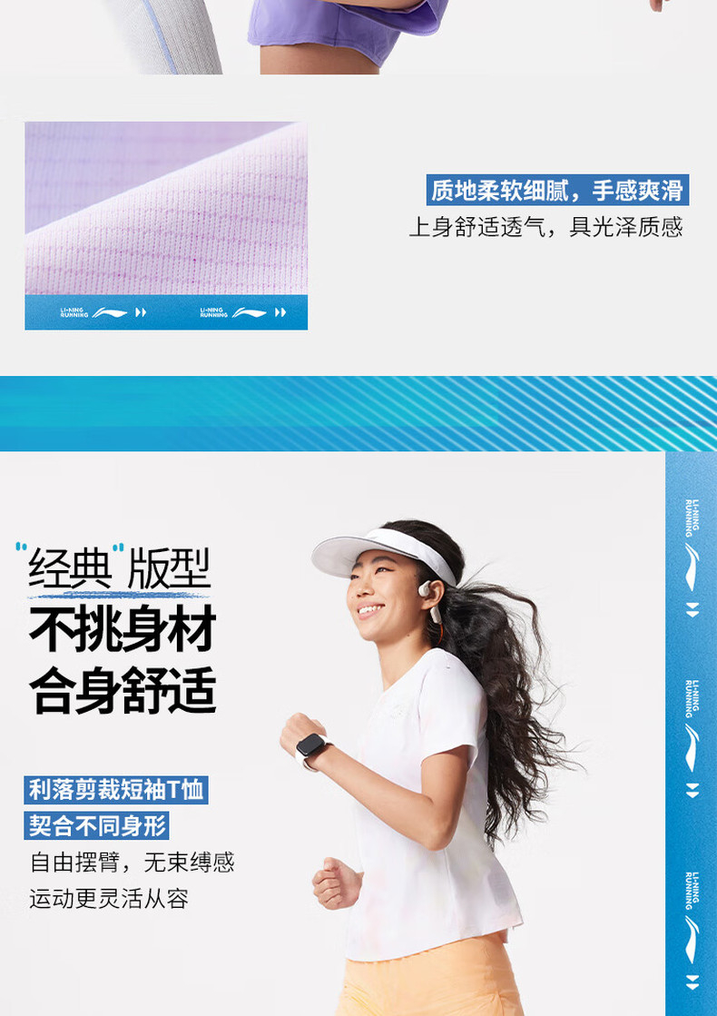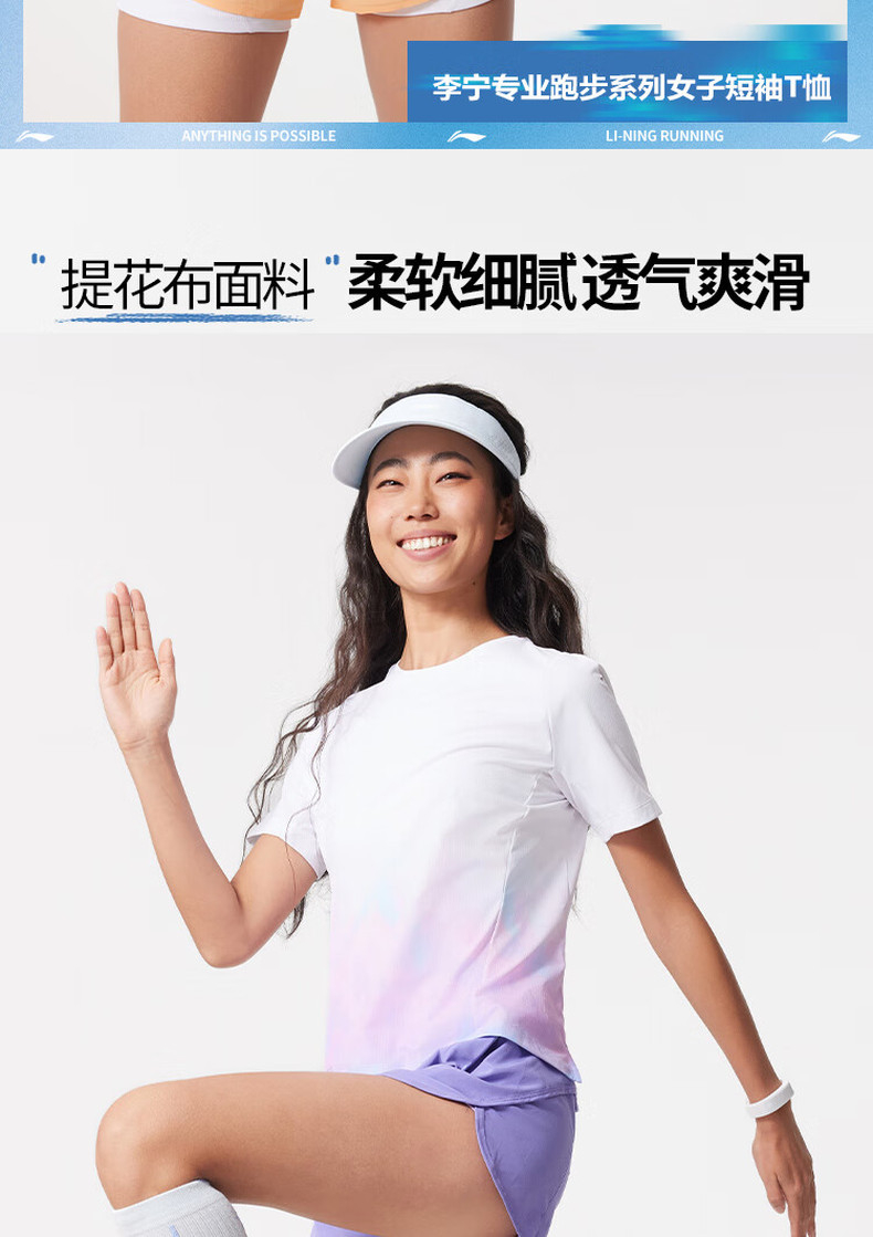 李宁专业跑步系列女子反光速干凉爽短袖T恤ATSV530