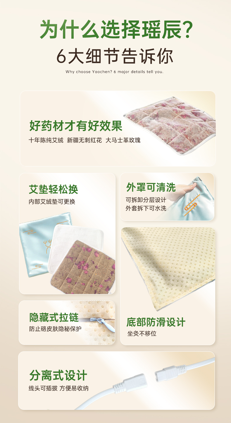 【品牌直发】热卖!【久坐不如灸坐】瑶辰新型艾灸草本热敷垫电加热 9档控温 恒温发热 坐垫 全身通用