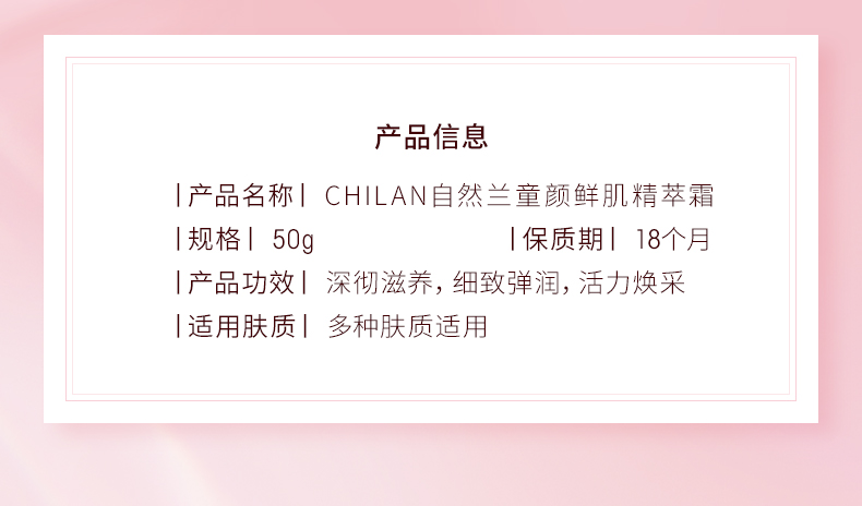 CHILAN自然兰成立于2016年,是无添加主义集团旗下的年轻化护肤品牌。致力于无添加护肤研究,倡导年轻肌肤无添加,以科技赋能,激发成分效用,令肌肤无惧年龄。