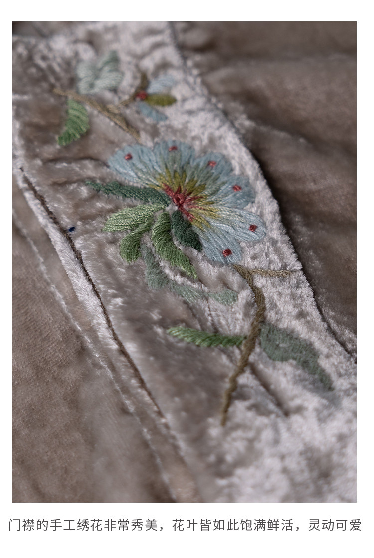 MSHK陌上花开原创兰襟【弱水】真丝绒绣花对襟衬衫小上衣女