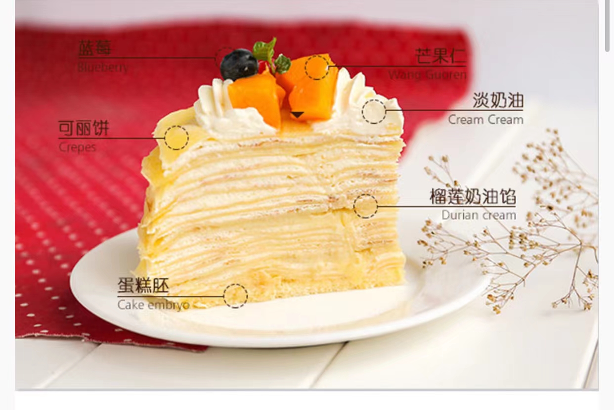 榴莲千层蛋糕 【比榴莲千层下午茶,多50%榴莲肉】