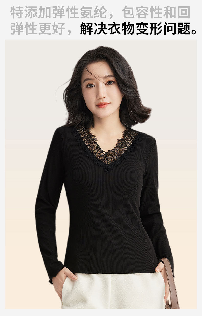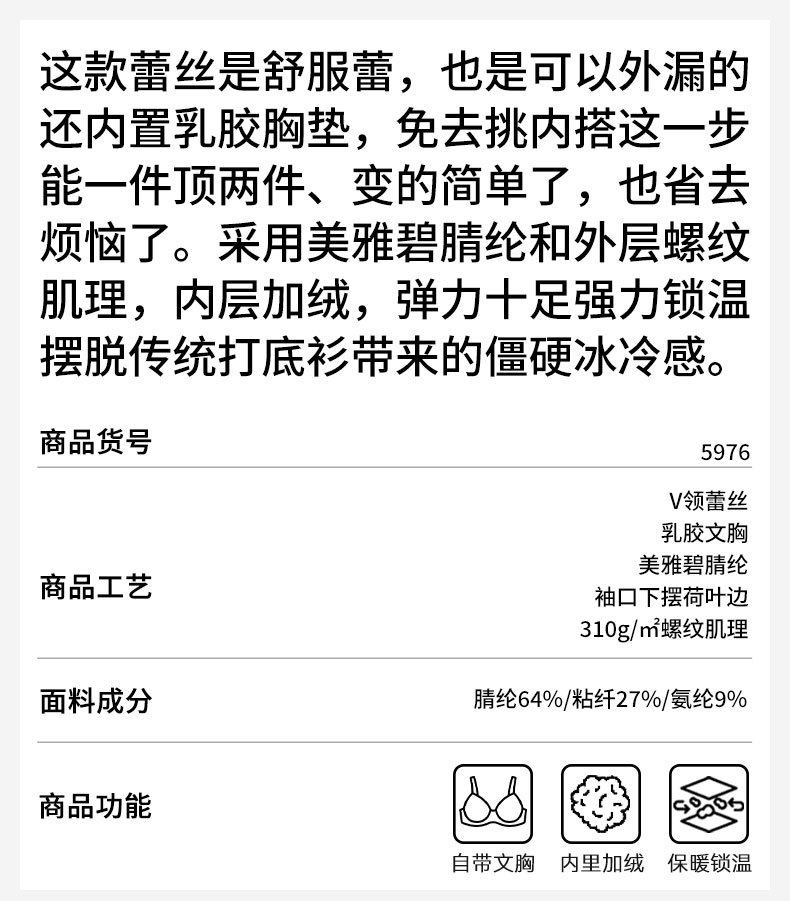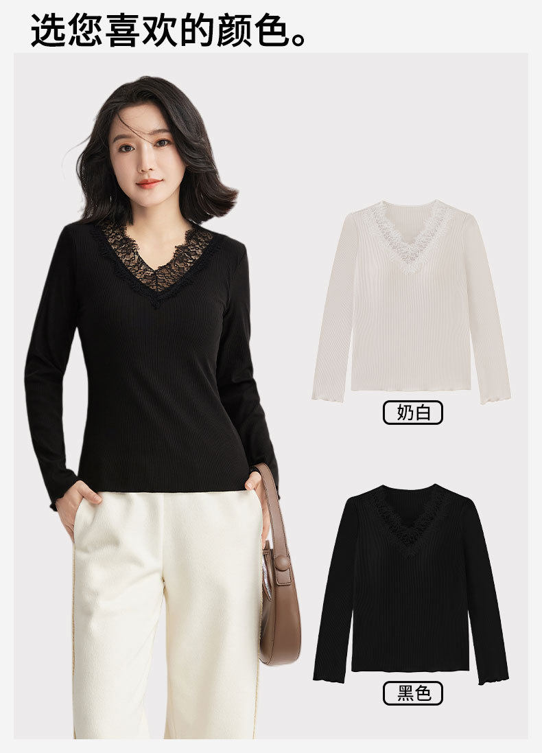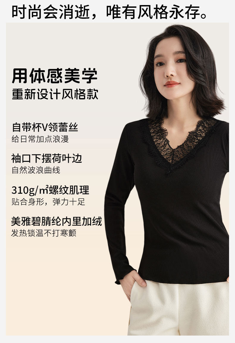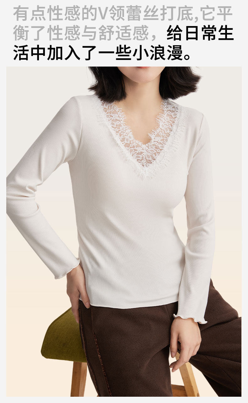 「自」全新升级【铂金会员146/天猫199/差价53】(11359)洛诗琳免穿文胸V领德绒打底衫2025秋冬加绒蕾丝打底衫上衣