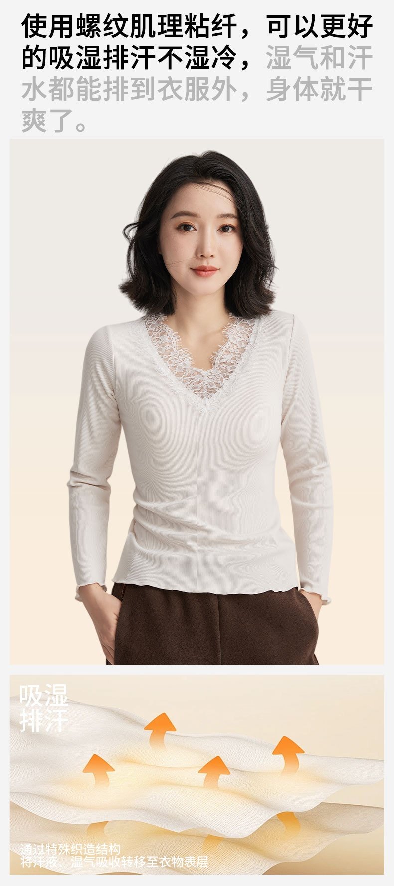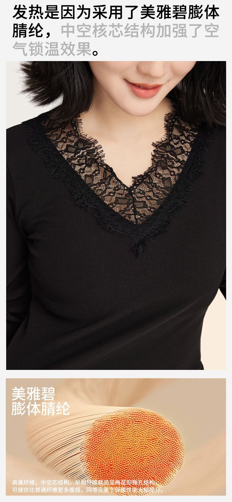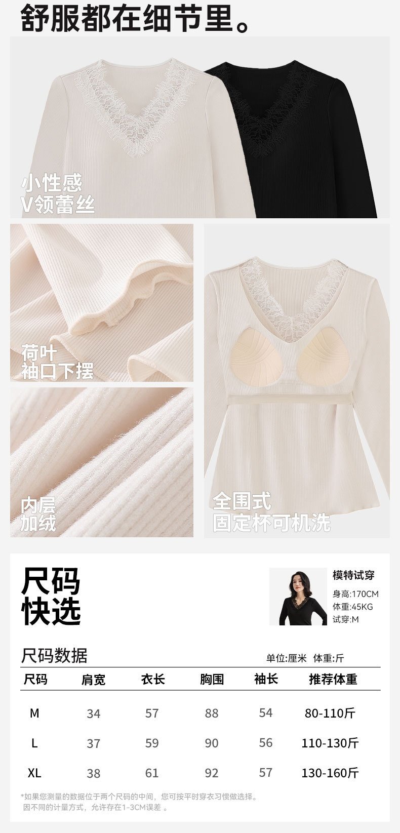 「自」全新升级【铂金会员146/天猫199/差价53】(11359)洛诗琳免穿文胸V领德绒打底衫2025秋冬加绒蕾丝打底衫上衣