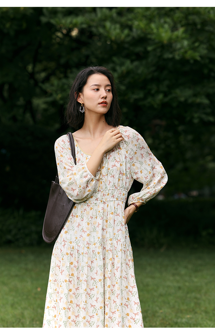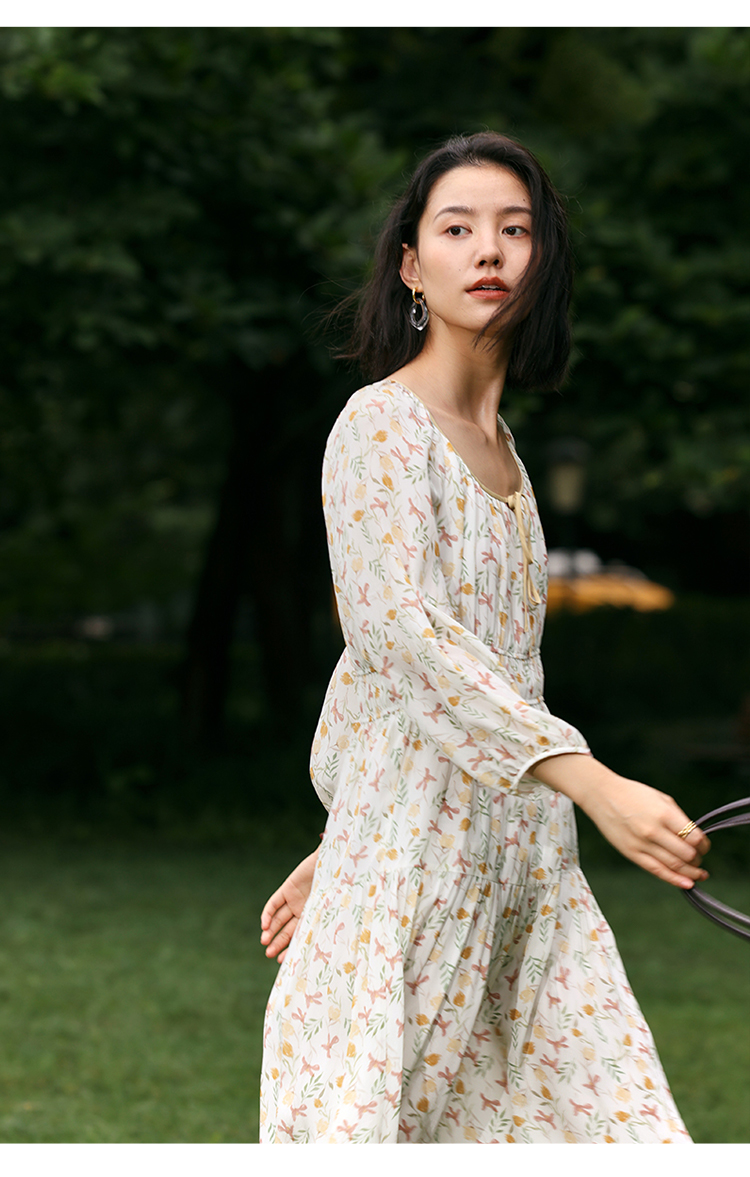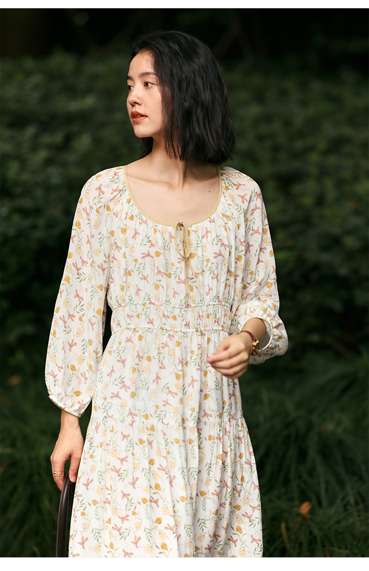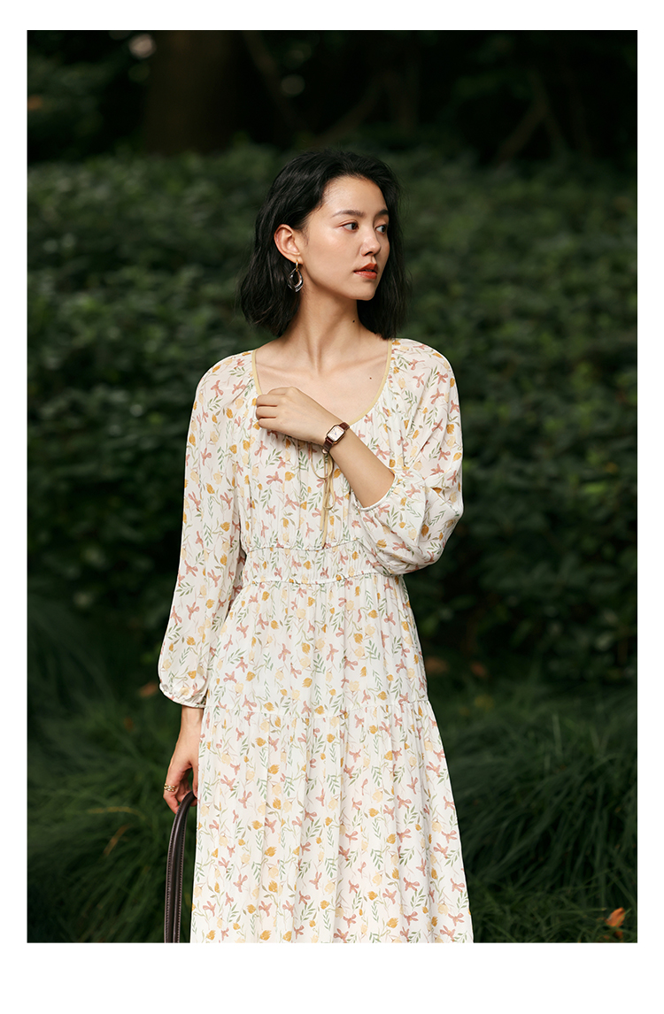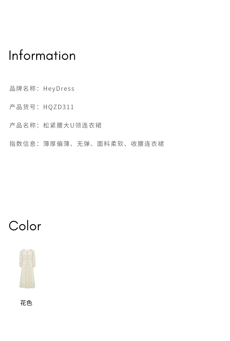 【周四精选福利】HeyDress法式碎花连衣裙U领收腰设计感长袖温柔A字裙子