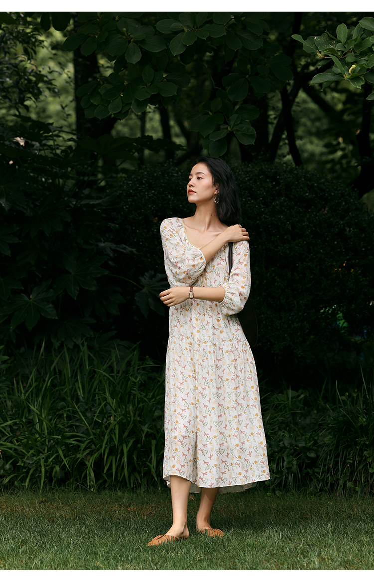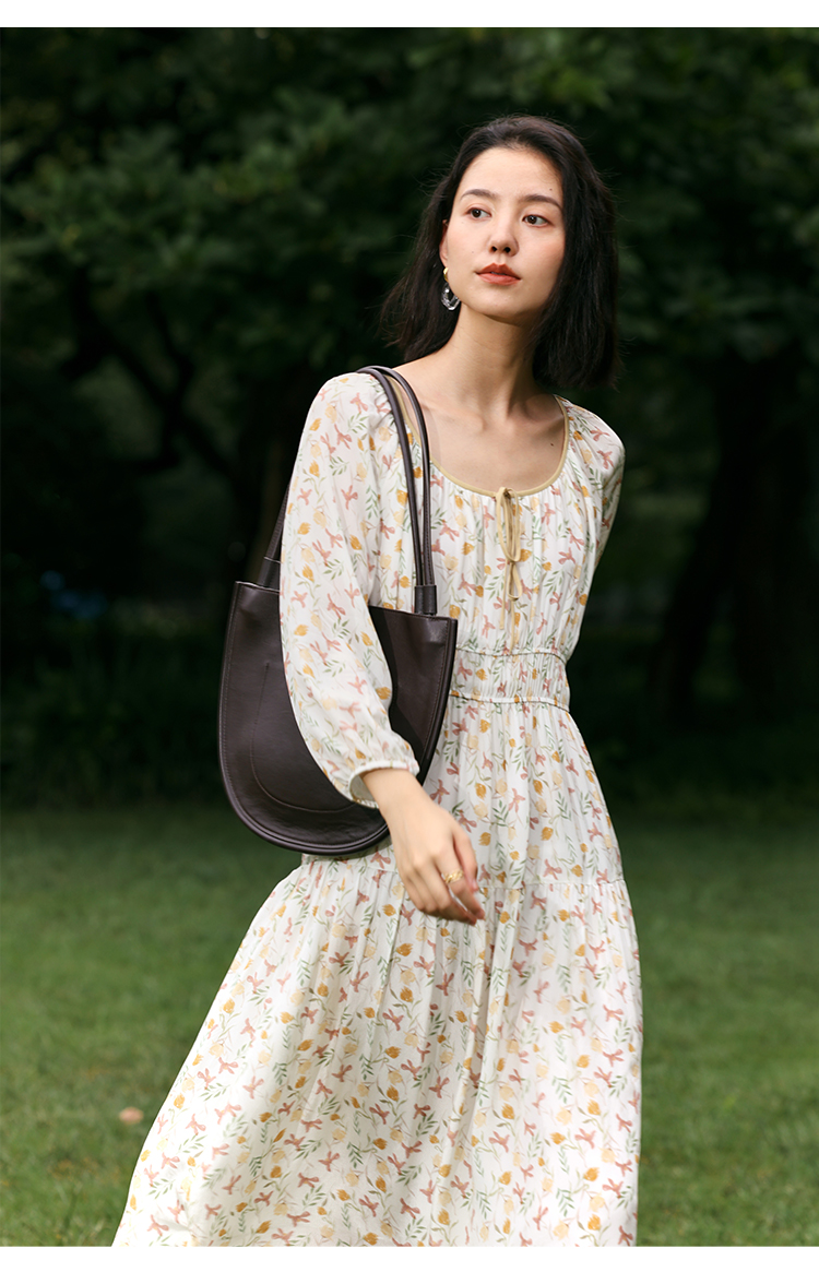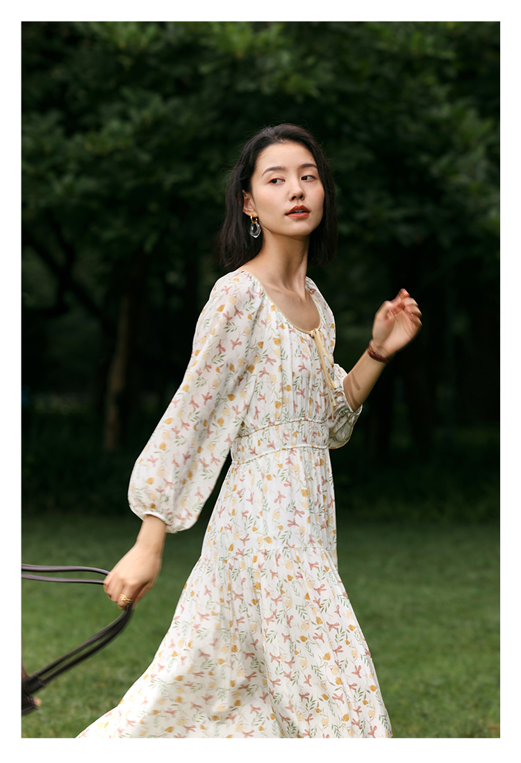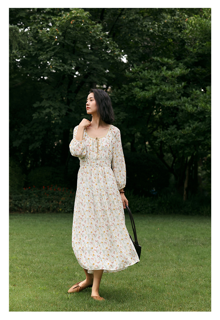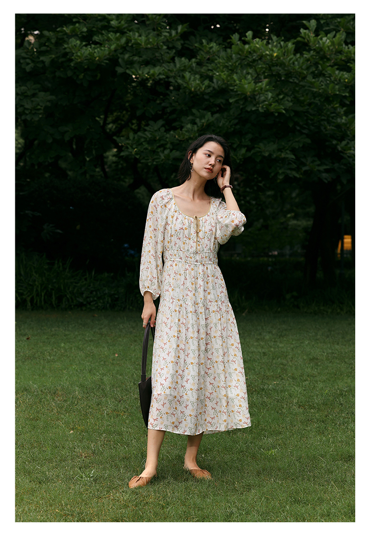 【周四精选福利】HeyDress法式碎花连衣裙U领收腰设计感长袖温柔A字裙子