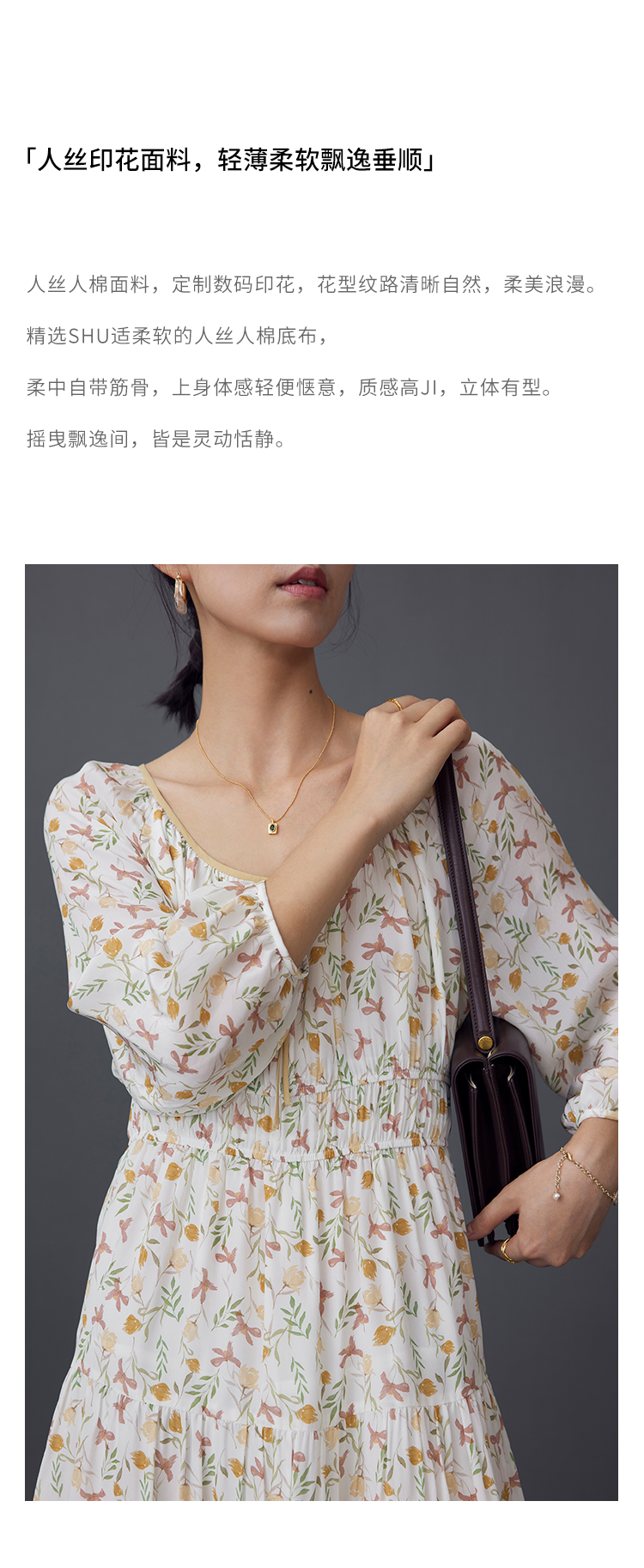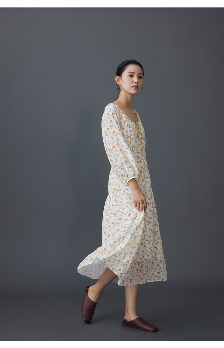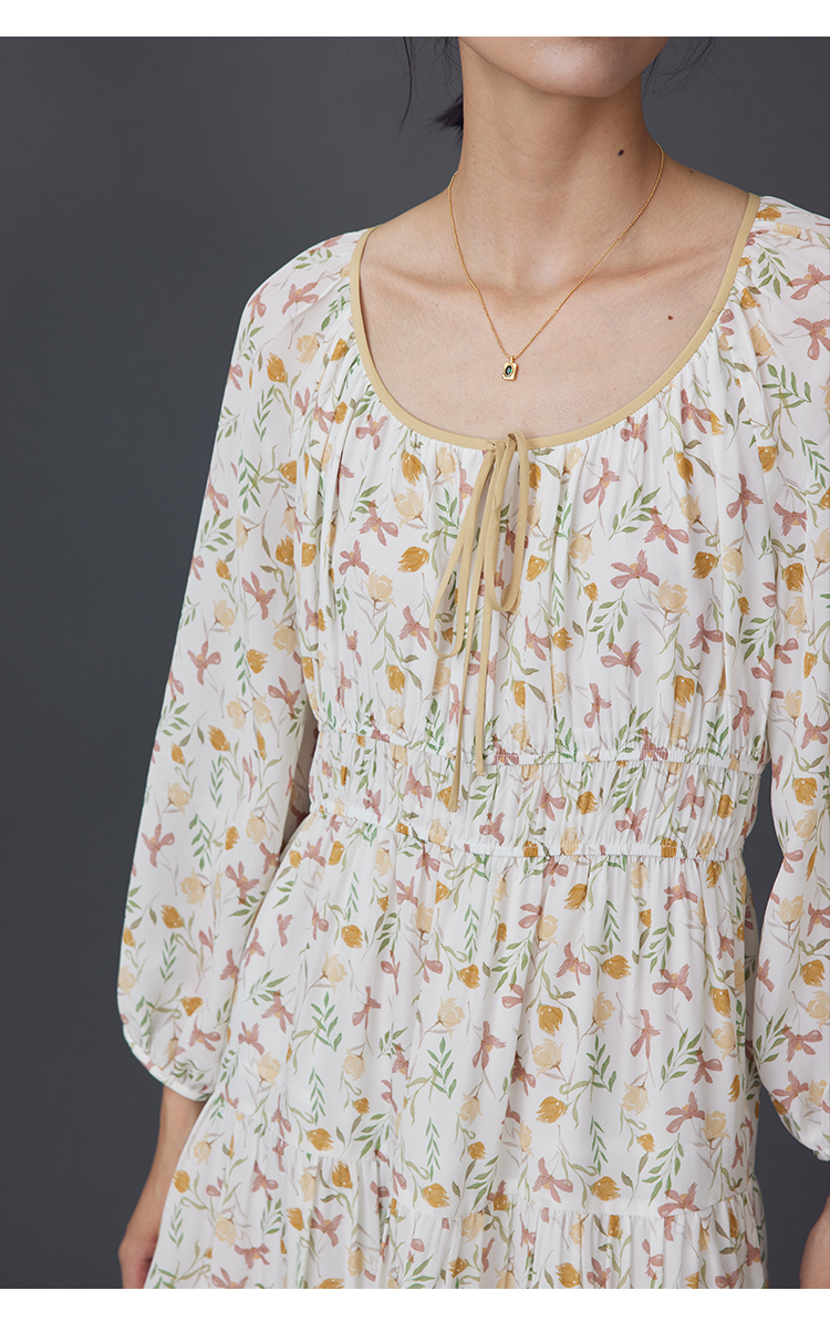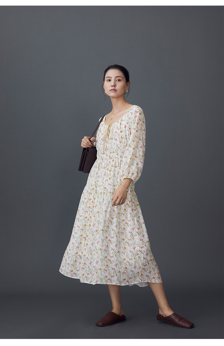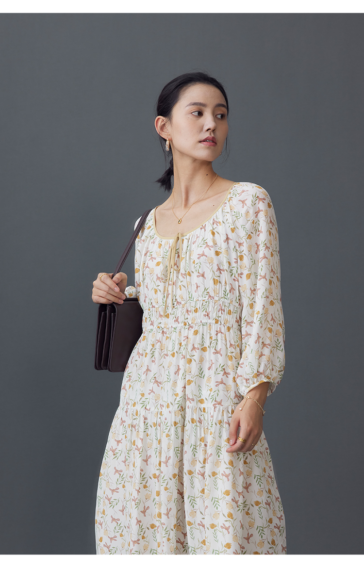 【周四精选福利】HeyDress法式碎花连衣裙U领收腰设计感长袖温柔A字裙子