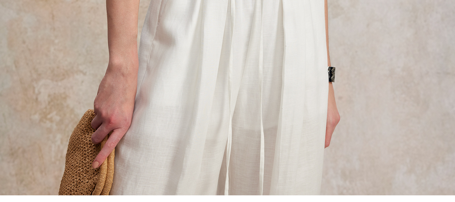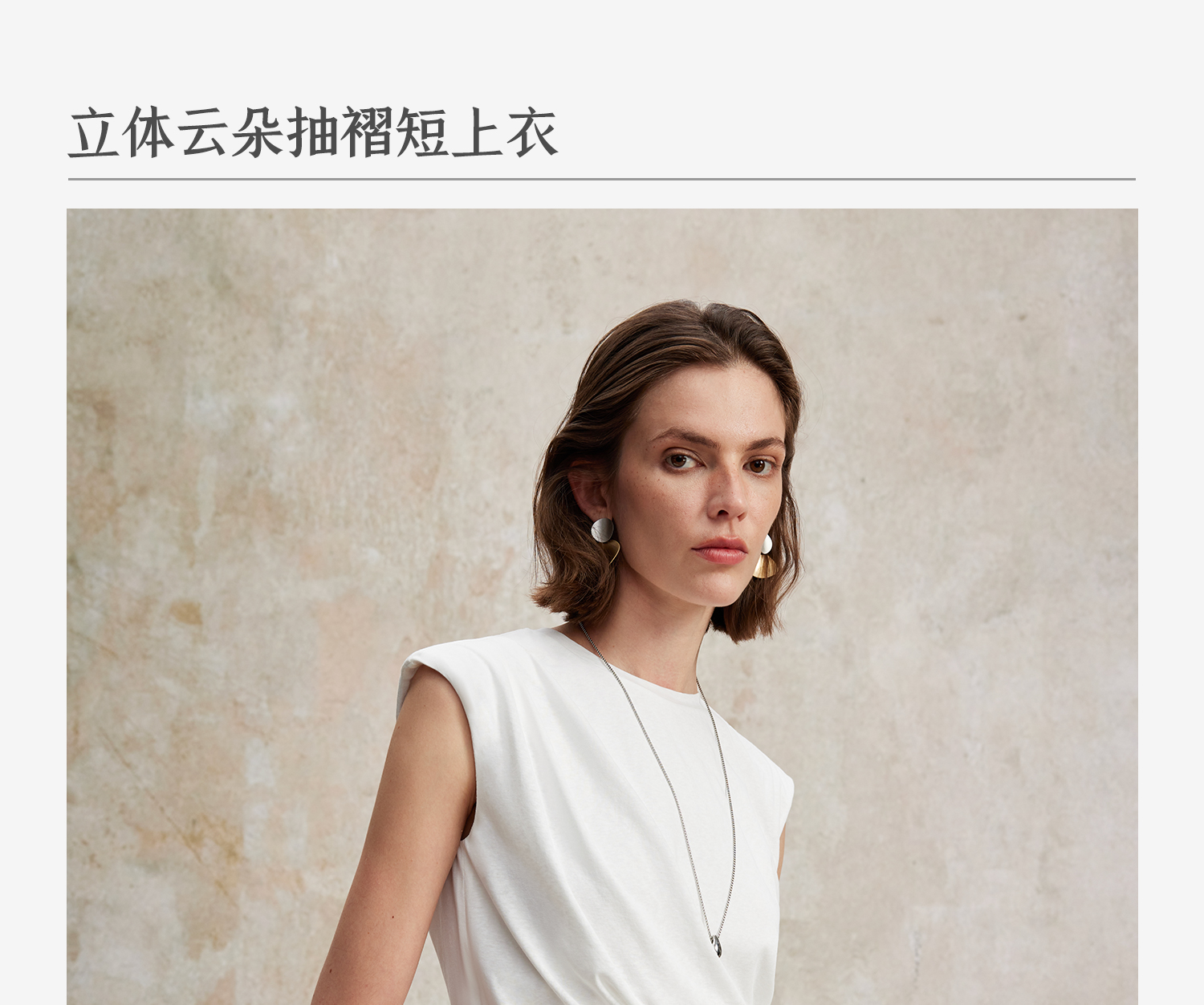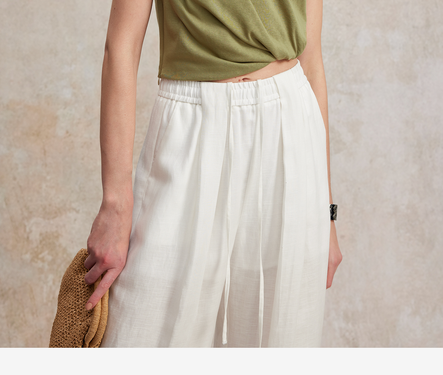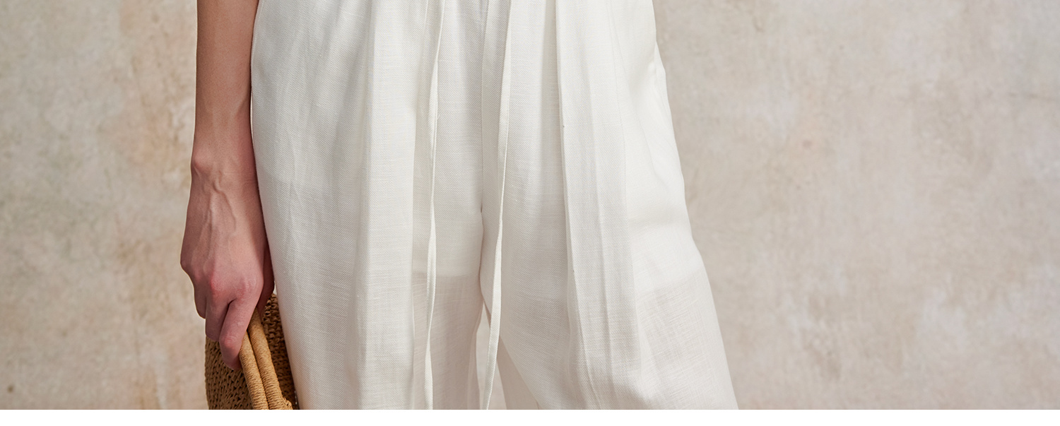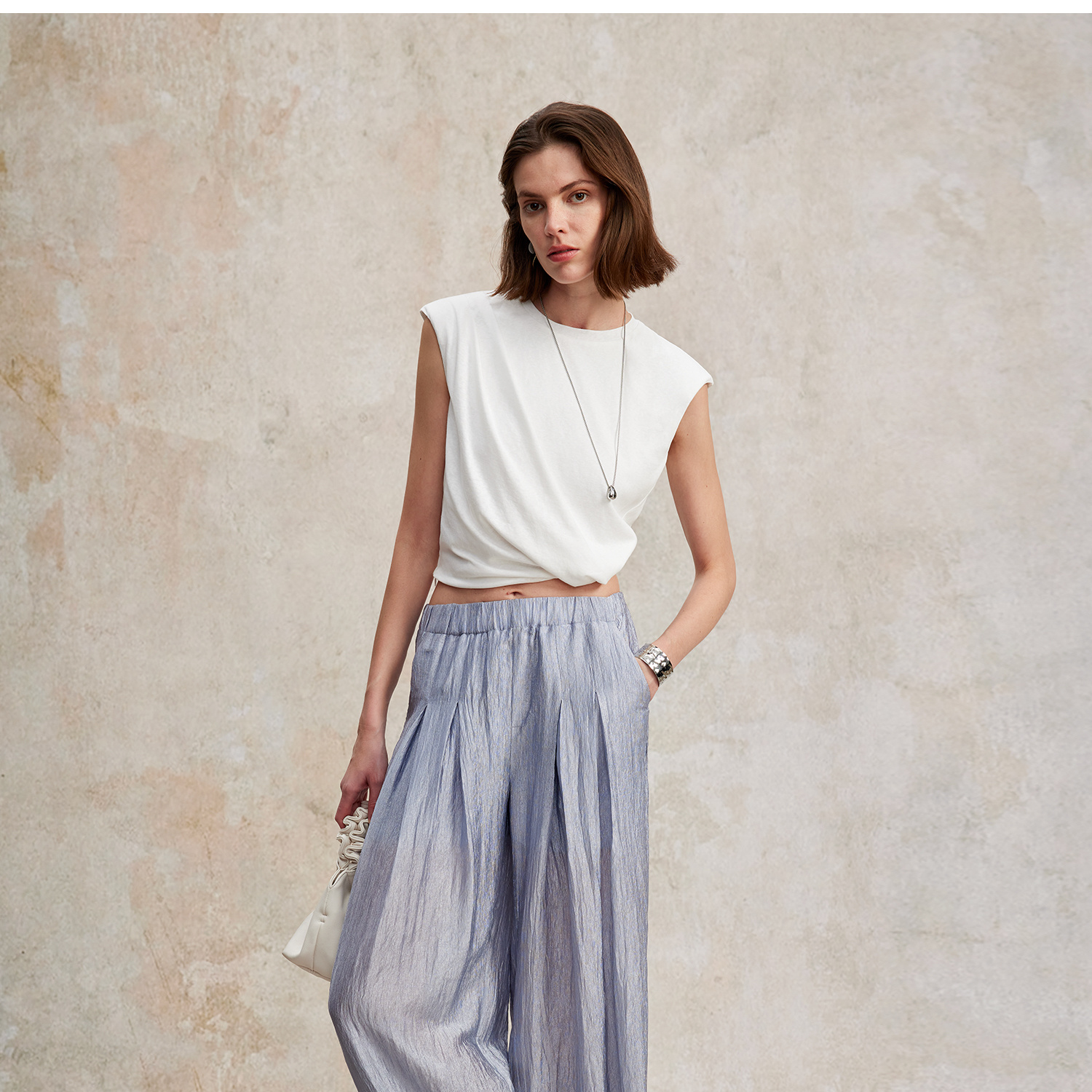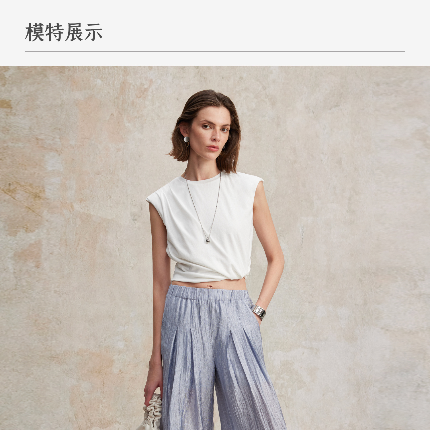 亚麻棉宽肩无袖扭结短款T恤T2502037