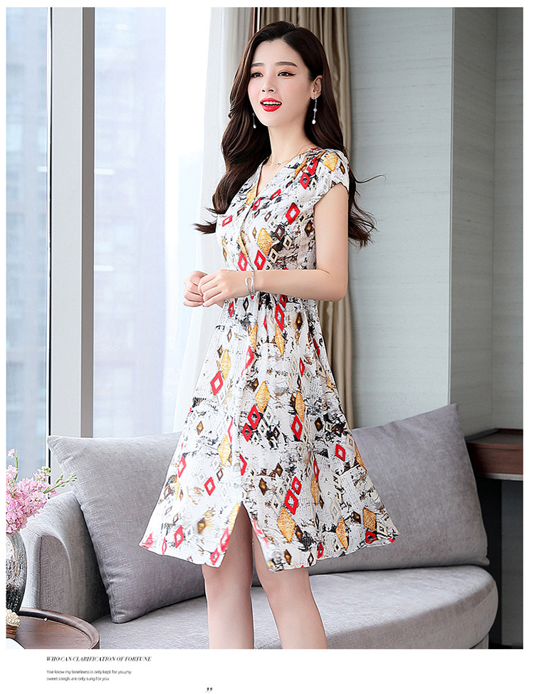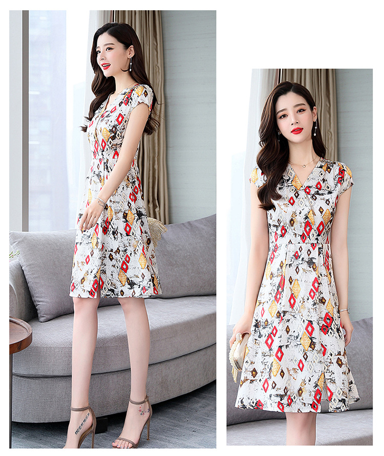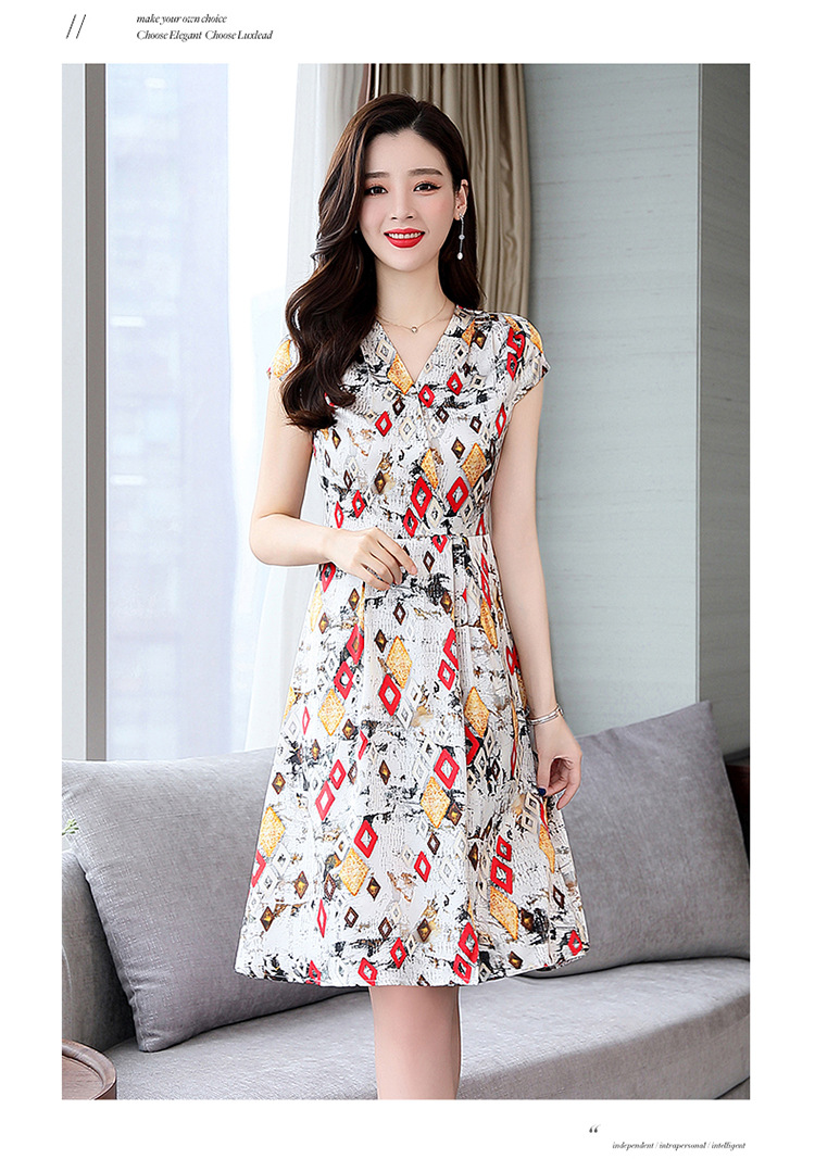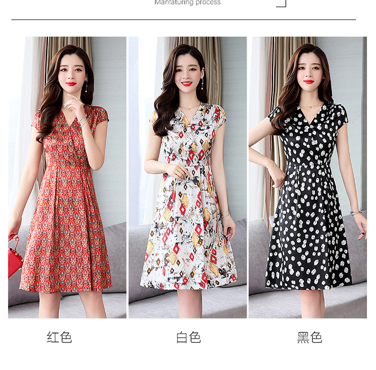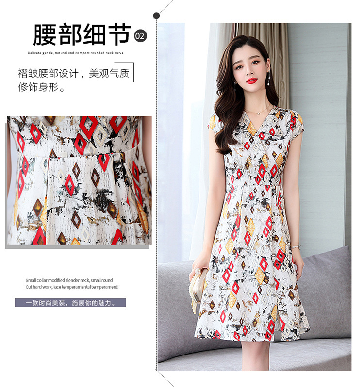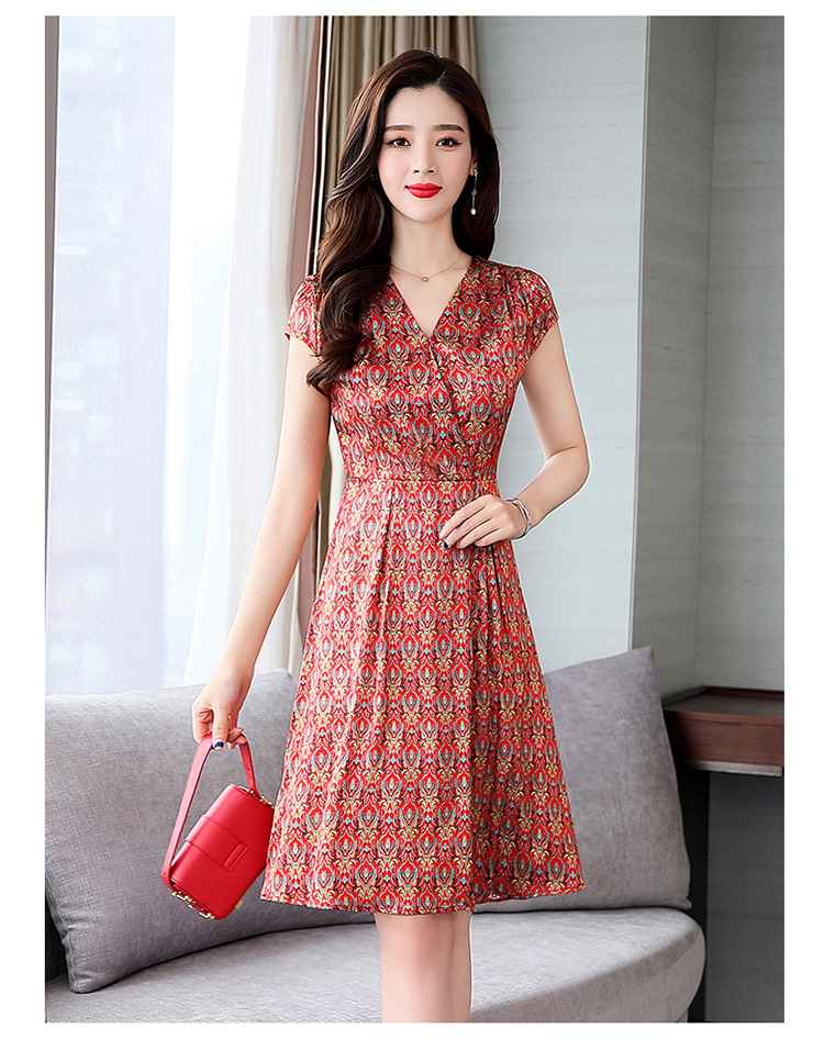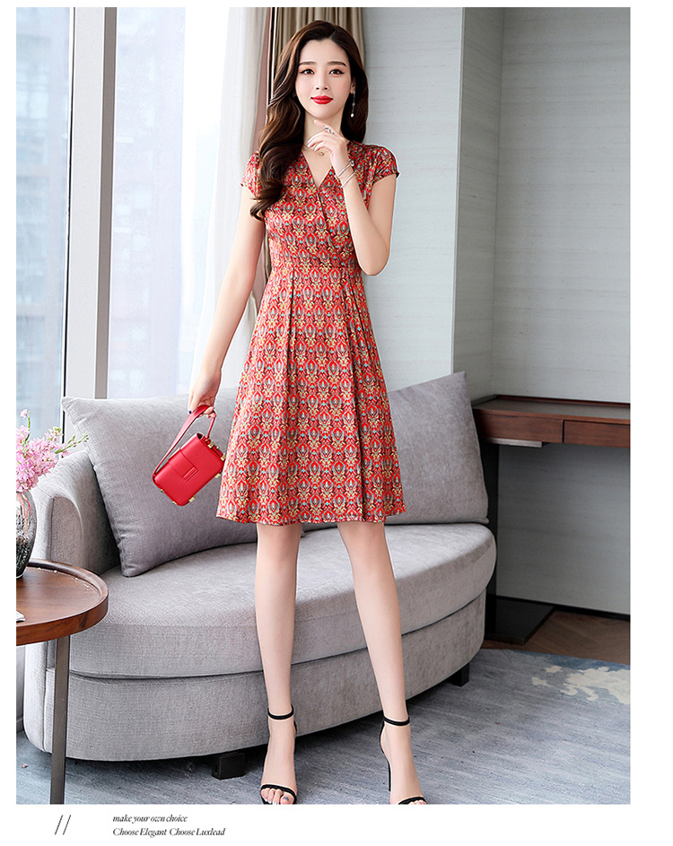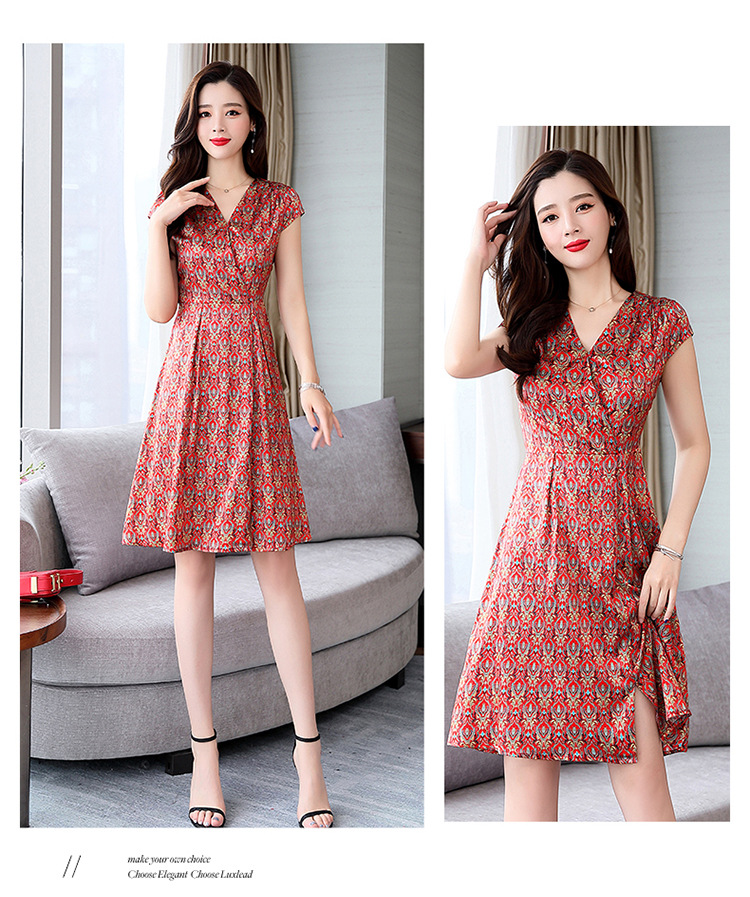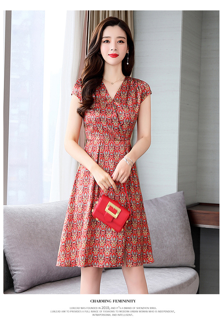 上海旗袍厂ASE-ASE2216性感V领时尚印花真丝连衣裙