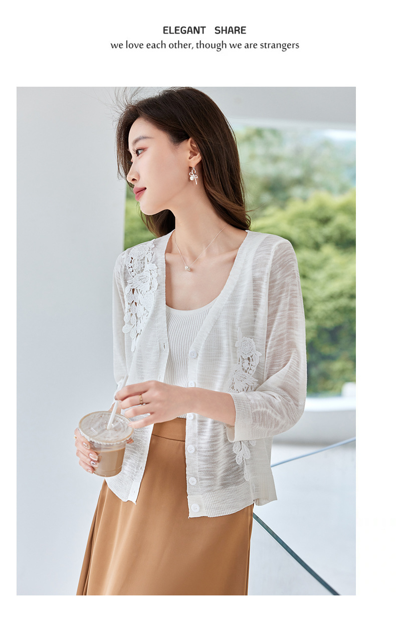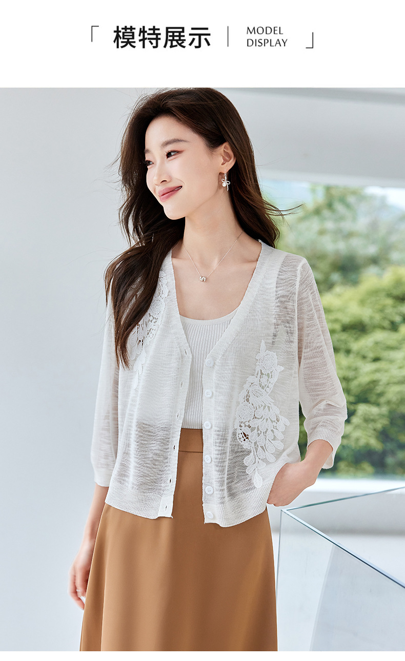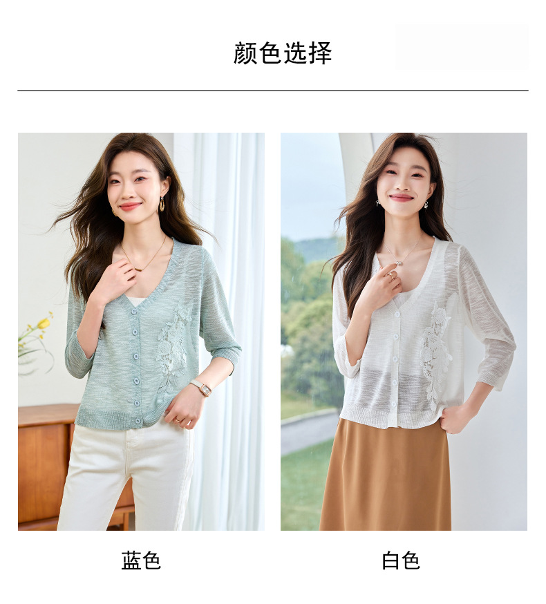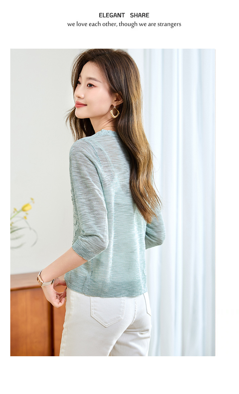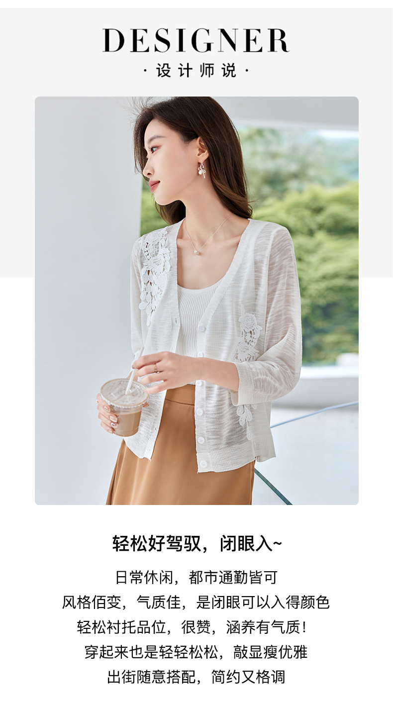 七分袖冰丝开衫,宽松镂空防晒衣披肩半袖上衣CC-ML7729