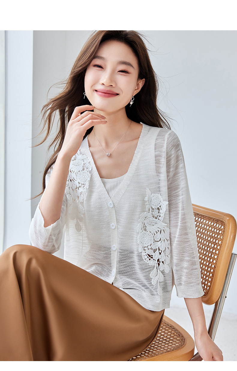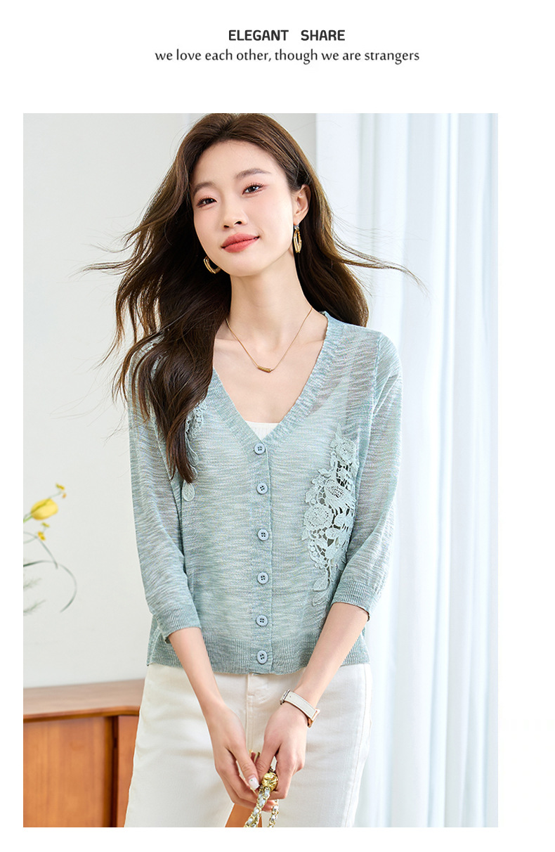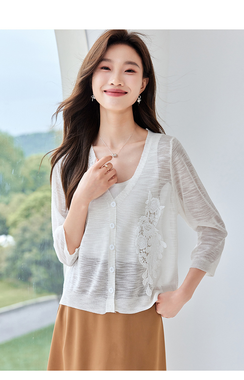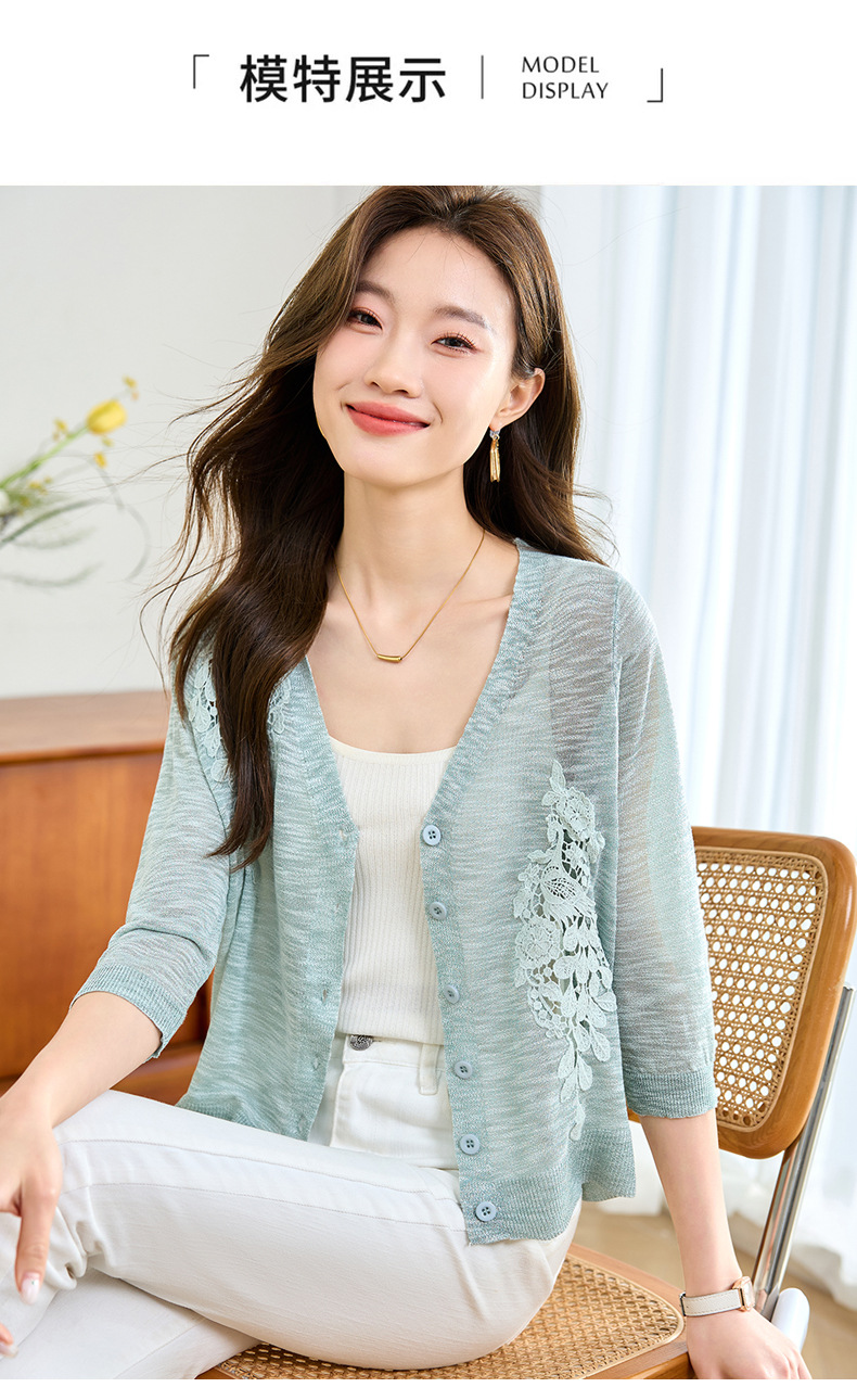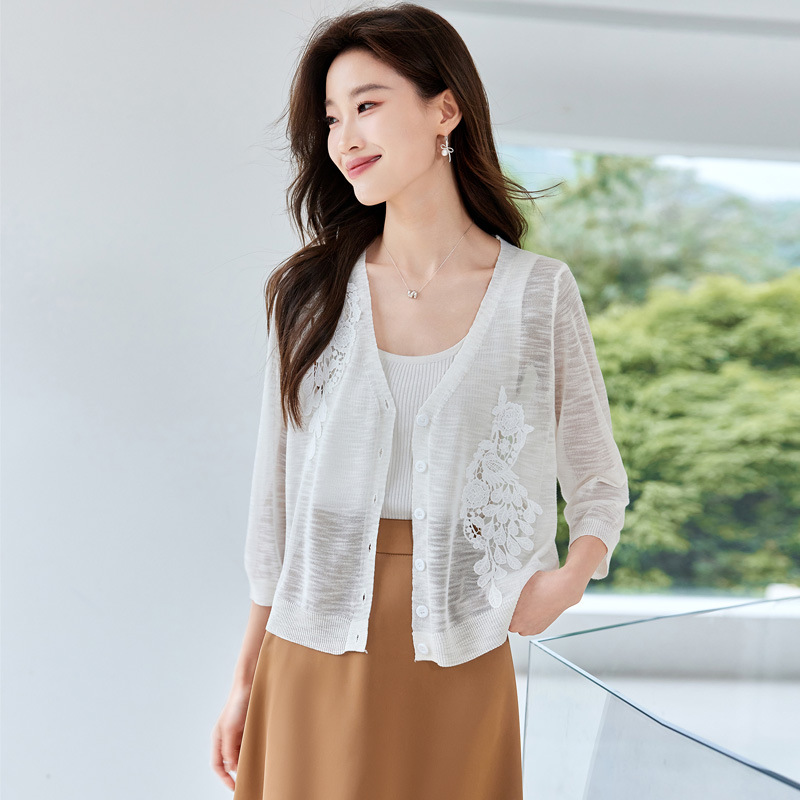七分袖冰丝开衫,宽松镂空防晒衣披肩半袖上衣CC-ML7729