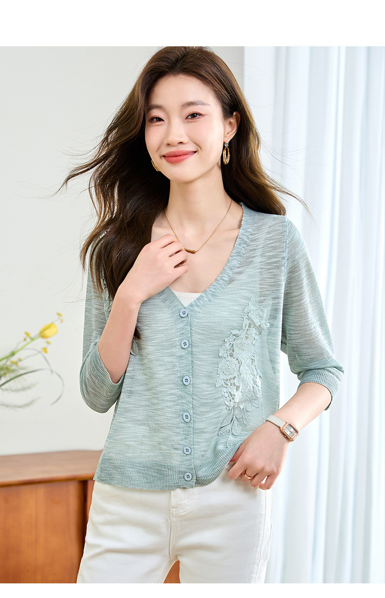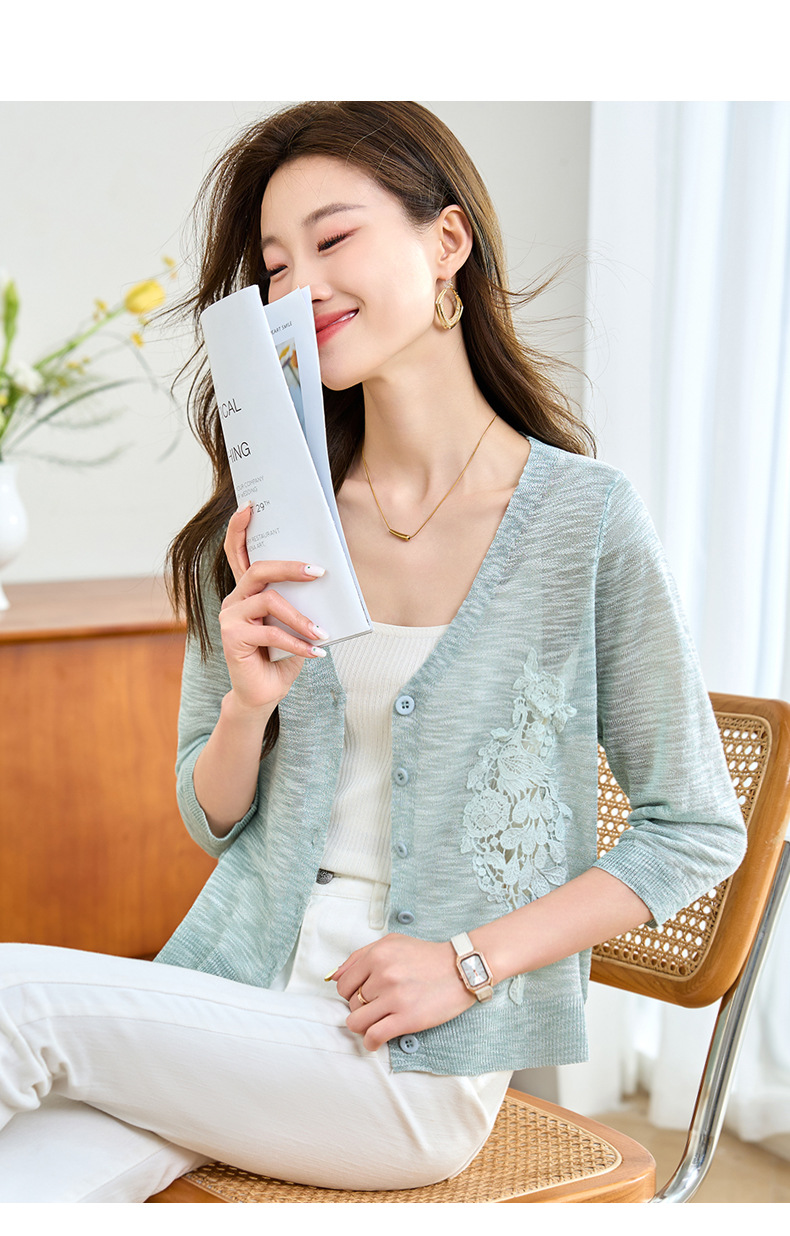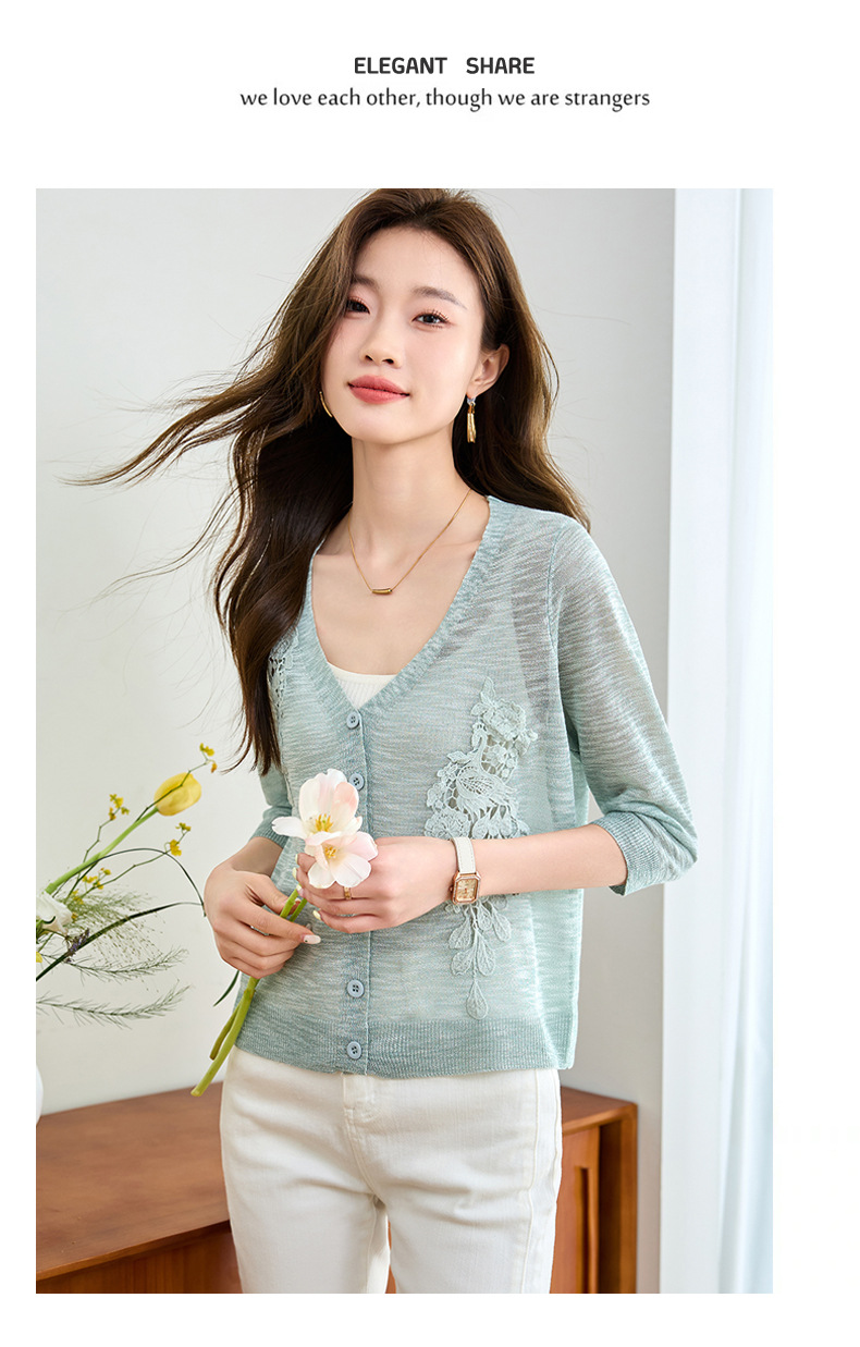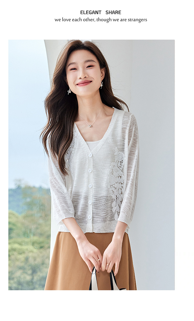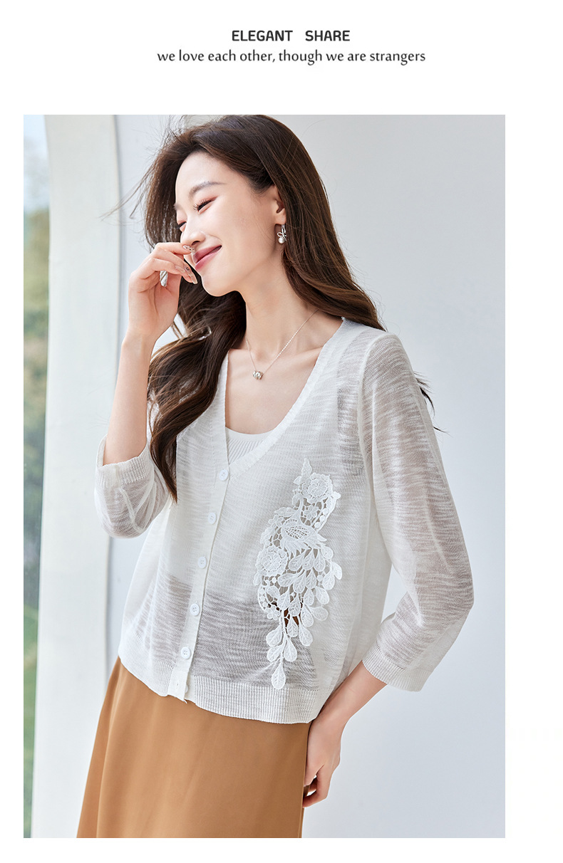 七分袖冰丝开衫,宽松镂空防晒衣披肩半袖上衣CC-ML7729
