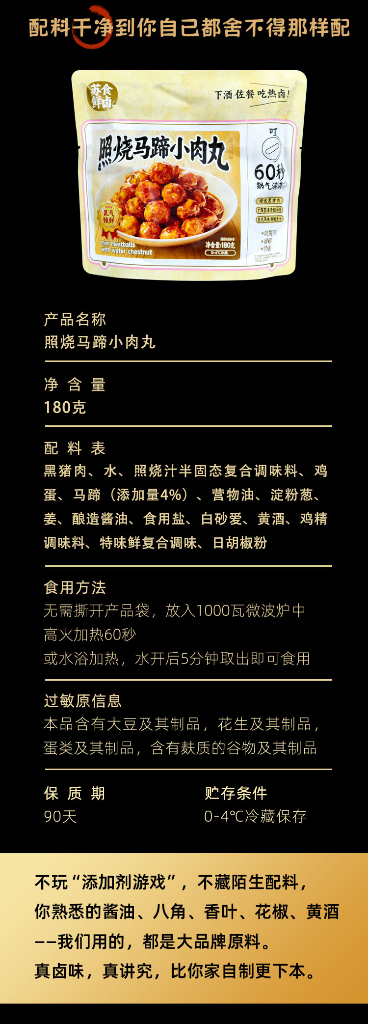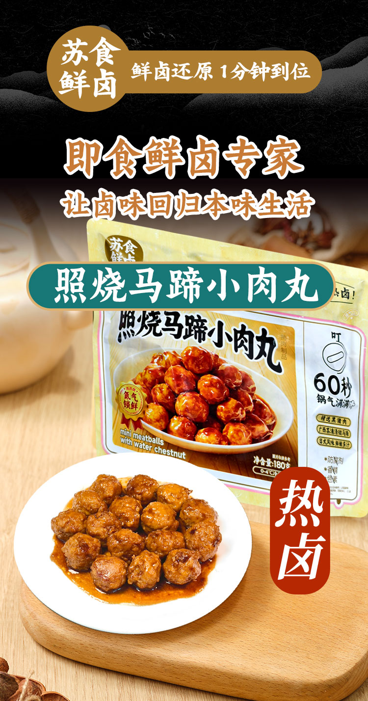 【南京提货券300-500】苏食鲜卤照烧小马蹄狮子头180克*4