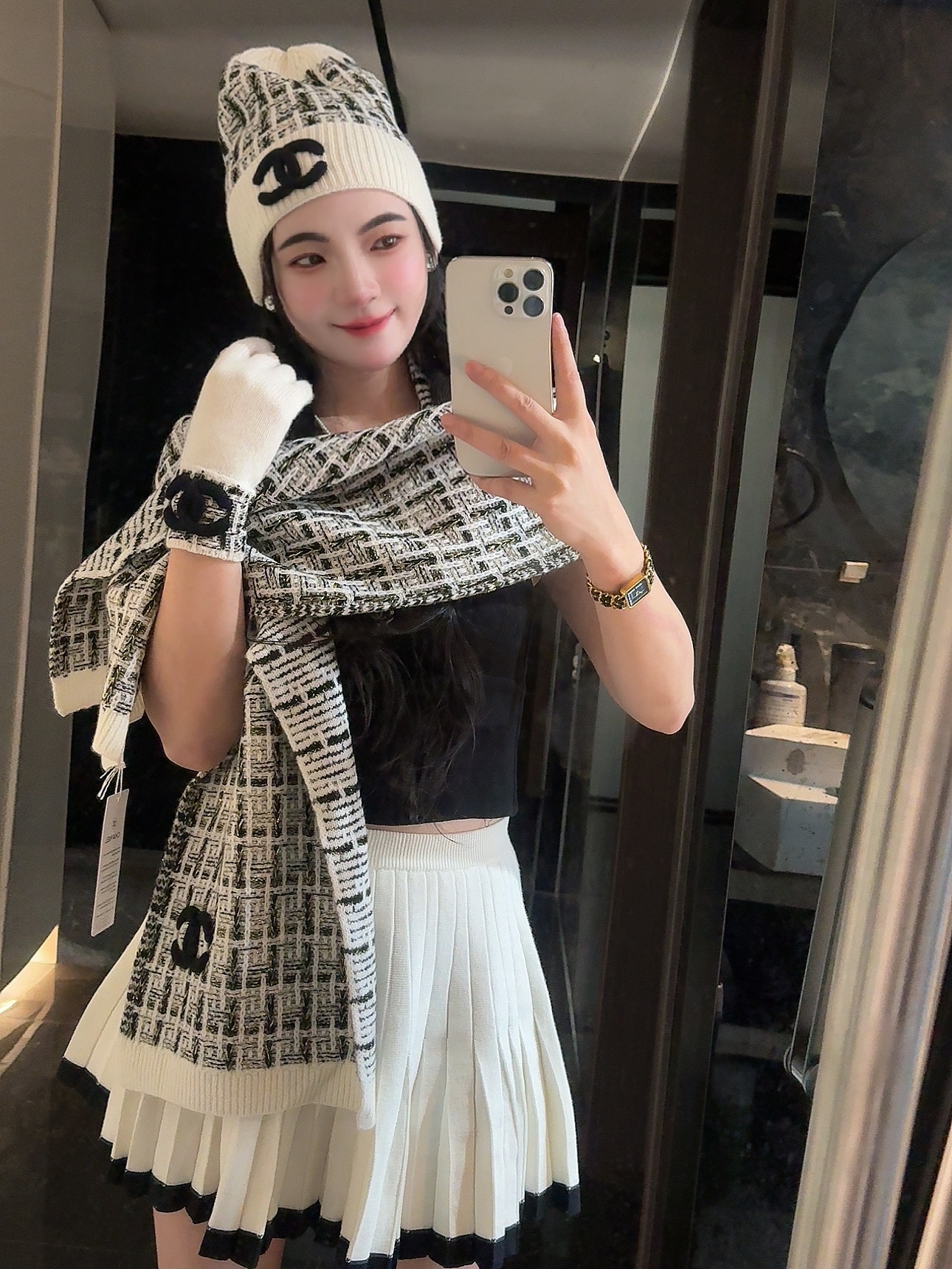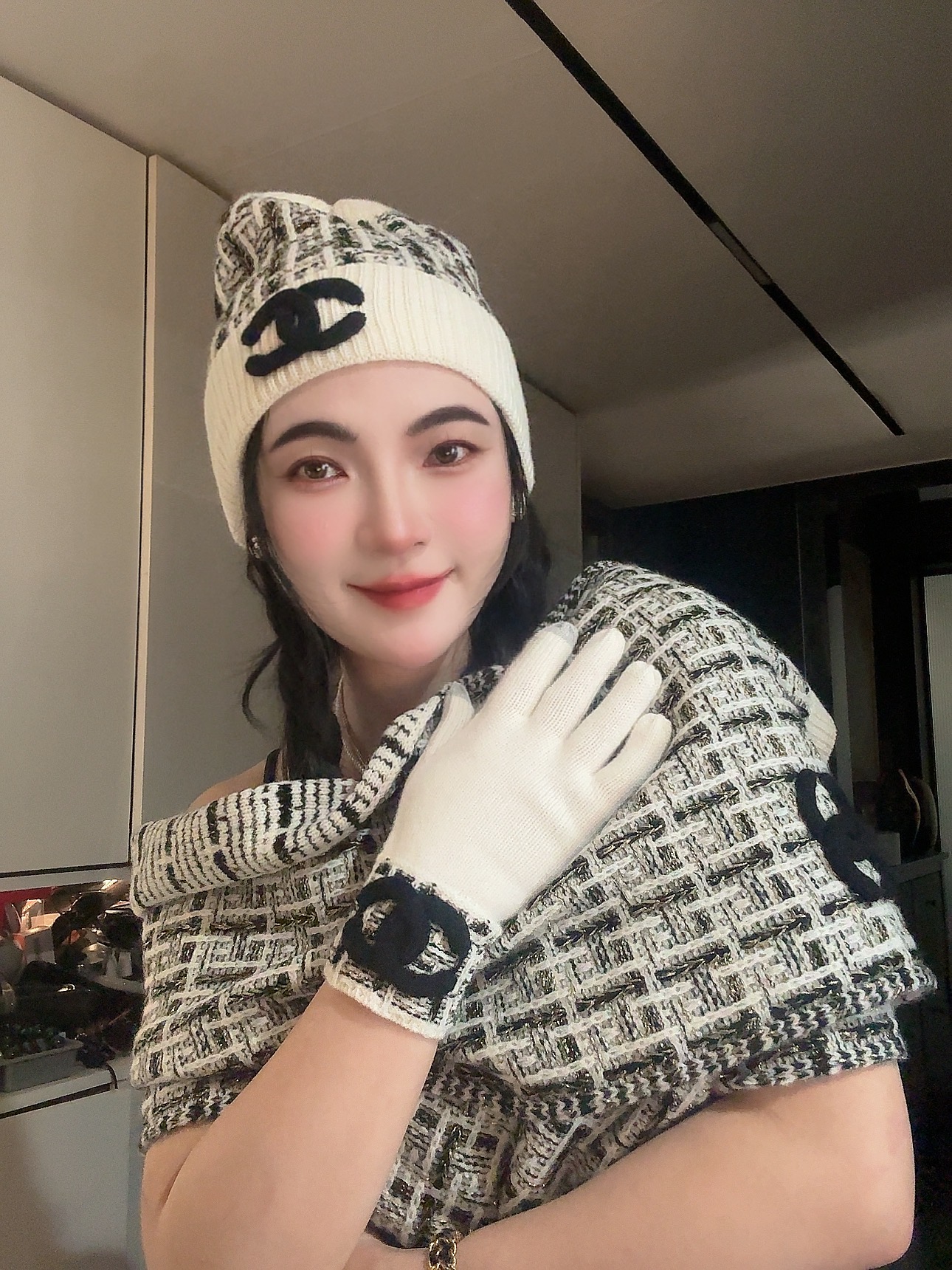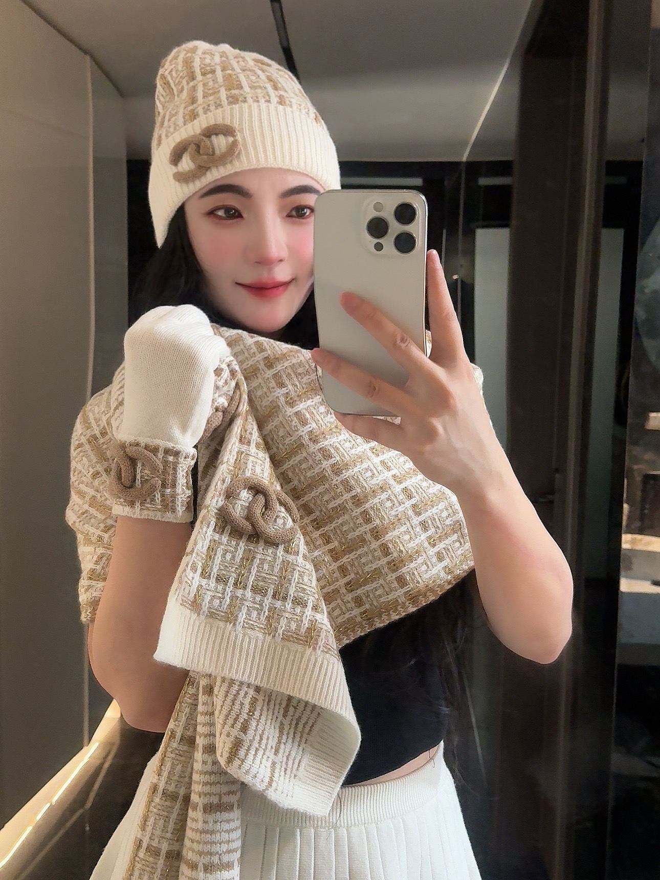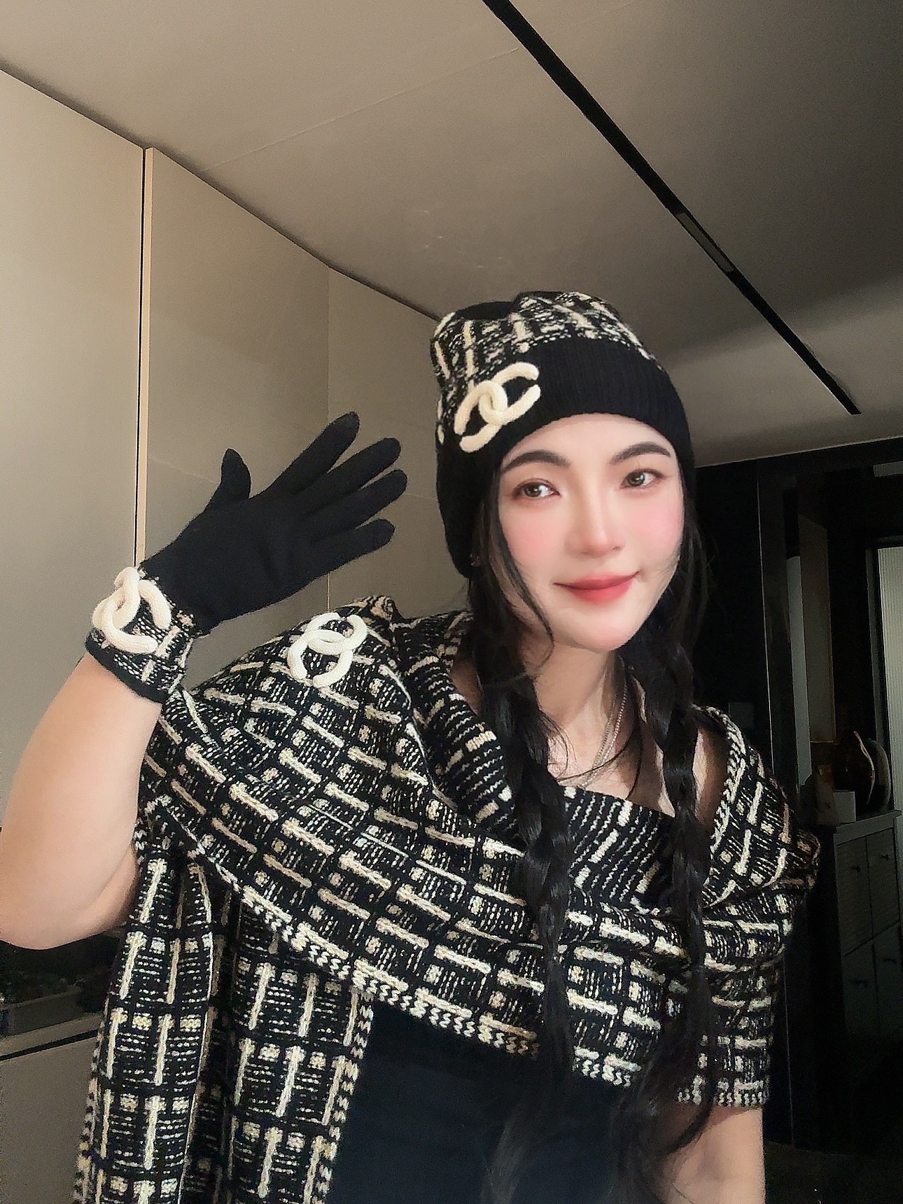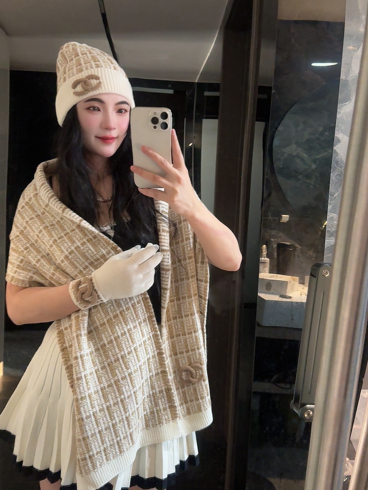 香港海港城🇭🇰退柜zheng品‼️ !3!【Chanel香奈儿纯羊绒保暖套装】 🌸香家纯羊绒套装小香经典套装帽子!帽子十围巾十手套!三件套!超级软糯,山羊绒!真的手感特别细腻,无可挑剔的质感和品质!细节也处理的非常好!!暖暖哒超级舒服~冬日小姐姐减龄神器哦~这个冬天你就差这么一套套装帽子啦~又保暖又时尚! 这个好东西你们一定要收!卖完永久无补⚠️