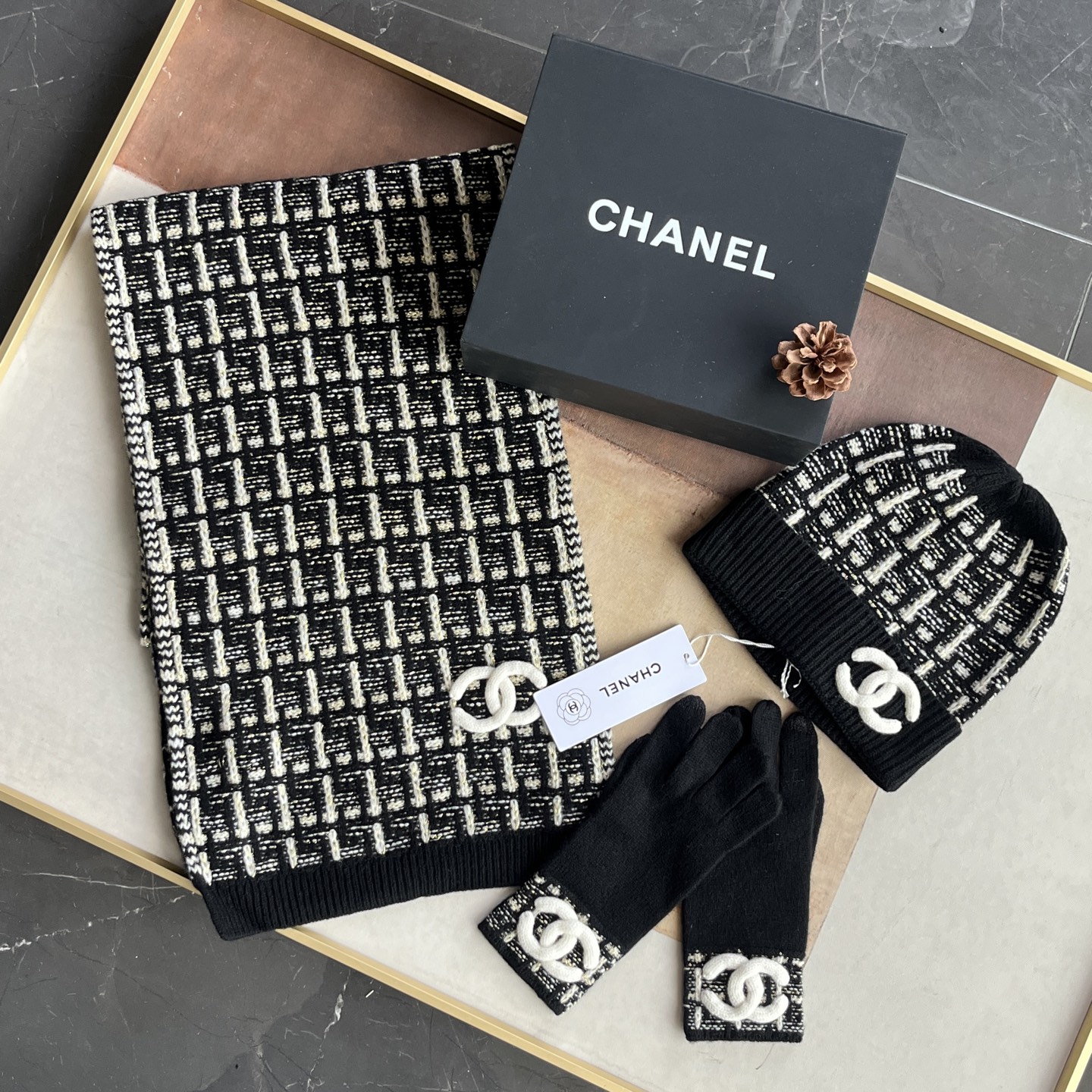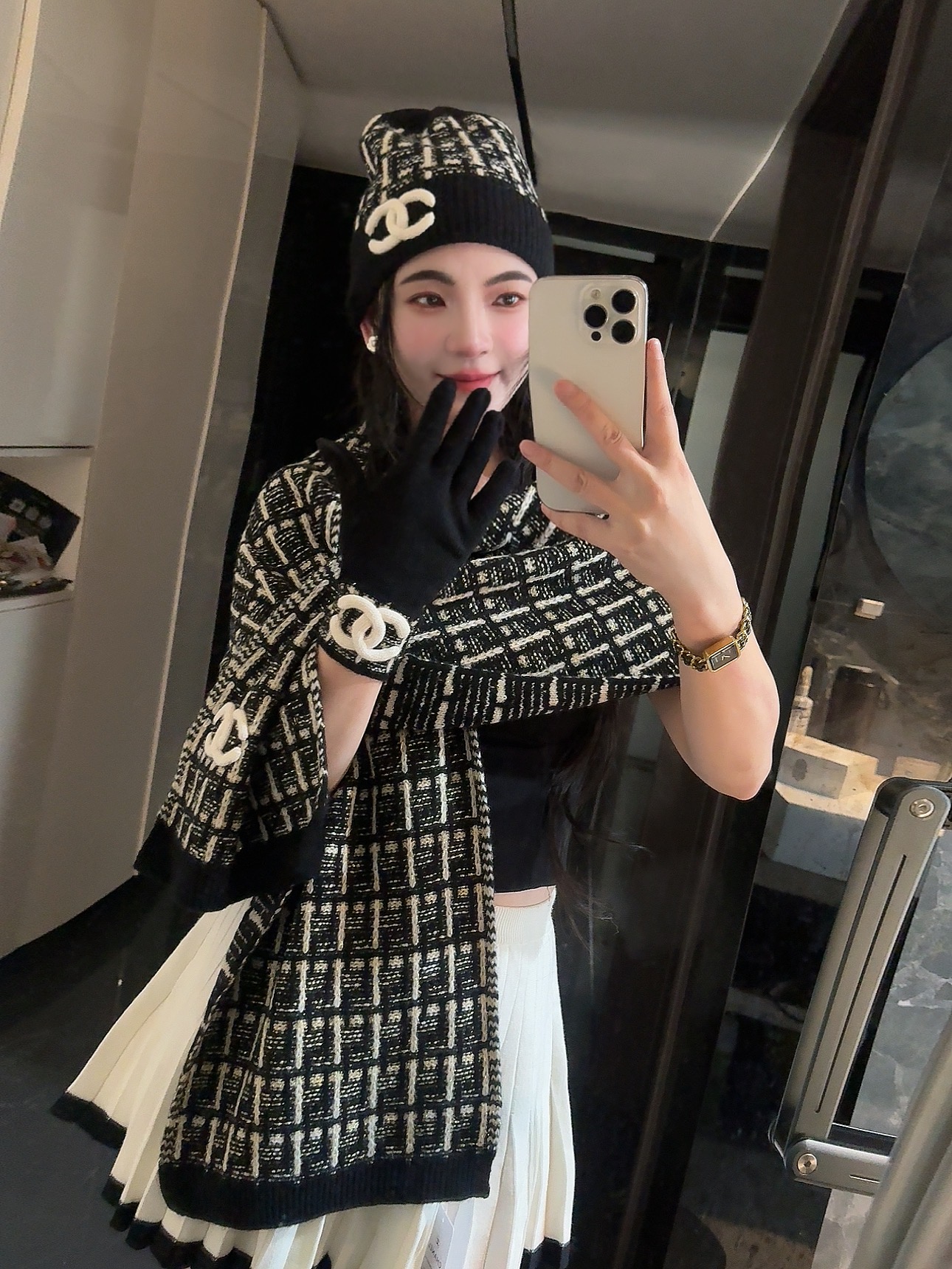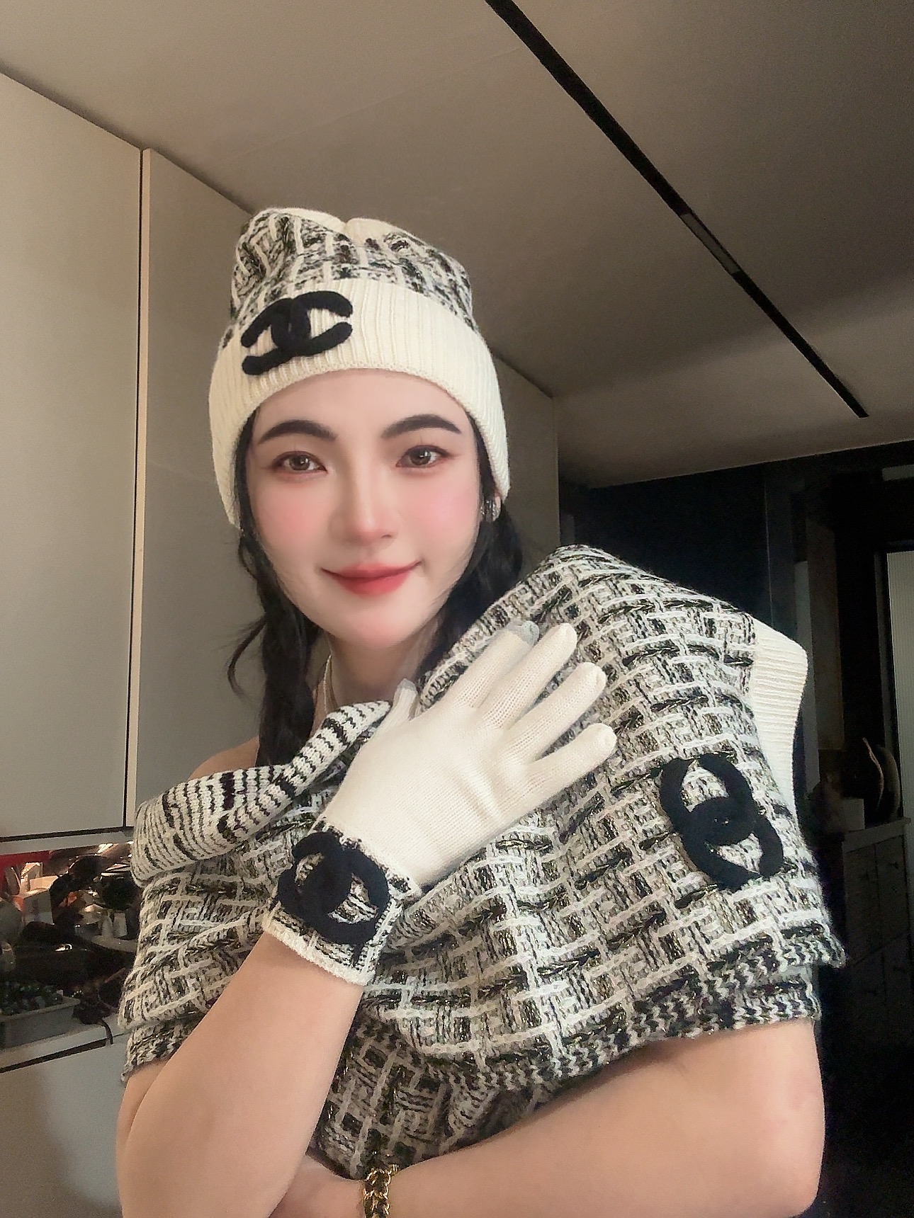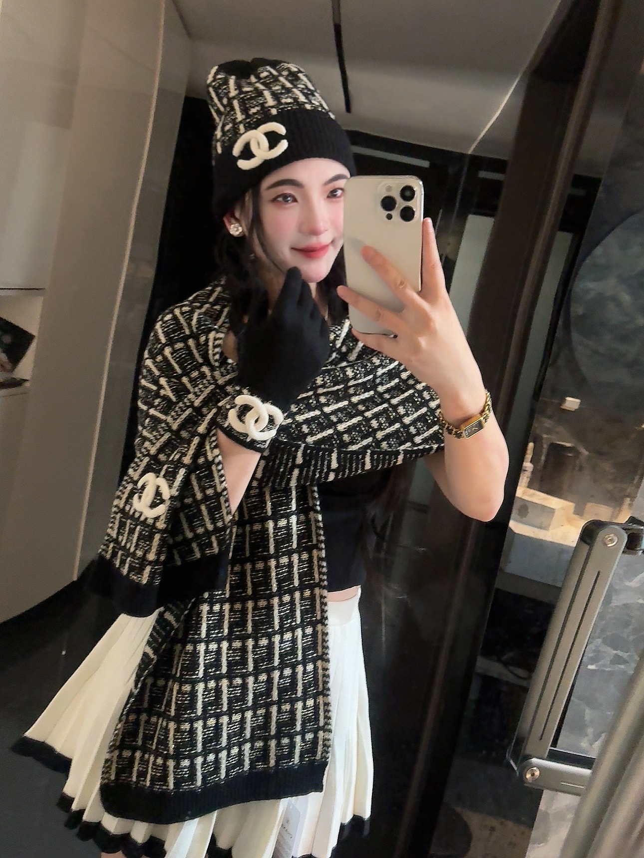 香港海港城🇭🇰退柜zheng品‼️ !3!【Chanel香奈儿纯羊绒保暖套装】 🌸香家纯羊绒套装小香经典套装帽子!帽子十围巾十手套!三件套!超级软糯,山羊绒!真的手感特别细腻,无可挑剔的质感和品质!细节也处理的非常好!!暖暖哒超级舒服~冬日小姐姐减龄神器哦~这个冬天你就差这么一套套装帽子啦~又保暖又时尚! 这个好东西你们一定要收!卖完永久无补⚠️