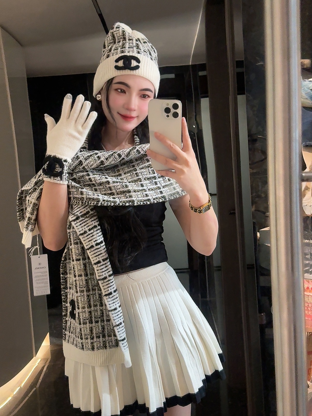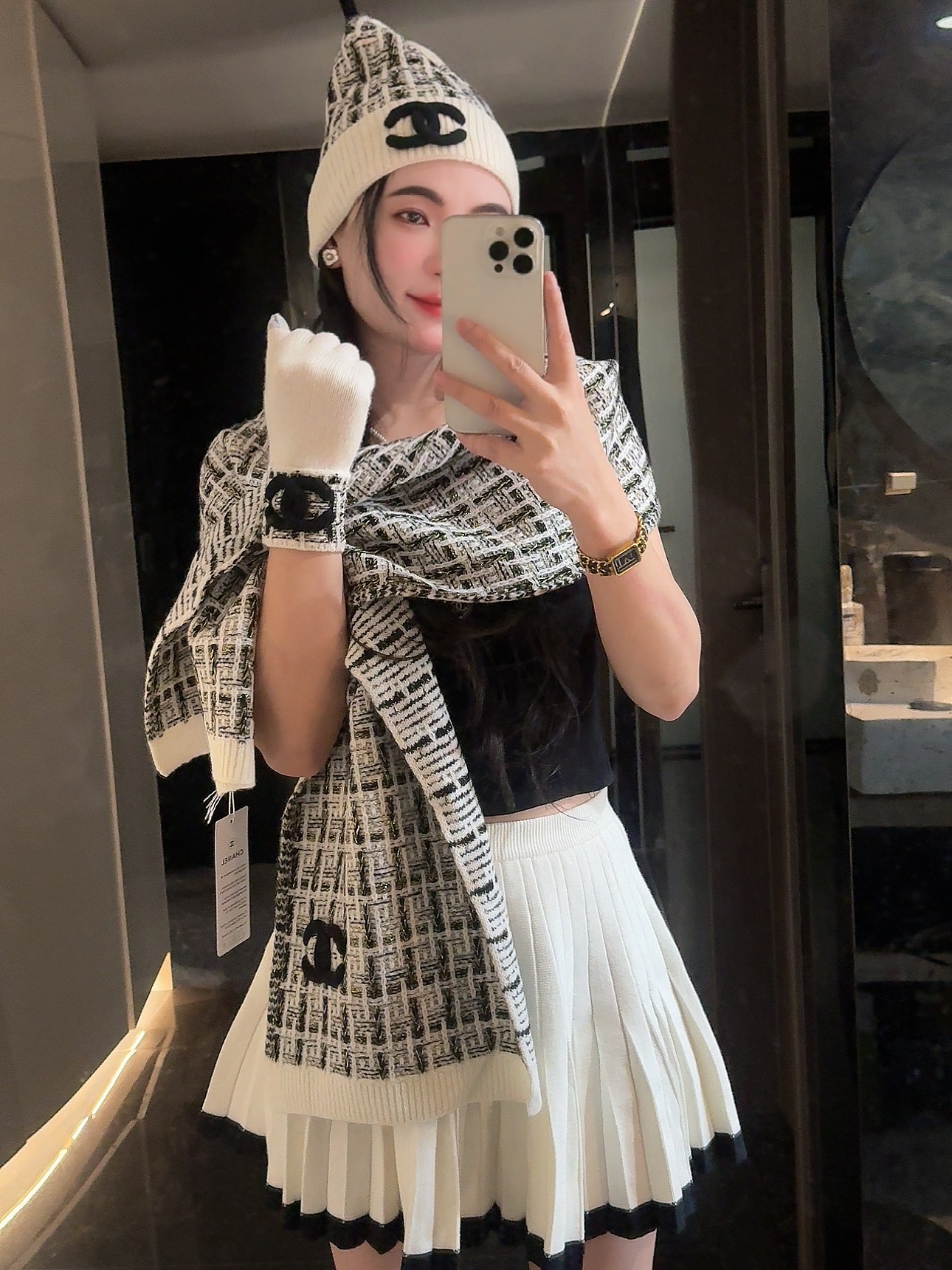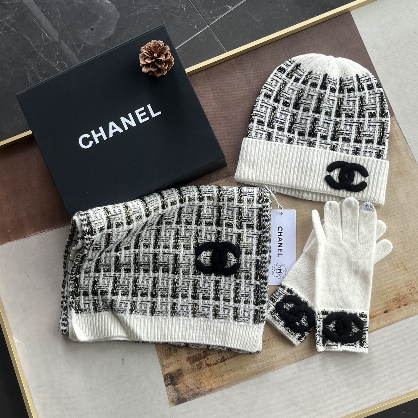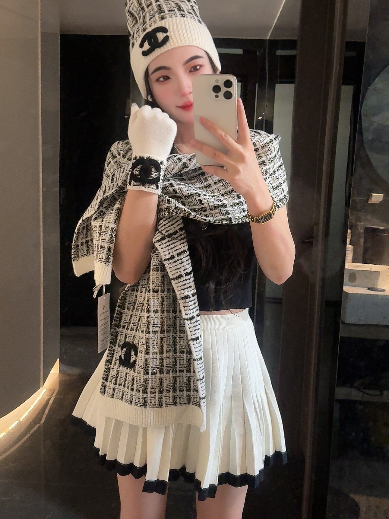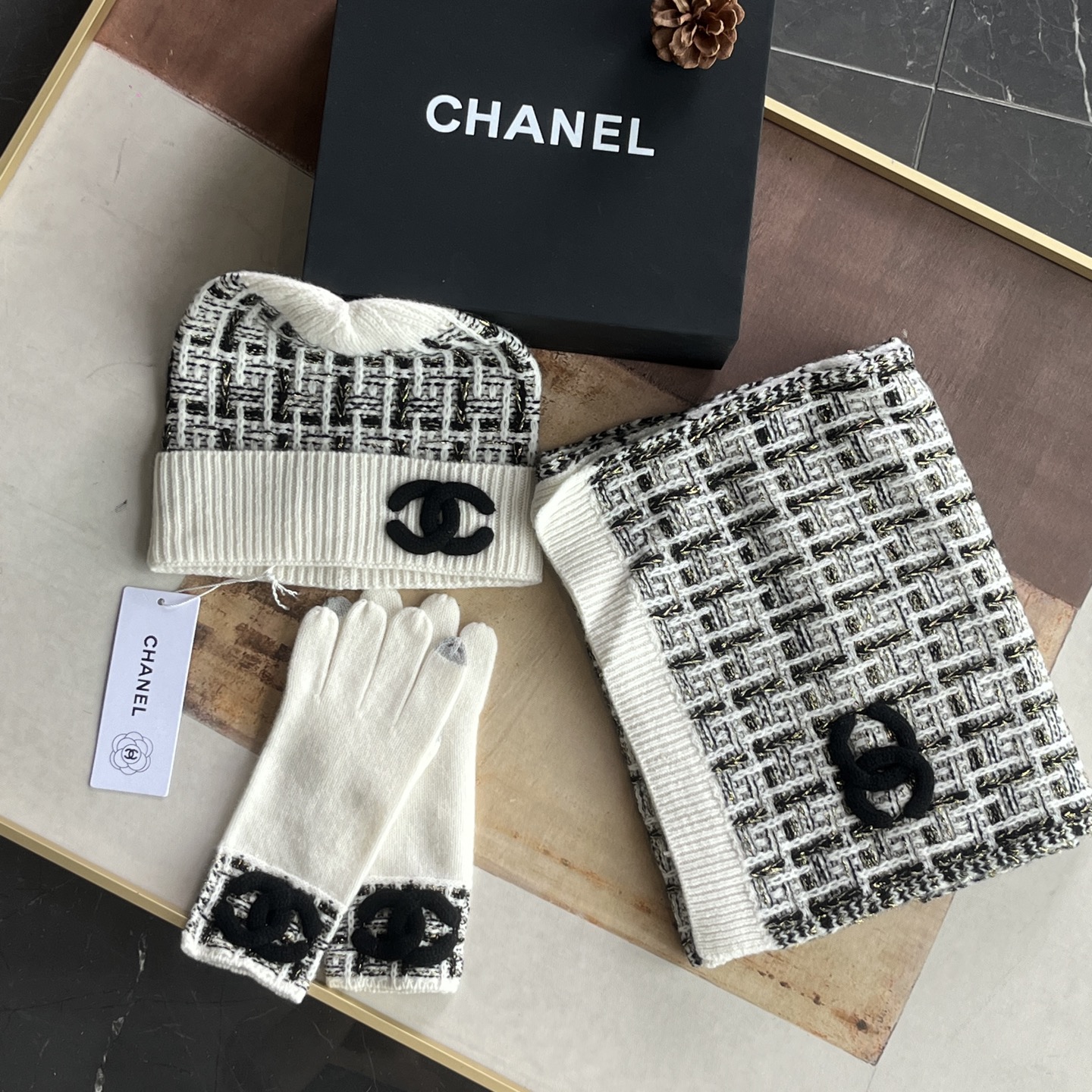 香港海港城🇭🇰退柜zheng品‼️ !3!【Chanel香奈儿纯羊绒保暖套装】 🌸香家纯羊绒套装小香经典套装帽子!帽子十围巾十手套!三件套!超级软糯,山羊绒!真的手感特别细腻,无可挑剔的质感和品质!细节也处理的非常好!!暖暖哒超级舒服~冬日小姐姐减龄神器哦~这个冬天你就差这么一套套装帽子啦~又保暖又时尚! 这个好东西你们一定要收!卖完永久无补⚠️