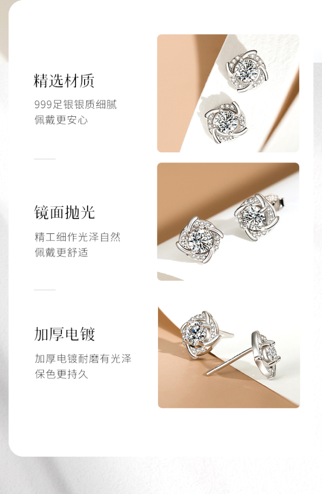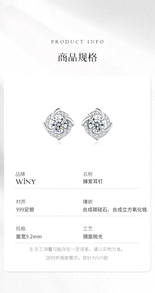 Winy925纯银臻爱耳钉送女友闺蜜节日生日礼物