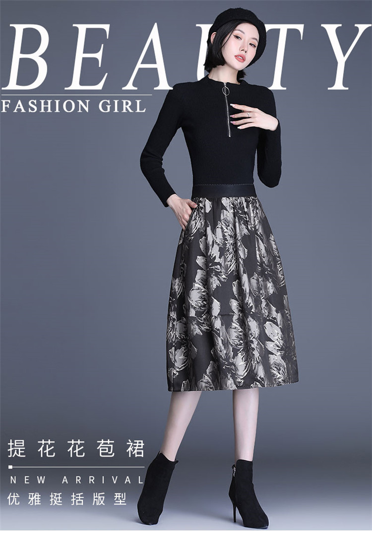 2022春季新款高腰a字裙中长款花苞蓬蓬伞裙大码 TY8105