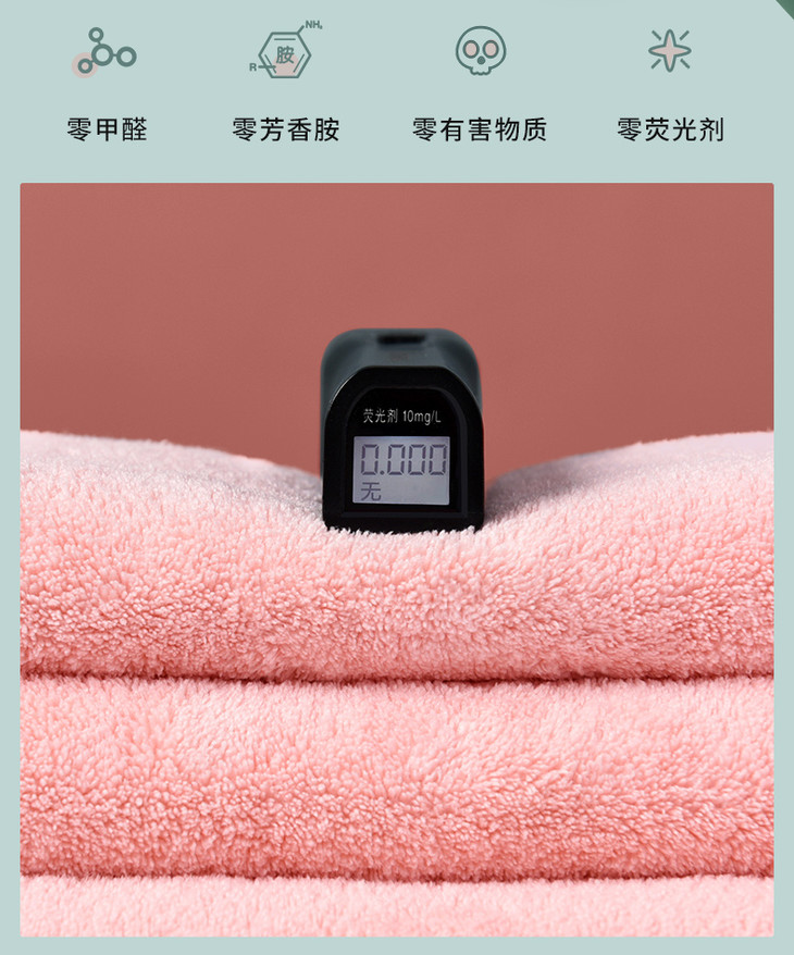 毛巾脱毛率检测为0.1%(国标优等品的脱毛率标准为0.4%),不易掉毛;