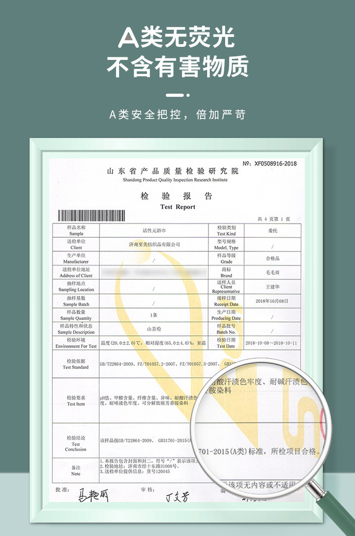 经检测机构检测,3条毛巾均符合标准要求,未检出甲醛,PH值符合要求,而且不易掉色。更重要的,不但毛巾和浴巾达到了A类标准,连干发帽都满足A类要求。三款毛巾都可以安心给宝宝使用。