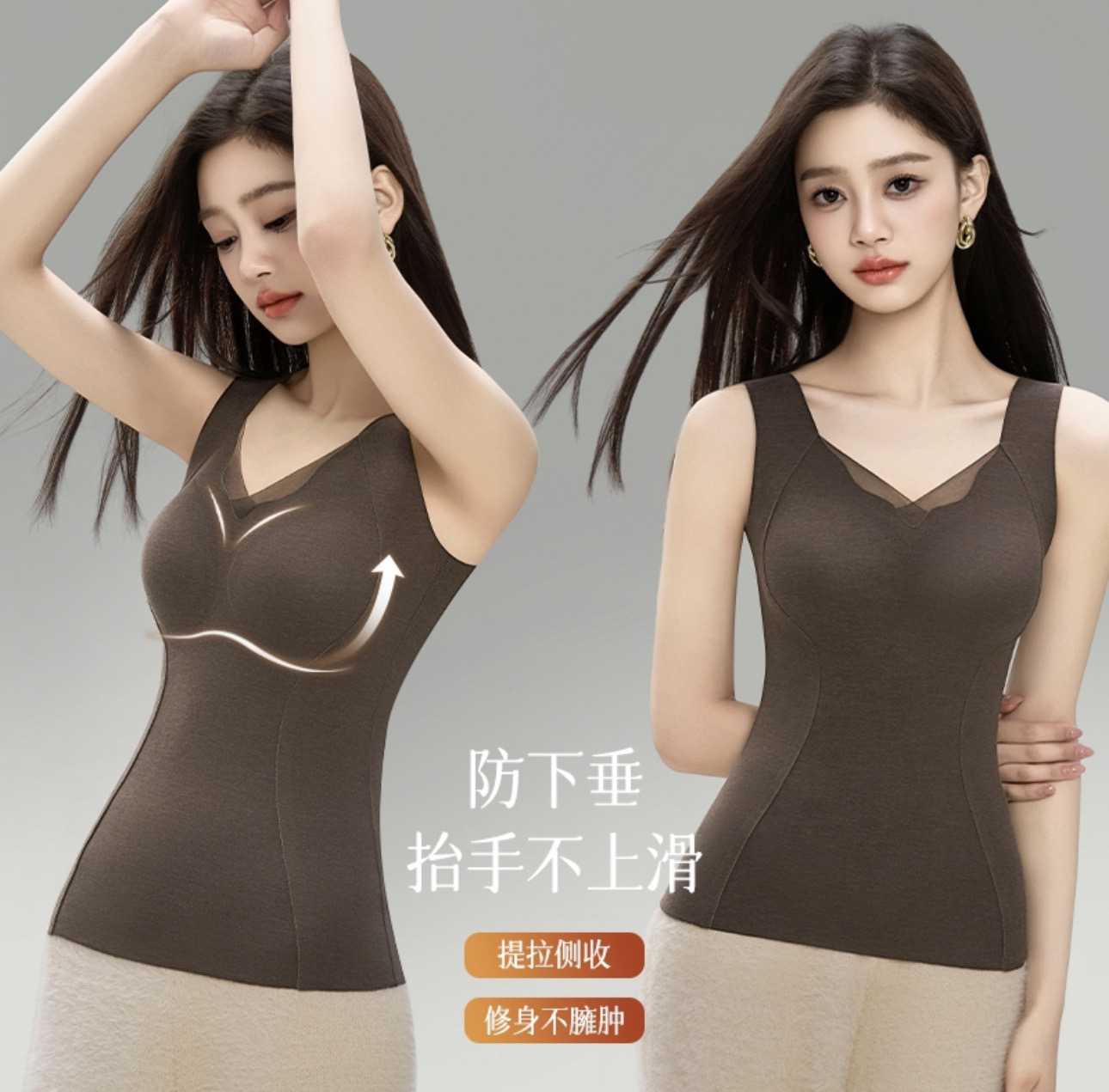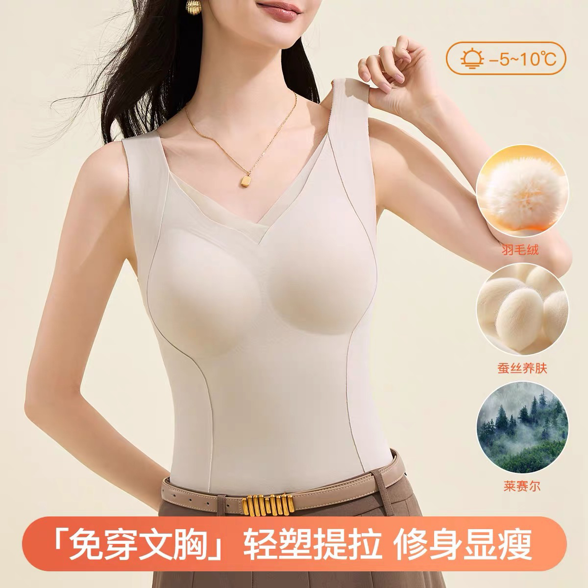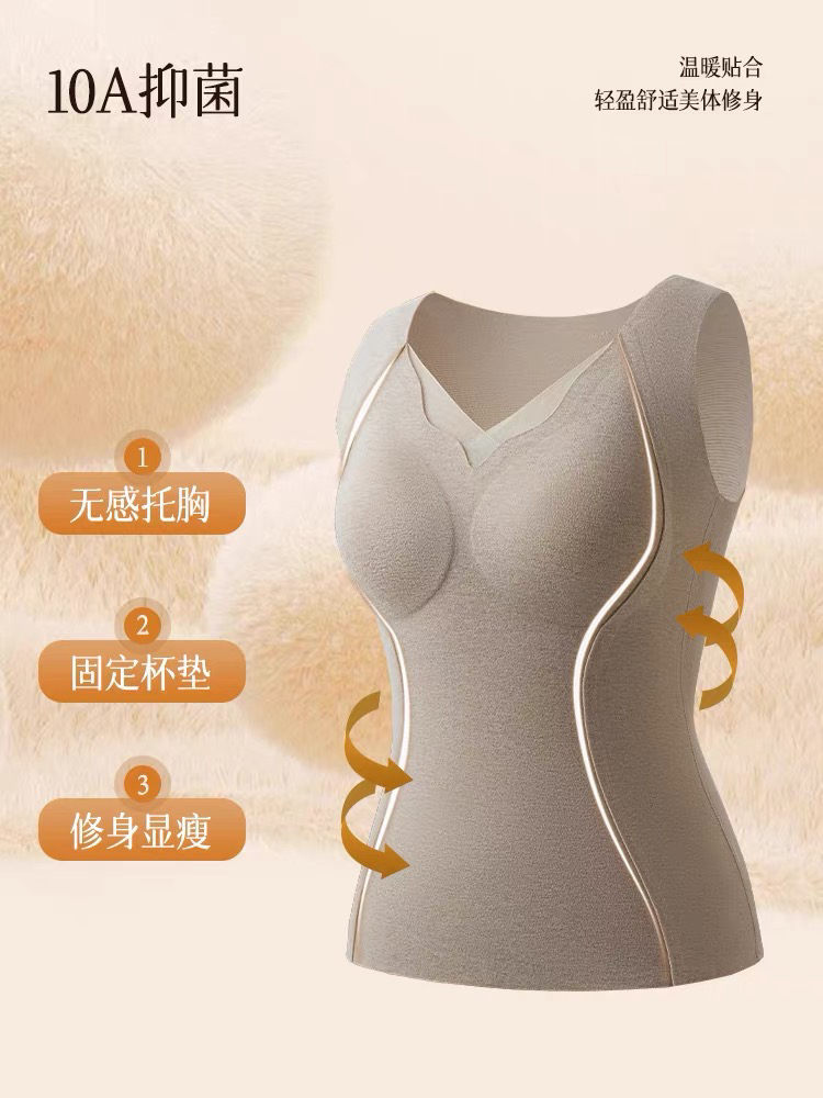 轻运动与日常穿搭的刚需款,一件搞定全天的舒适与精致!优选桑蚕丝与羊毛混纺的面料 软糯细腻 贴肤穿超舒适 透气不闷热且有效蓄温锁热防止冷空气灌入!一体式美背设计 ⚠️胸垫不可拆换‼️无需再穿bra 轻柔无压力!超强的承托力与专业线性裁剪 一秒修饰圆润饱满的胸型 带有塑形效果 轻松穿出人鱼腰线 非常修身显瘦~无痕裁剪隐形不外漏 穿紧身修身的衣服也不怕有“尴尬勒痕” 搭载四面弹力 完全不挑身形,简约百搭 任何年龄段皆可穿!