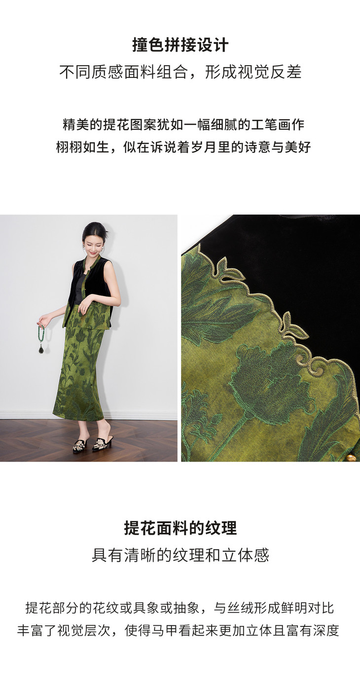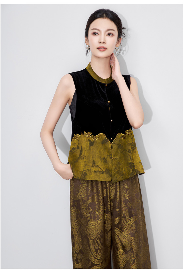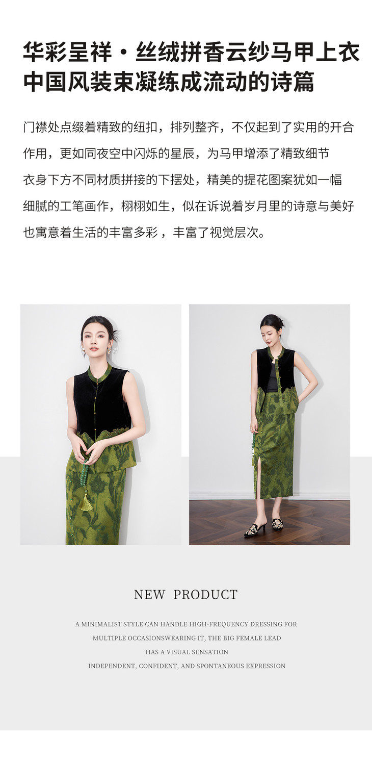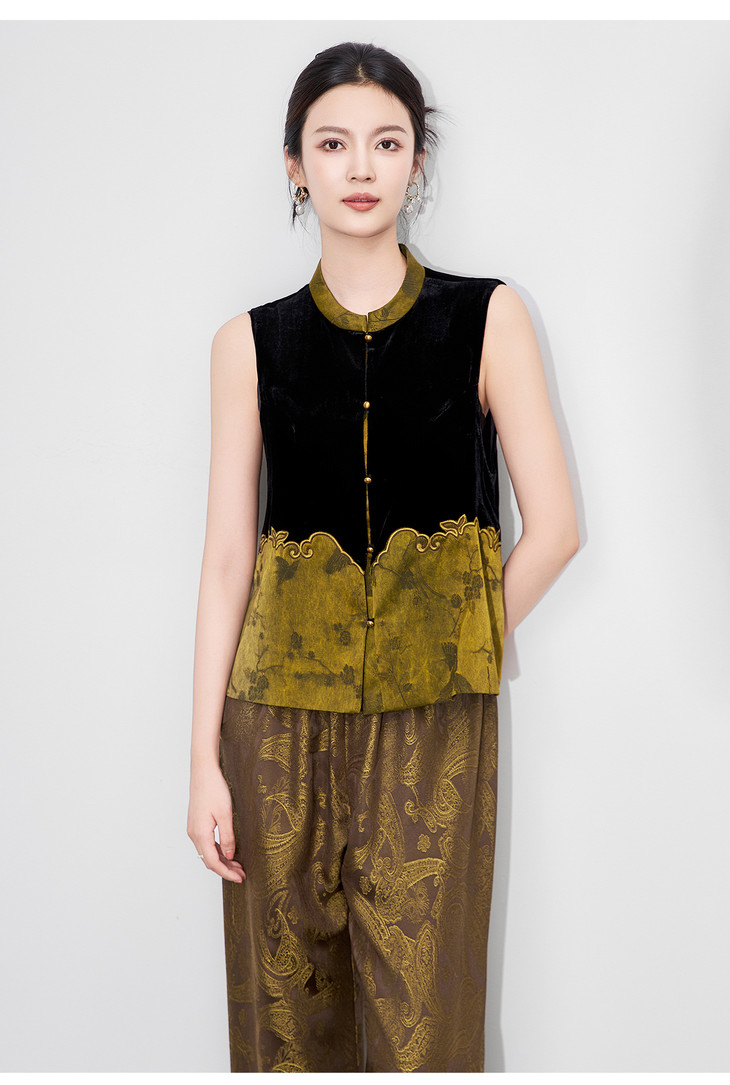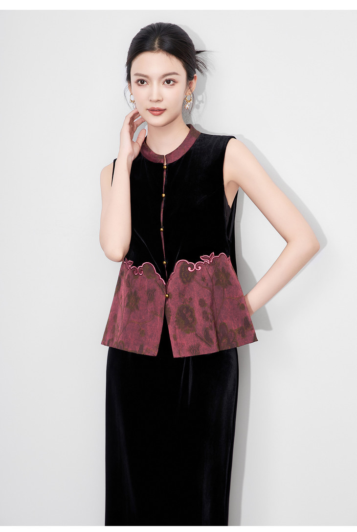 新中式香云纱提花背心,国风复古拼丝绒马甲(仅马甲)WLZD-2511504