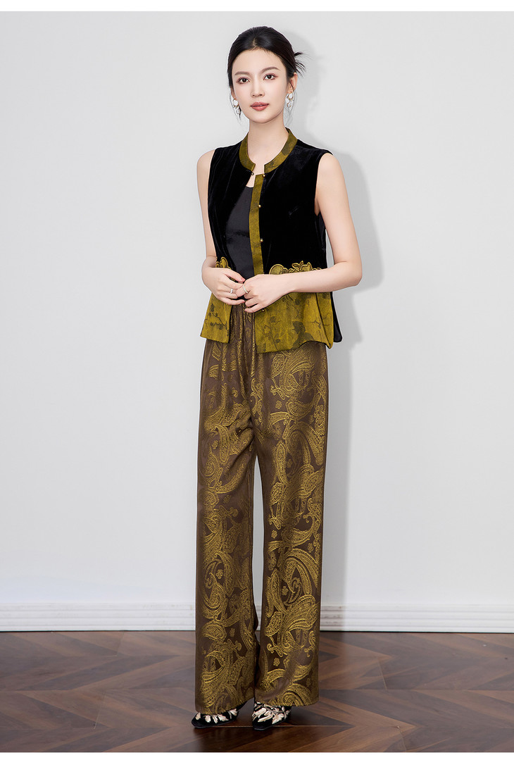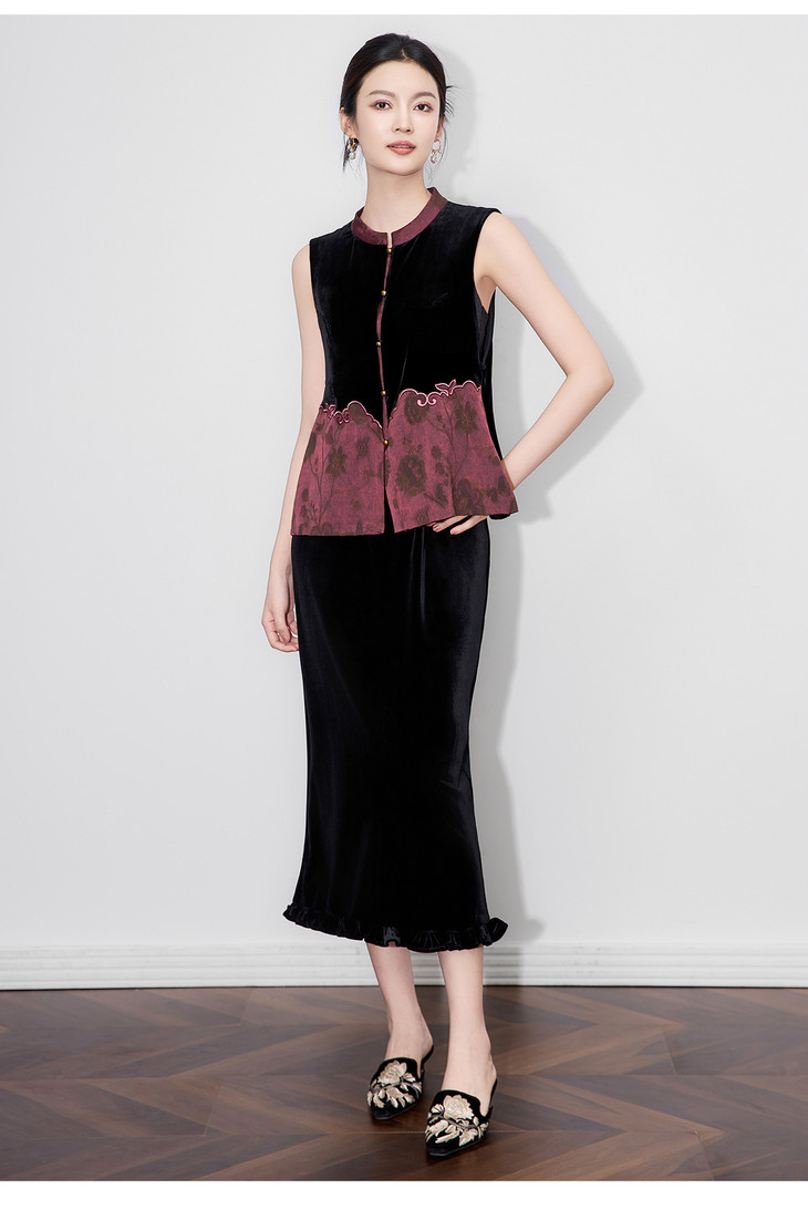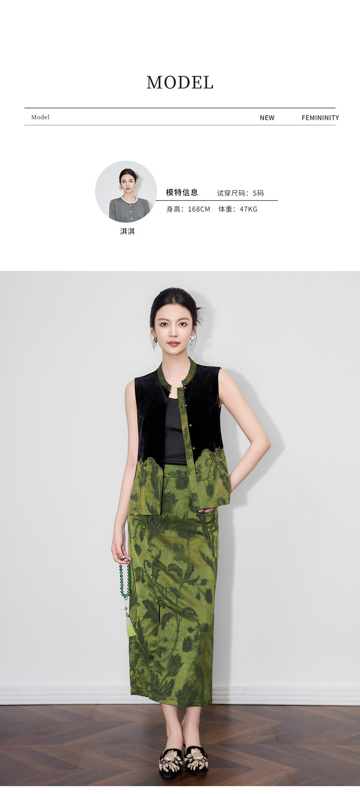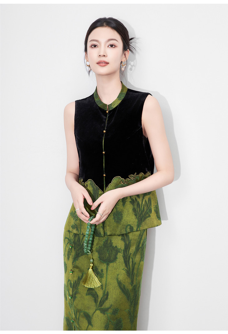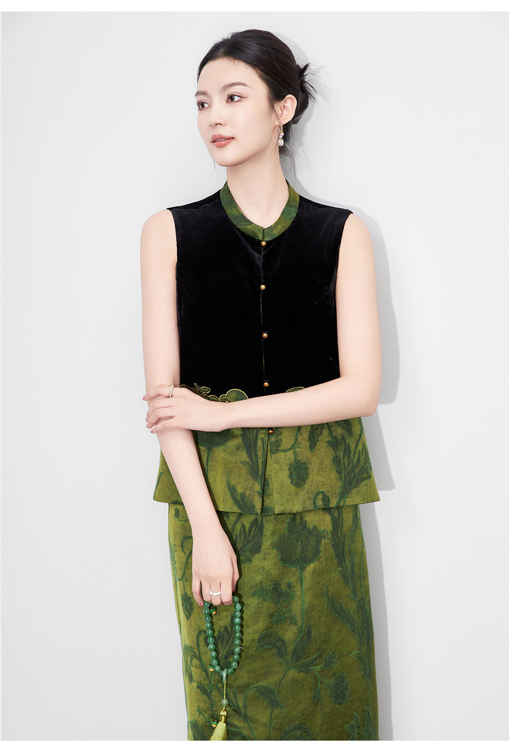 新中式香云纱提花背心,国风复古拼丝绒马甲(仅马甲)WLZD-2511504