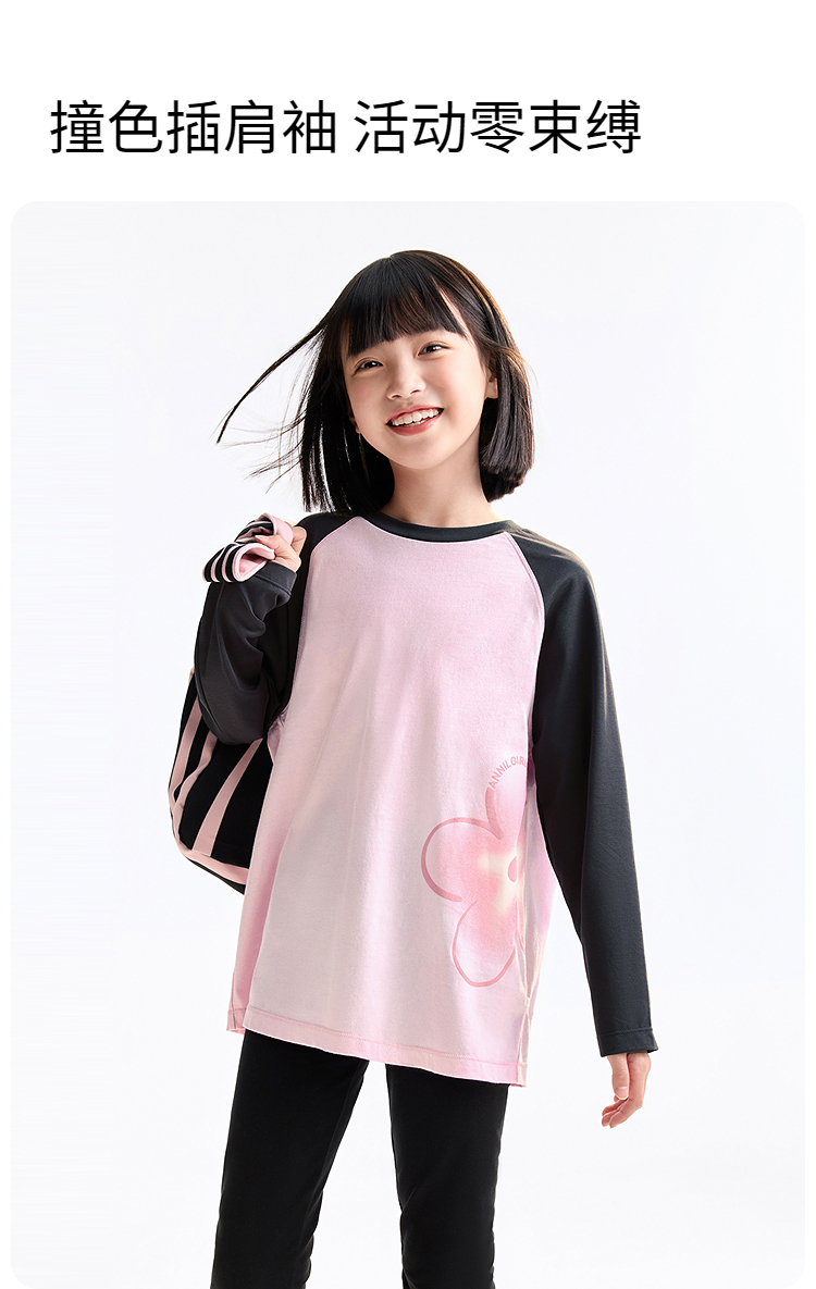女童圆领长袖针织衫秋季新款安奈儿童装EG531518