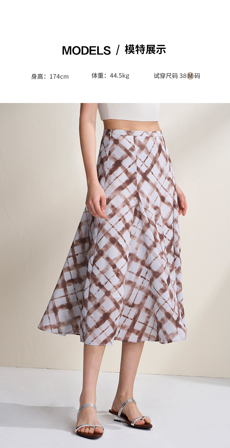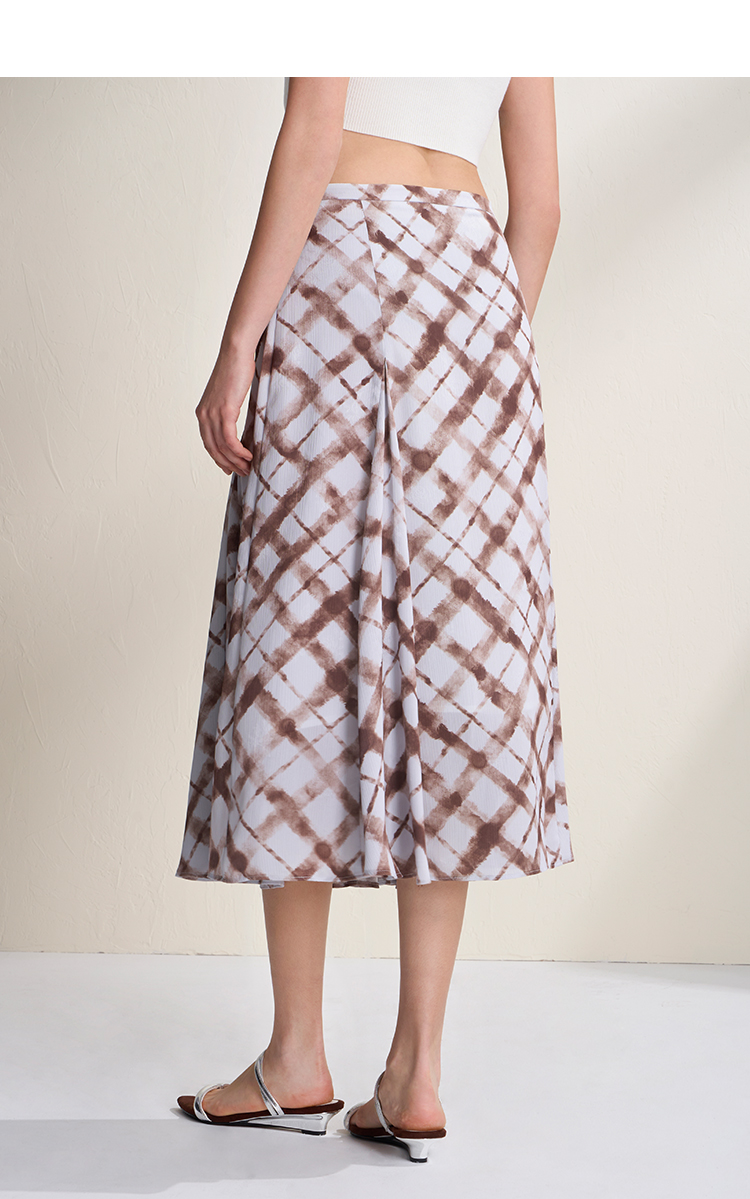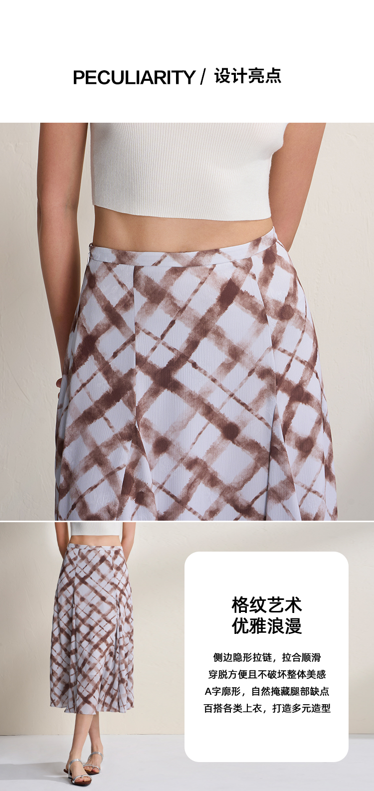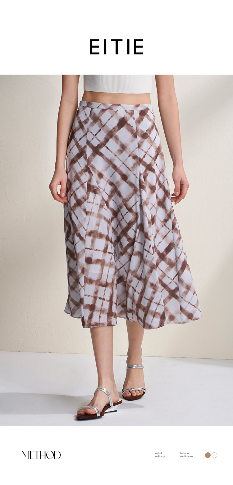 下架-EITIE爱特爱复古艺术感A字廓形格纹格子印花半身裙2026夏季新款B2606220
