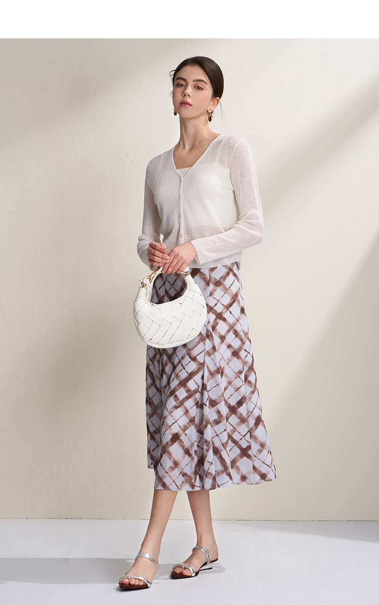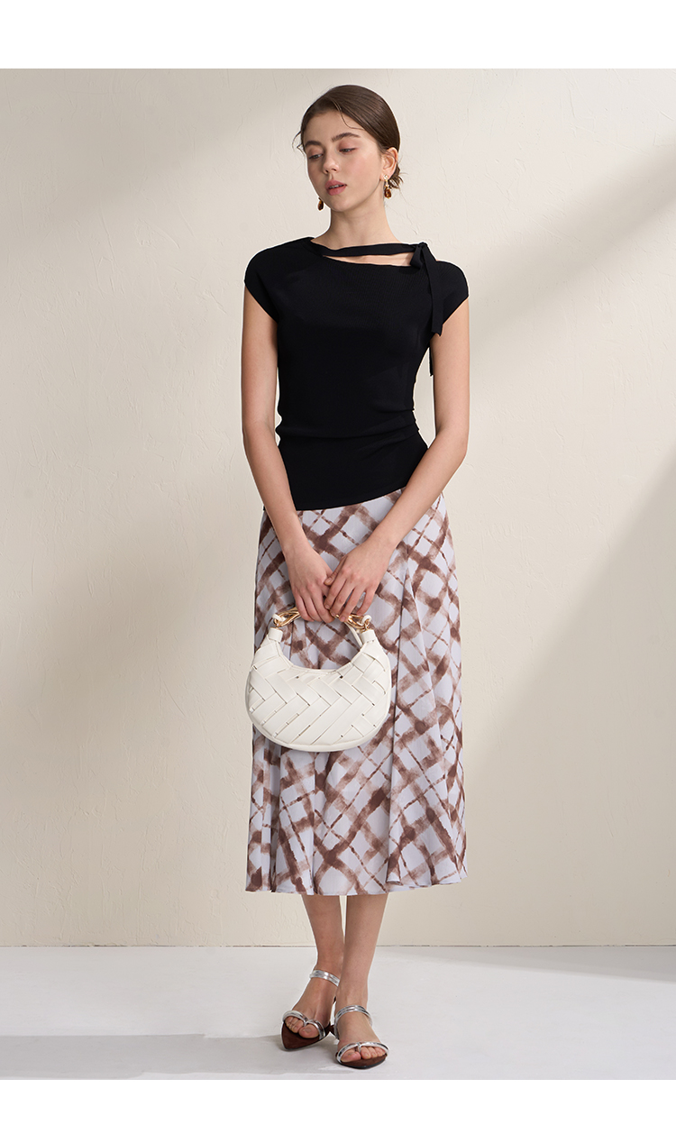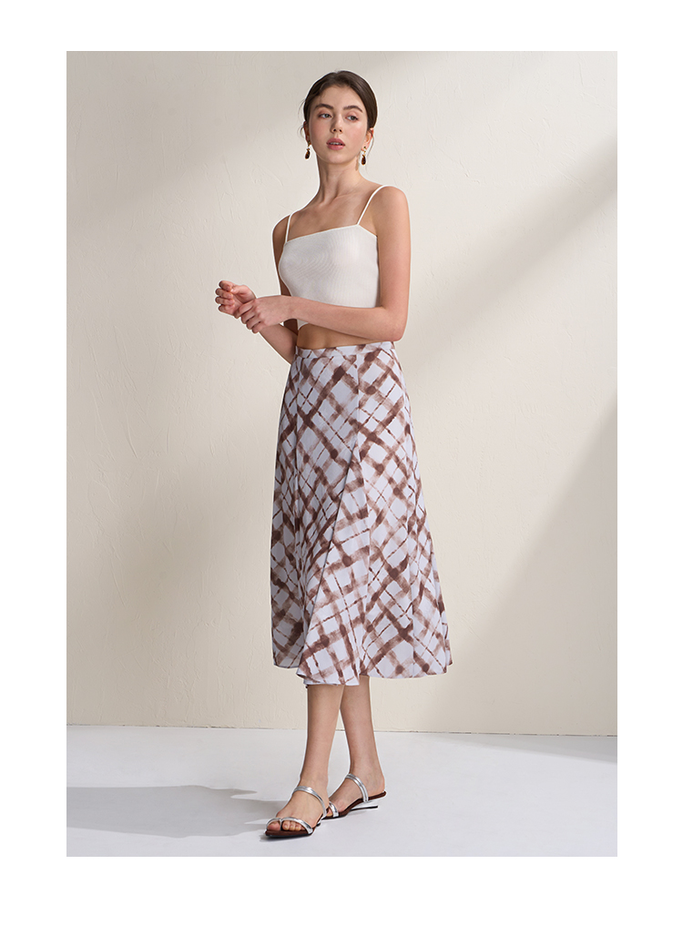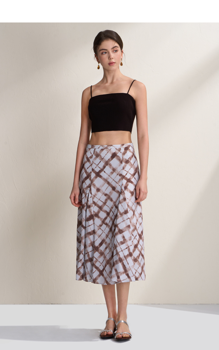 下架-EITIE爱特爱复古艺术感A字廓形格纹格子印花半身裙2026夏季新款B2606220