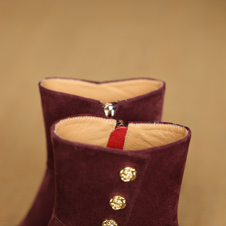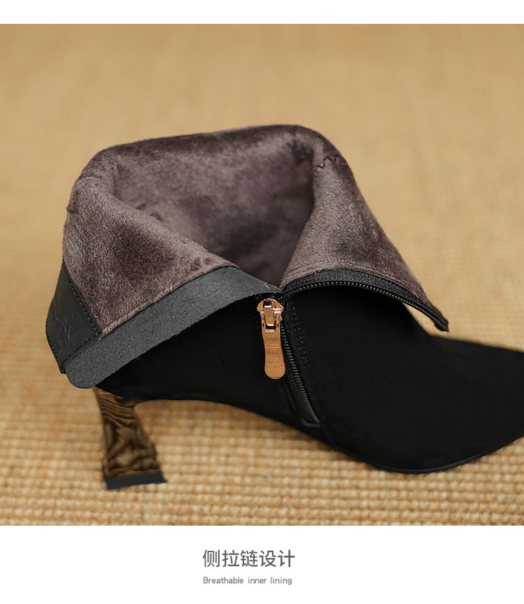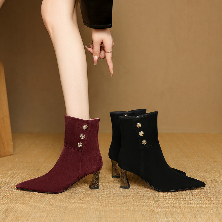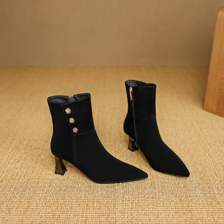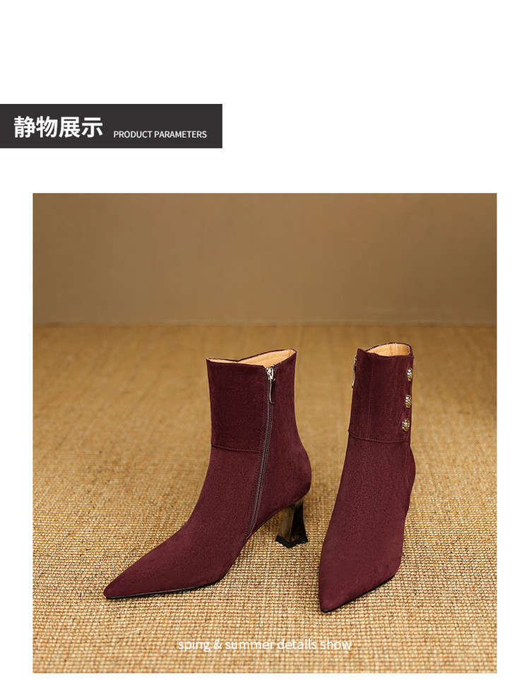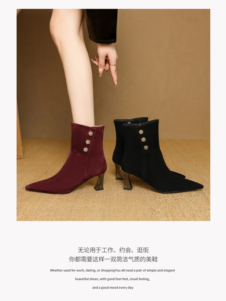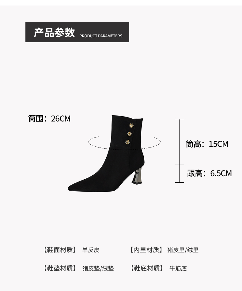 【预售5天】羊反皮粗高跟短靴女秋冬季小香风复古短筒瘦瘦靴女时装靴DB&M6563