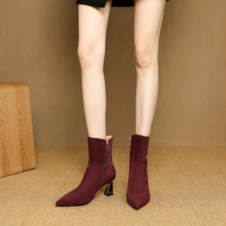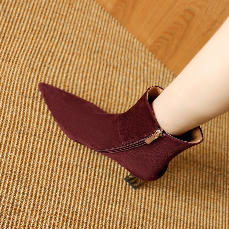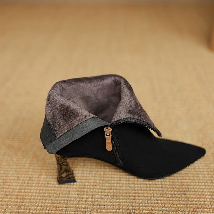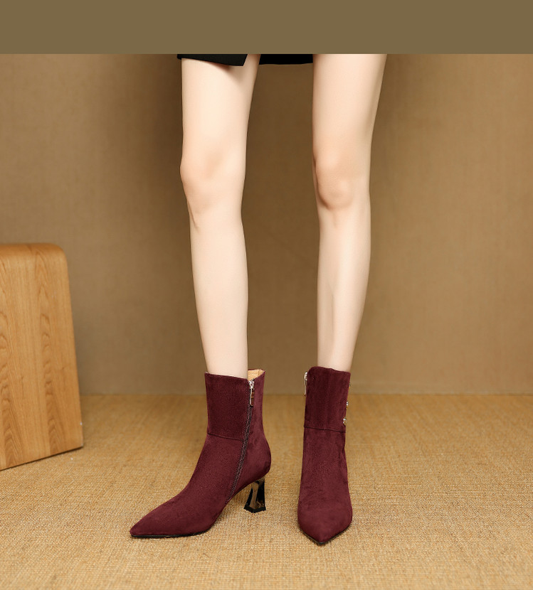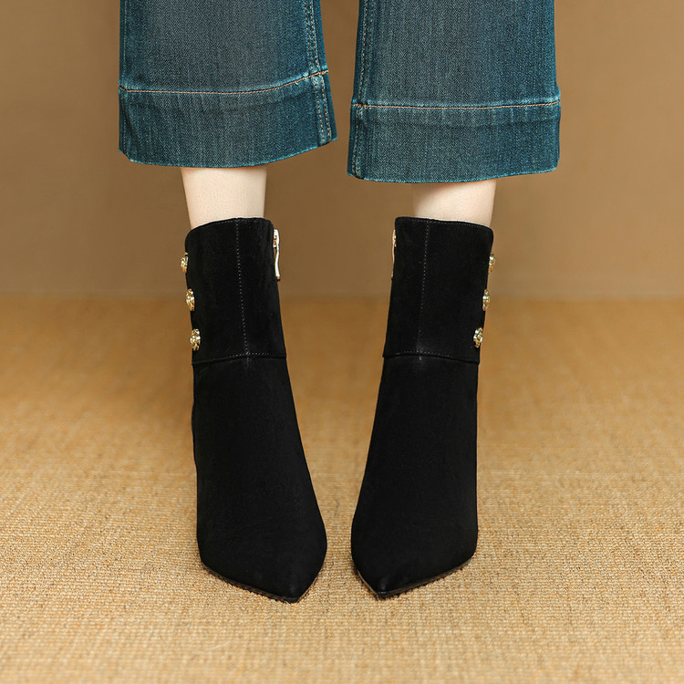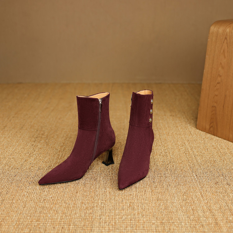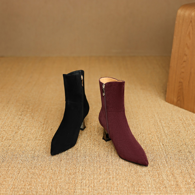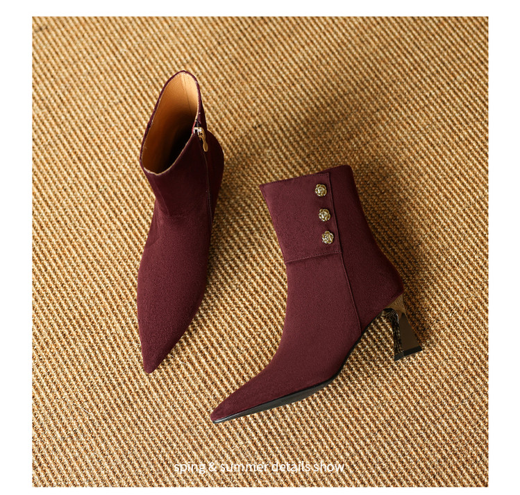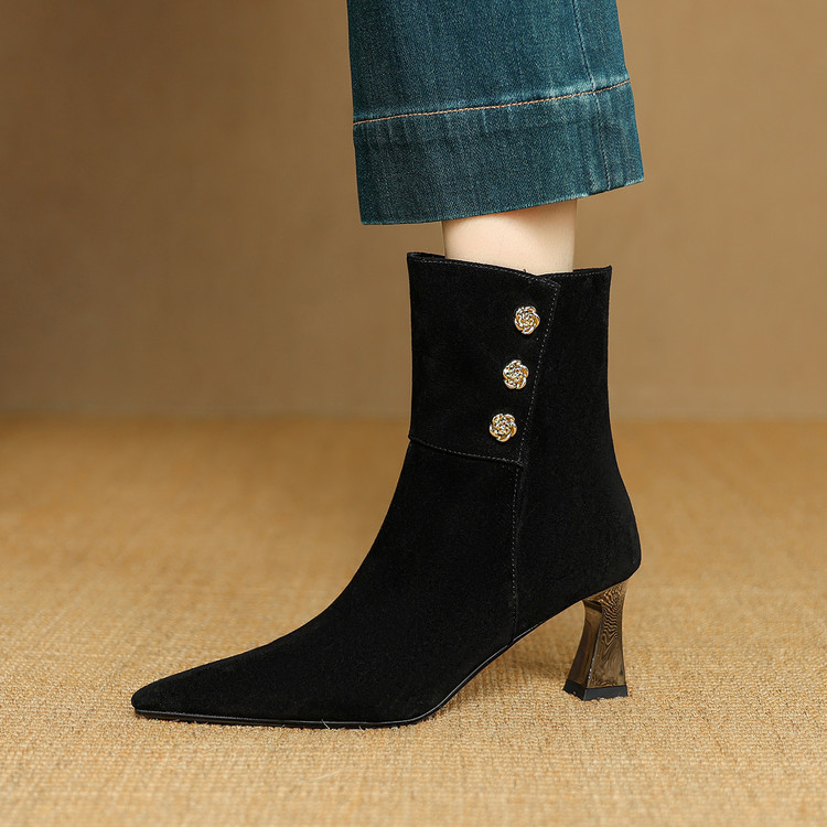 【预售5天】羊反皮粗高跟短靴女秋冬季小香风复古短筒瘦瘦靴女时装靴DB&M6563