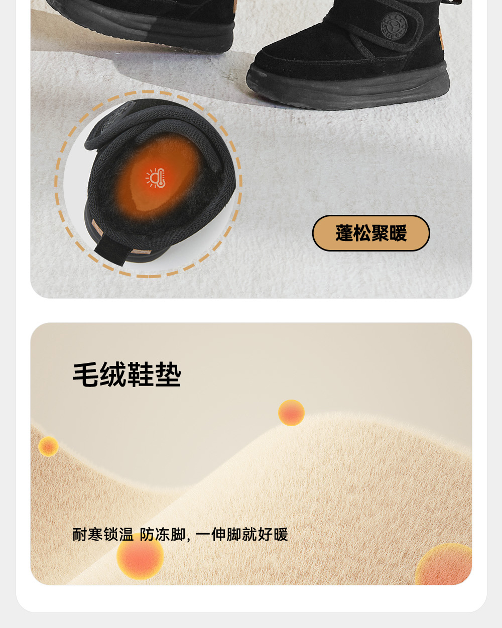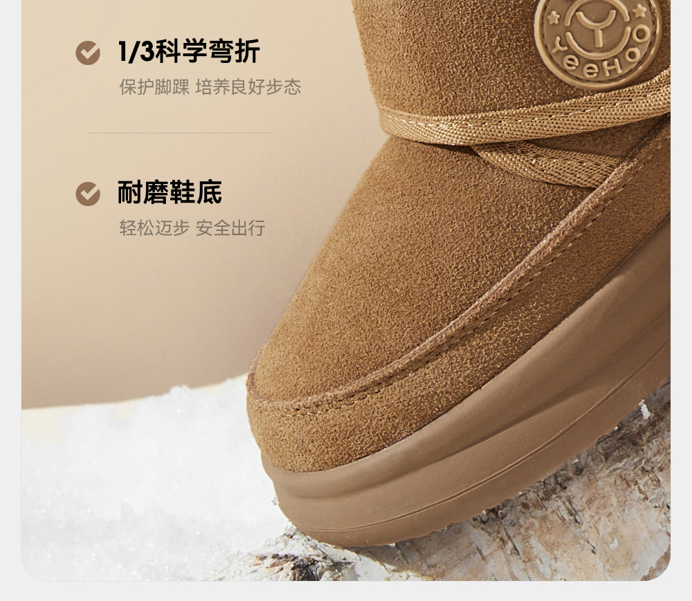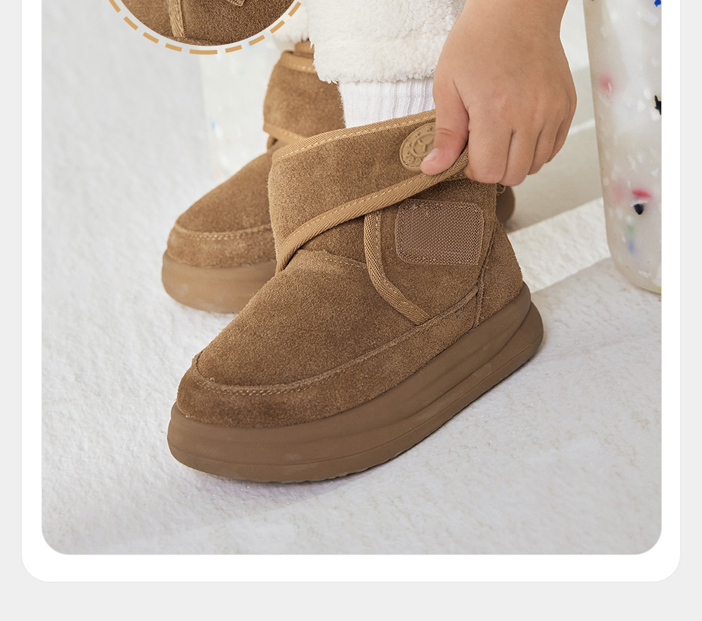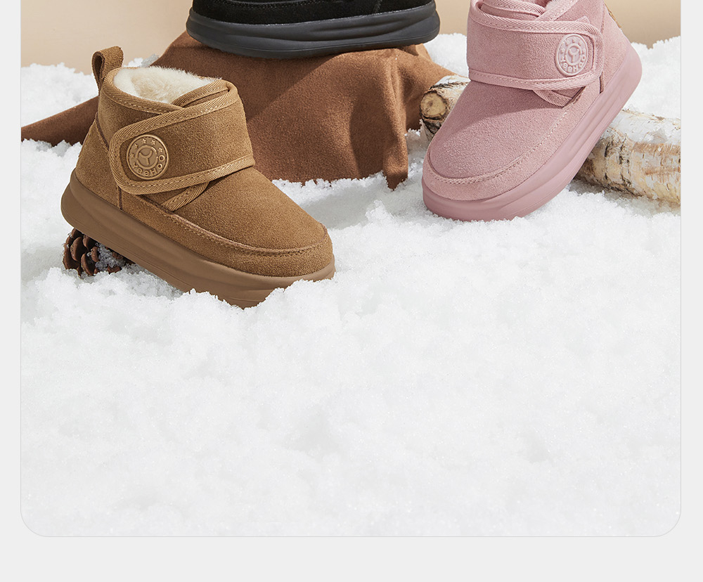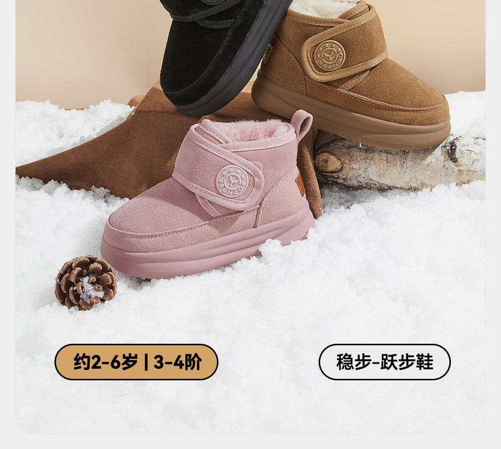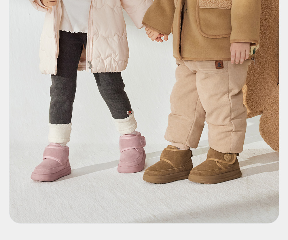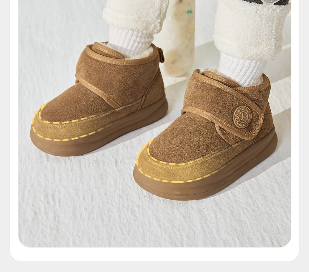 英氏儿童鞋雪地加绒靴子冬季加绒加厚软底棉靴男童女童保暖棉鞋