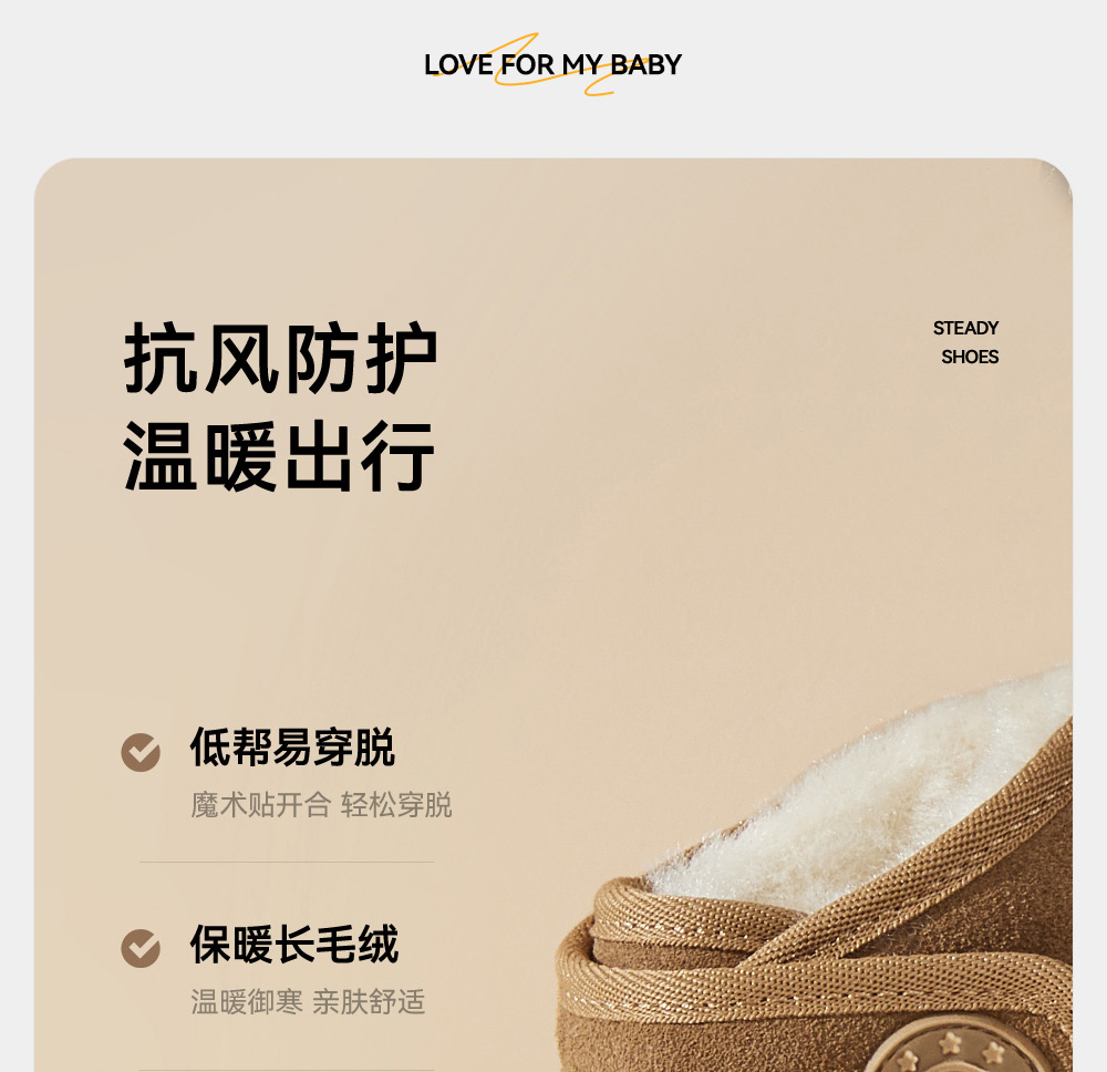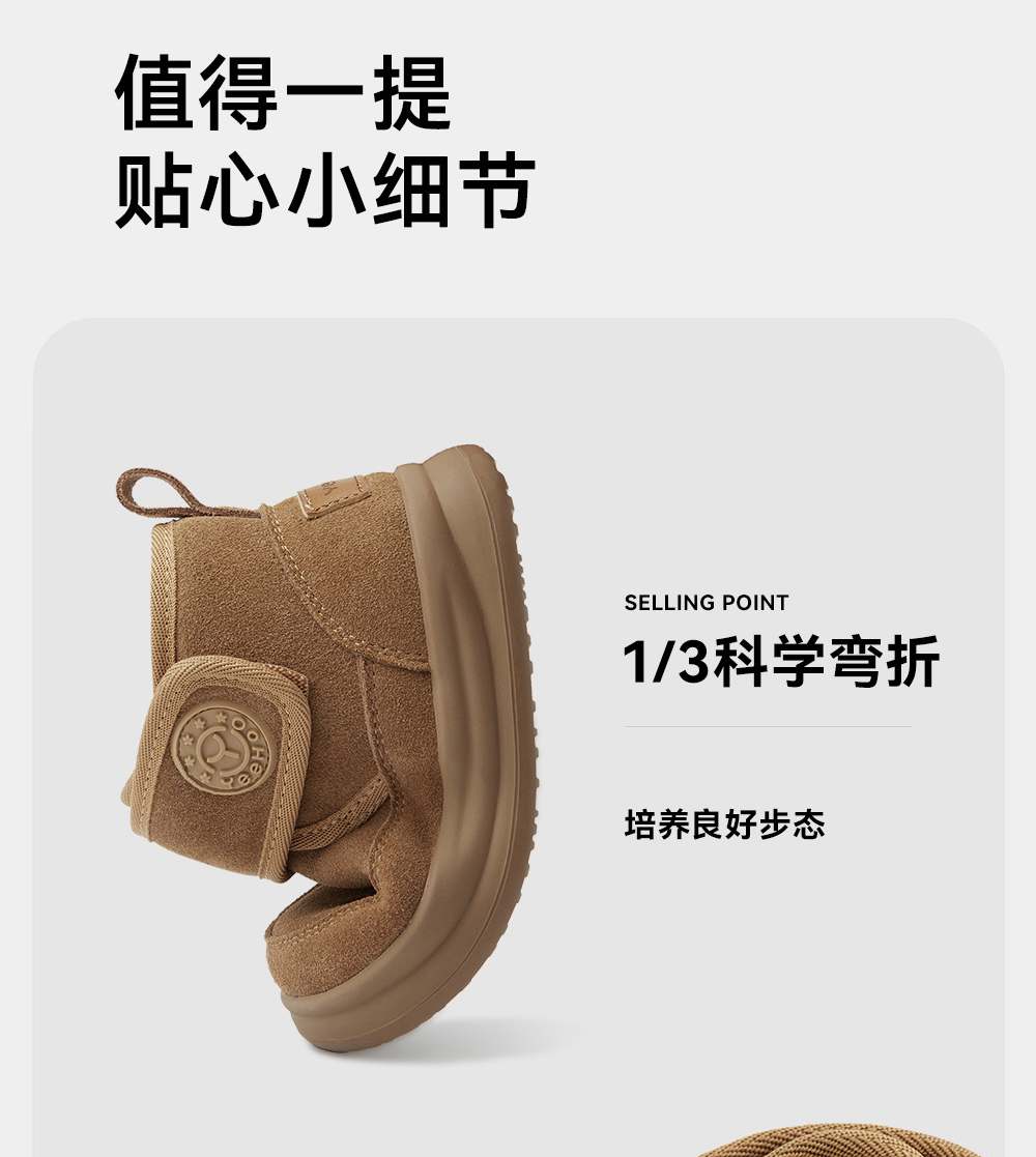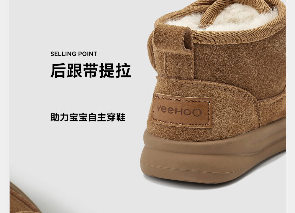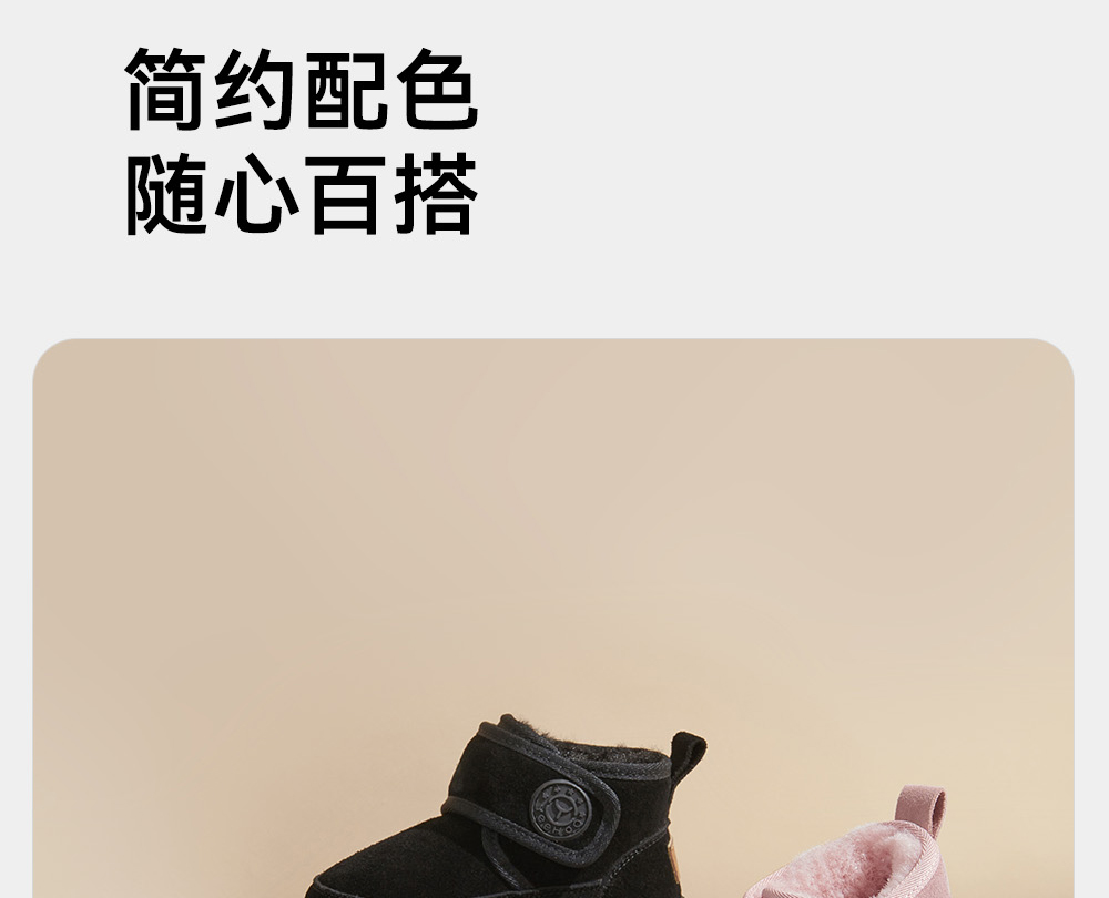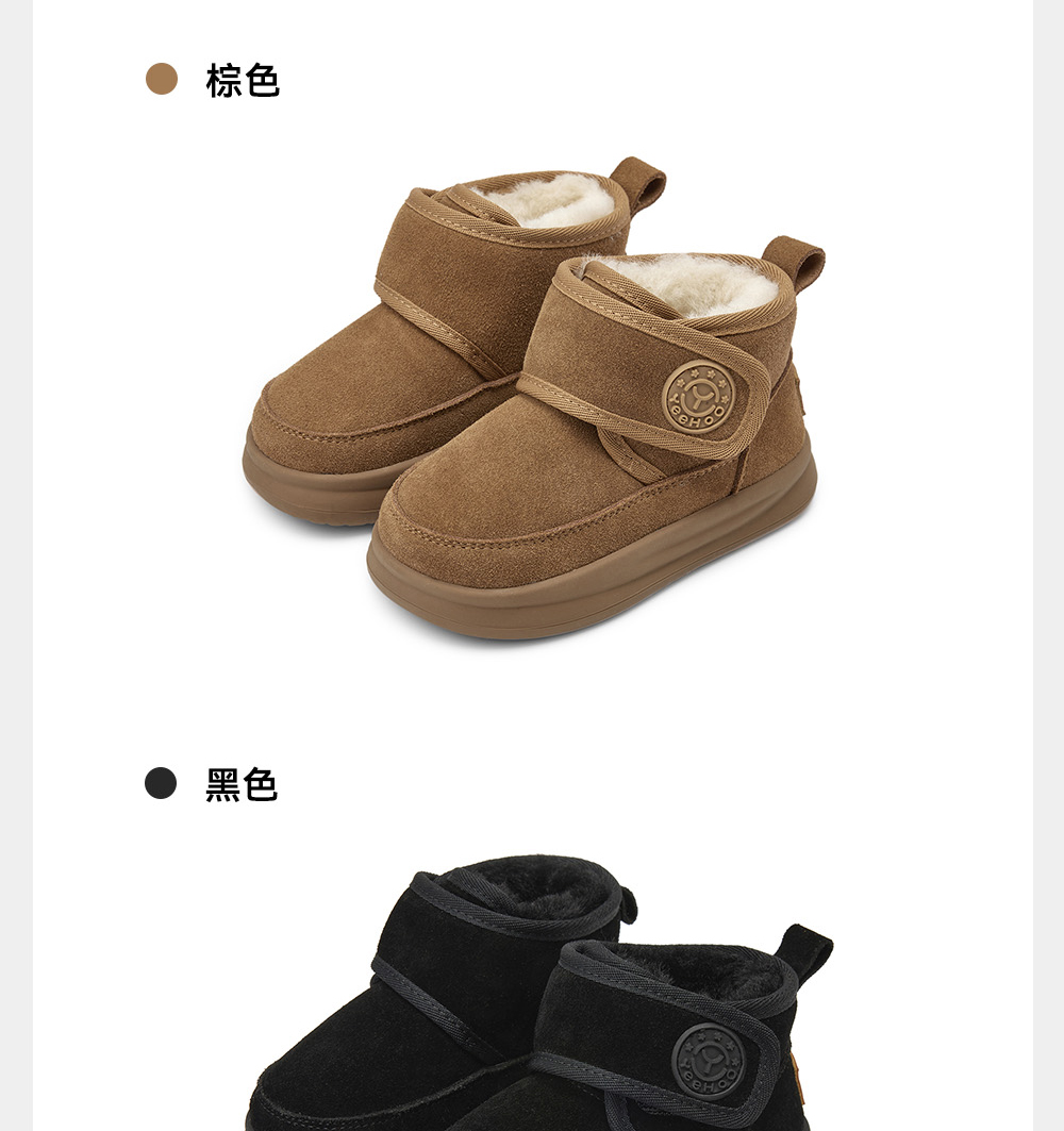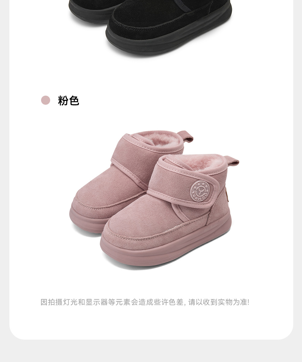 英氏儿童鞋雪地加绒靴子冬季加绒加厚软底棉靴男童女童保暖棉鞋
