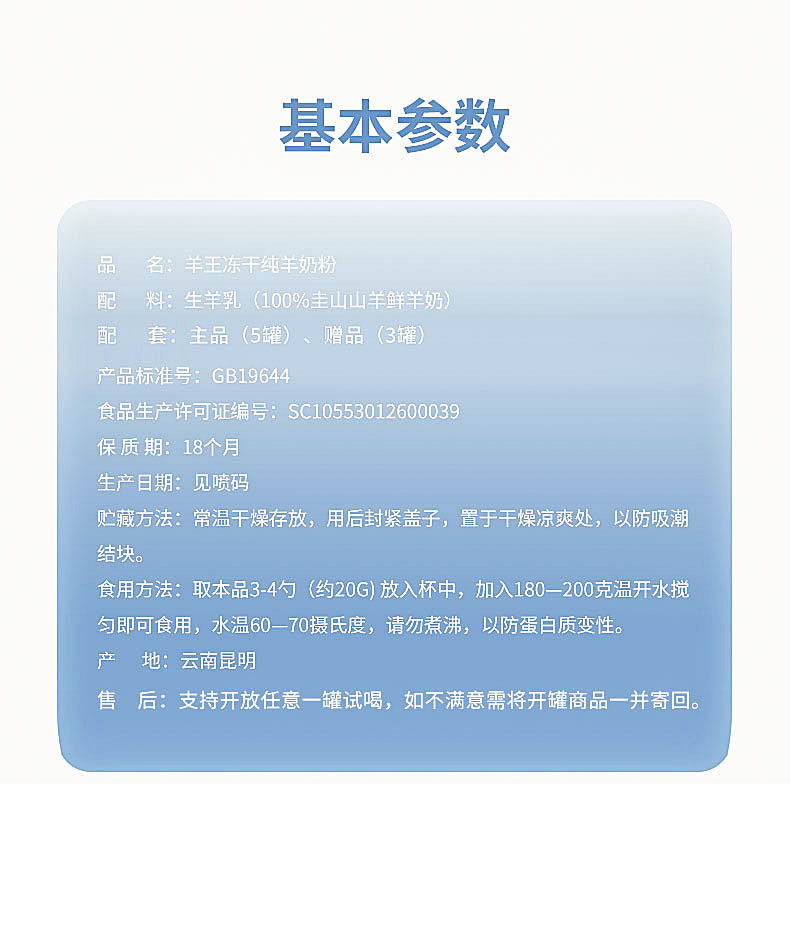 自营|羊王冻干纯羊奶粉 货号140192