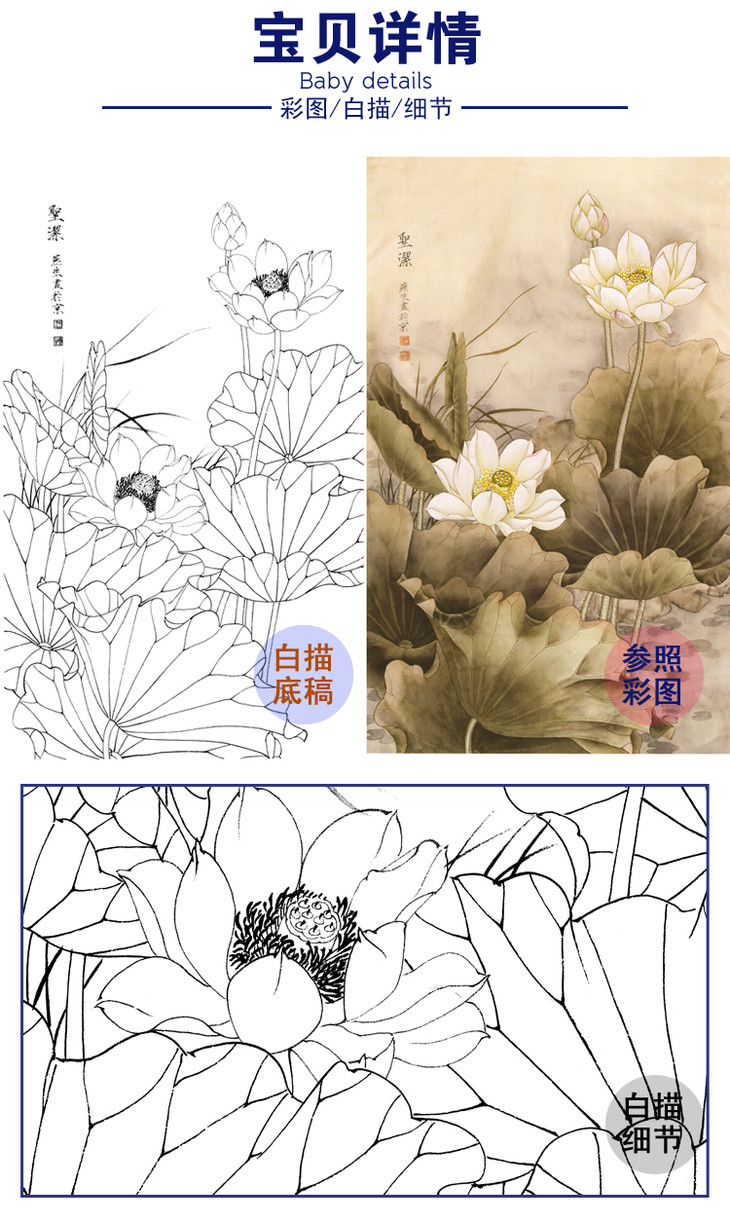 竖幅梁燕生工笔花鸟白描底稿-荷花-圣洁-A135