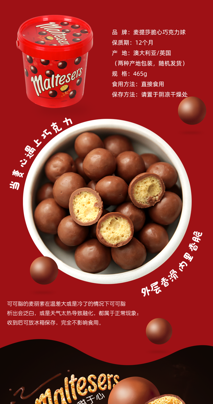 【甜蜜来袭】465g麦提莎牛奶巧克力(代可可脂) 澳洲进口休闲麦丽素
