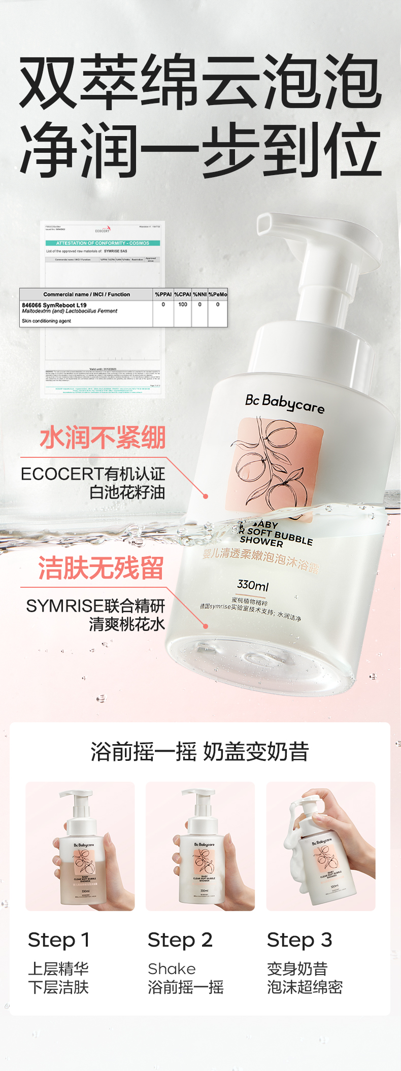 【babycare好物集】沐浴露洗发婴幼儿宝宝儿童桃叶精华泡泡浴沐浴乳