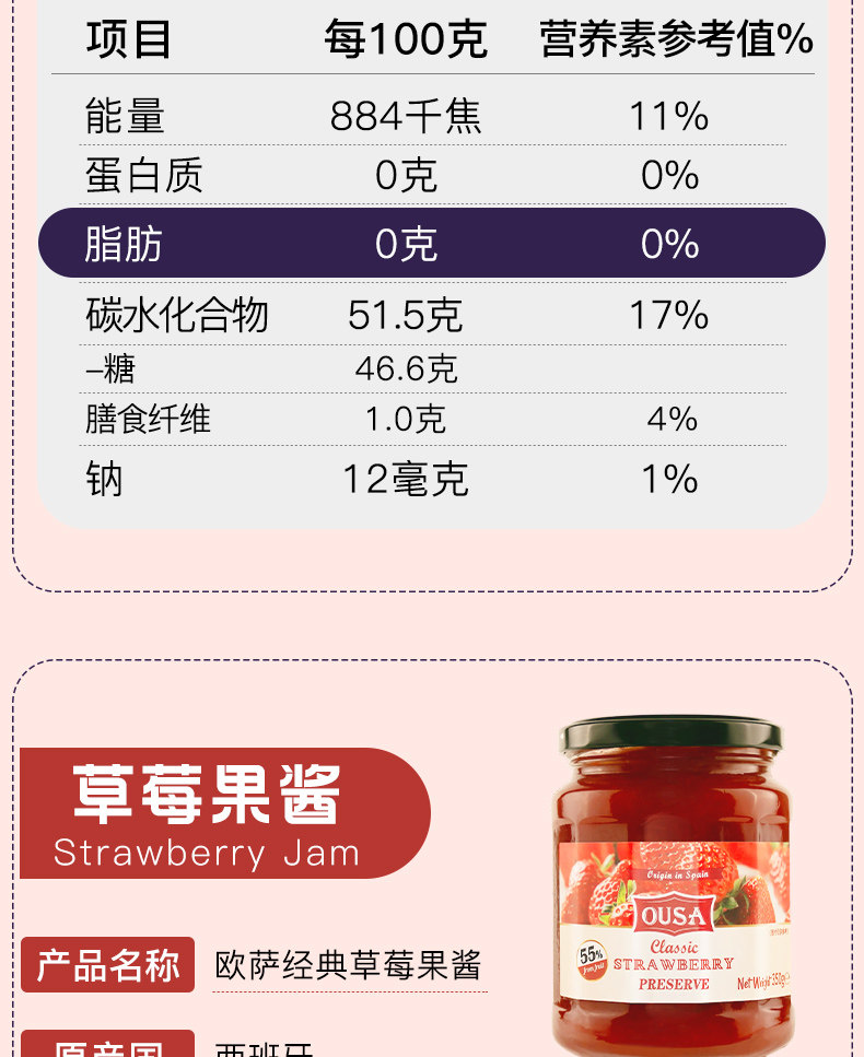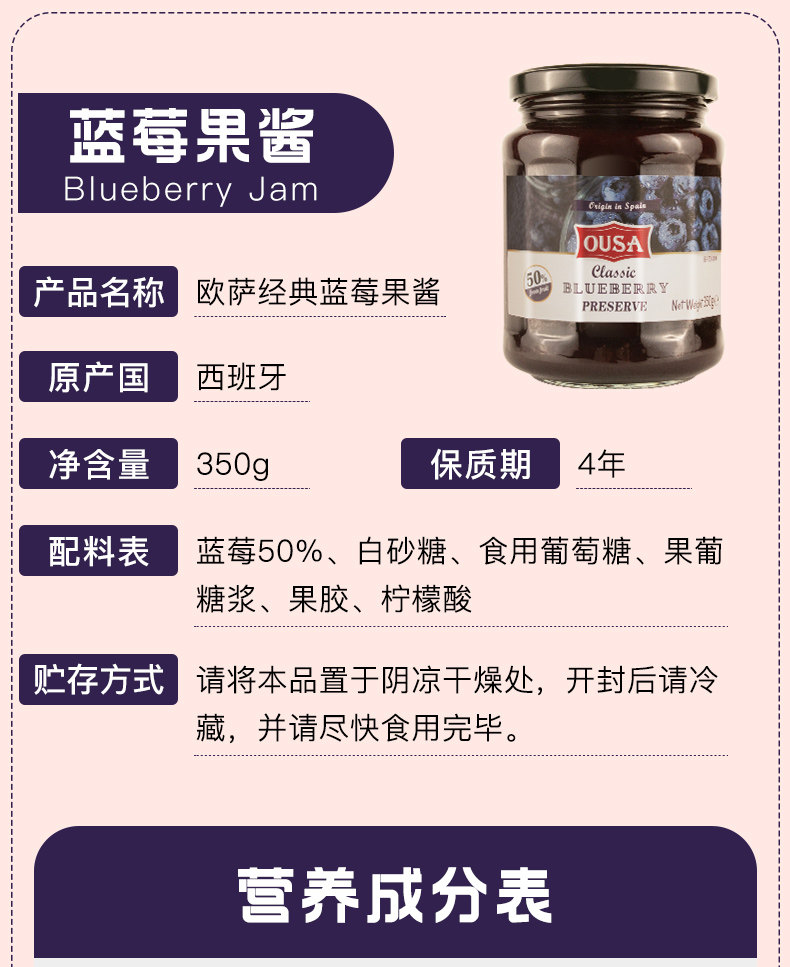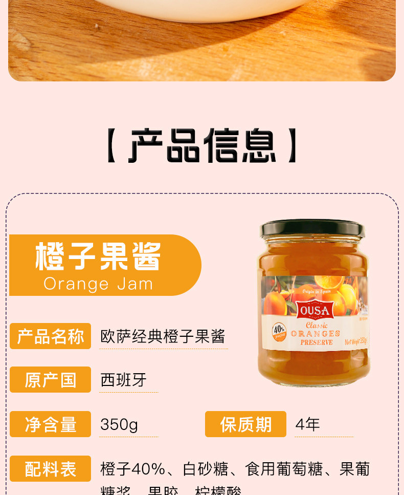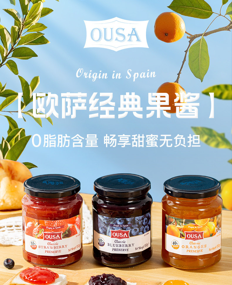 西班牙进口欧萨蓝莓草莓橙子果酱早餐蘸酱面包吐司调味酱烘焙专用