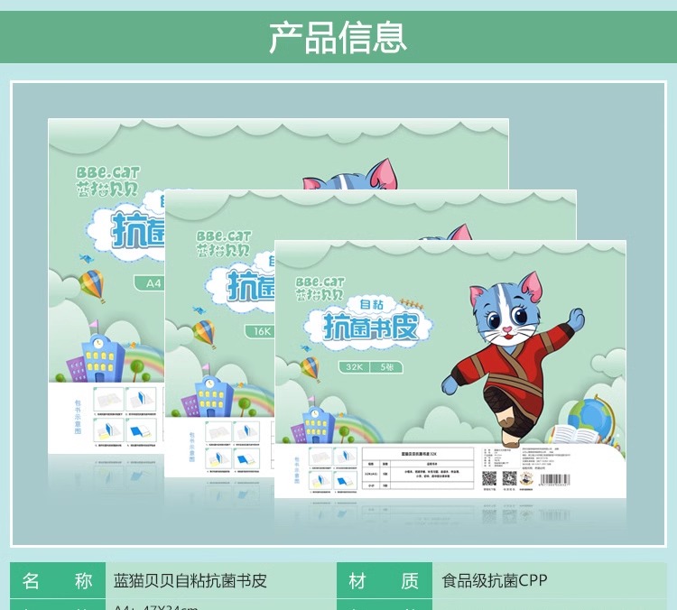 蓝猫贝贝抗菌自粘书皮书套书皮纸磨砂透明包书皮包书膜16K全套小学生a4一二年级上册书壳塑料加厚防水保护套