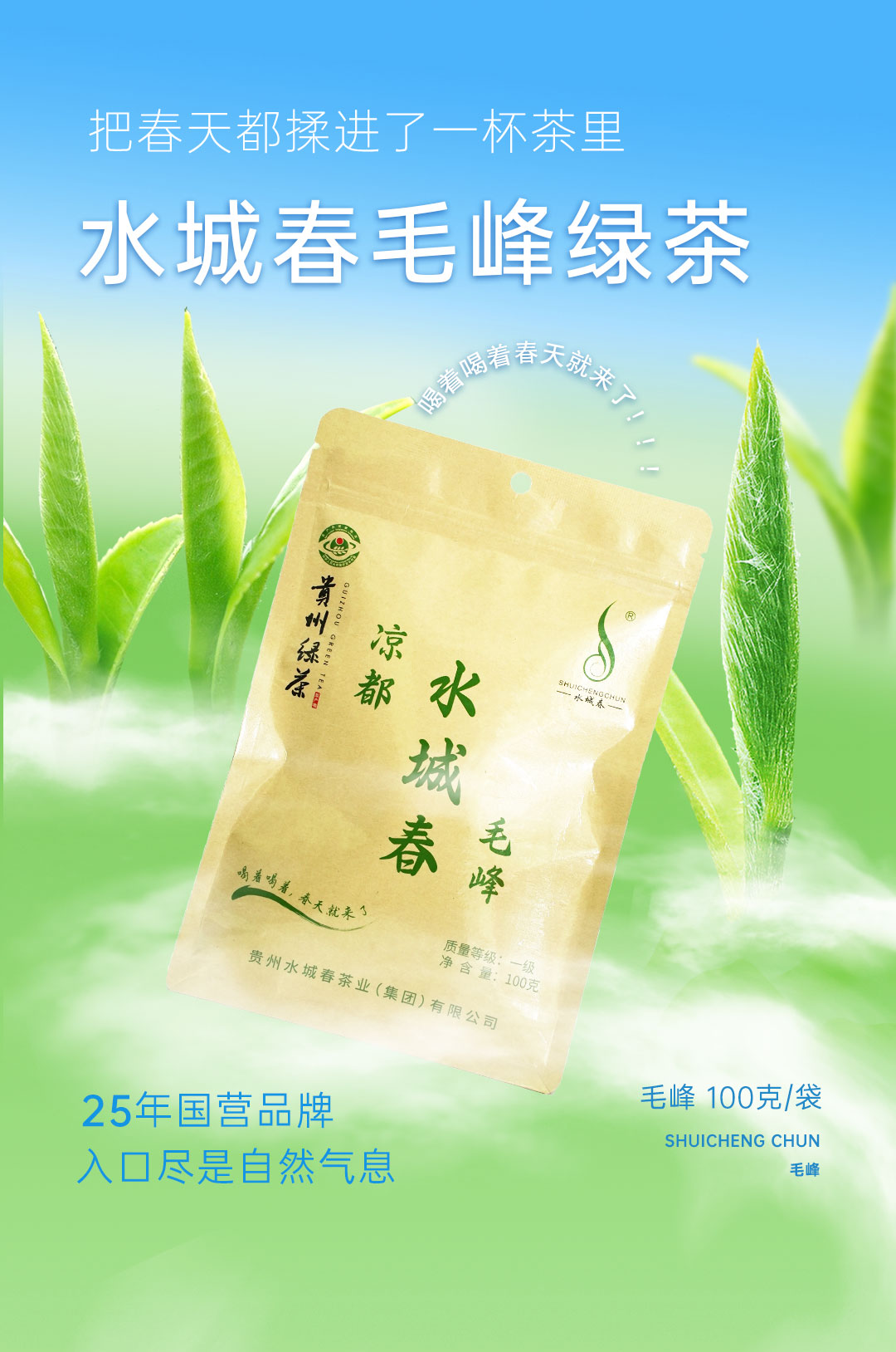 【六盘水水城春春茶】水城春毛峰(绿茶)100g/袋入口自然气息凉都高山茶回味无穷